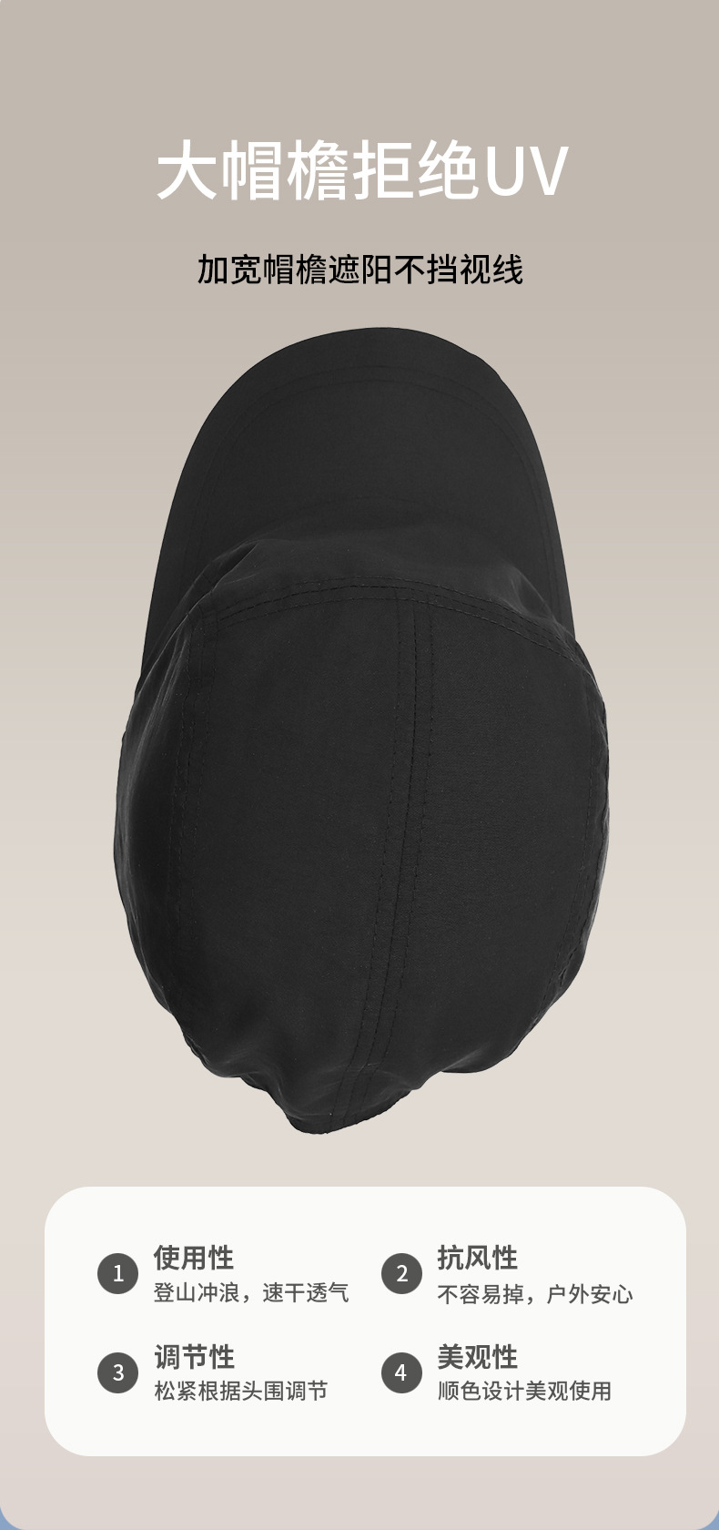 新款防晒鸭舌帽男夏UPF50+户外徒步太阳帽钓鱼遮阳帽冲浪鸭舌帽