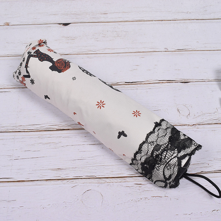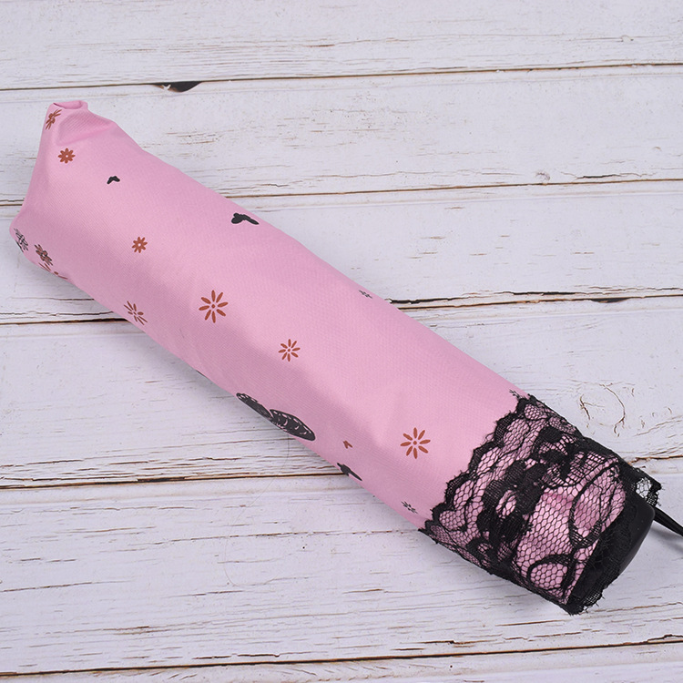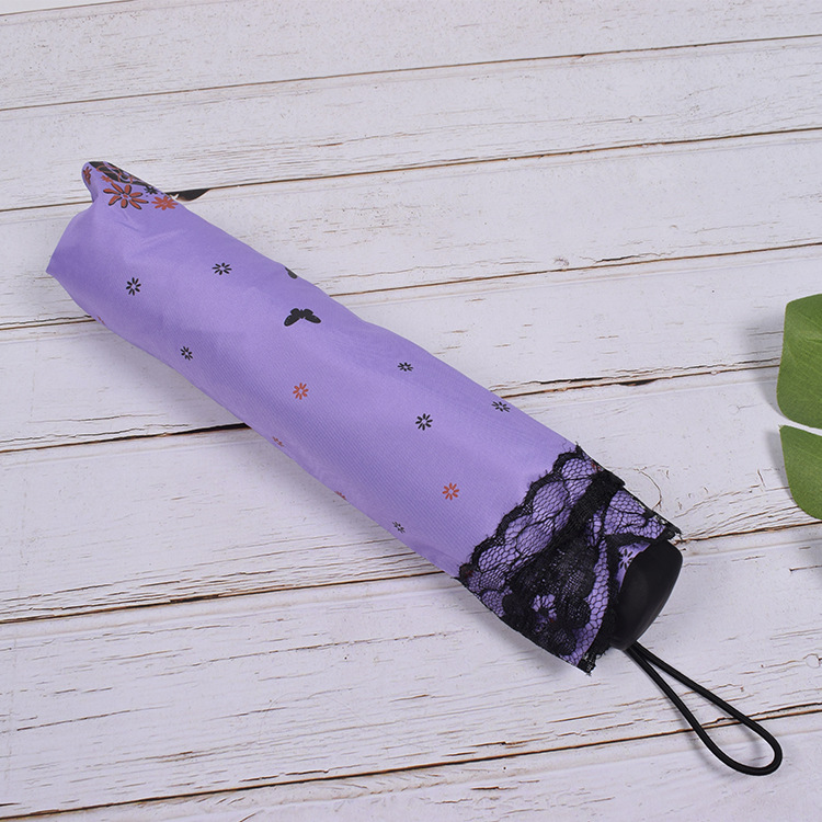 蝴蝶蕾丝印花遮阳伞晴雨两用伞三折抗风防晒黑胶伞厂家直销