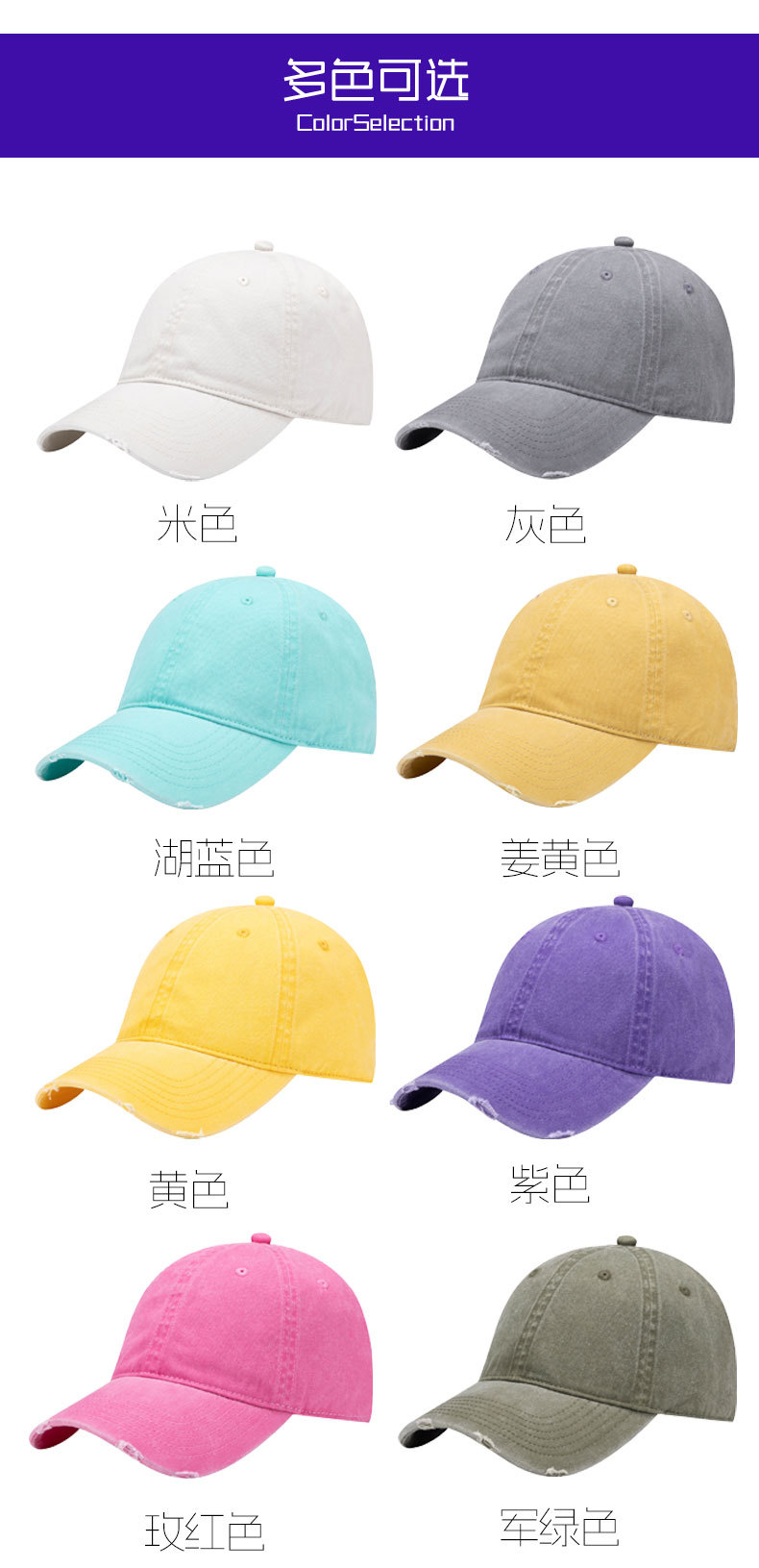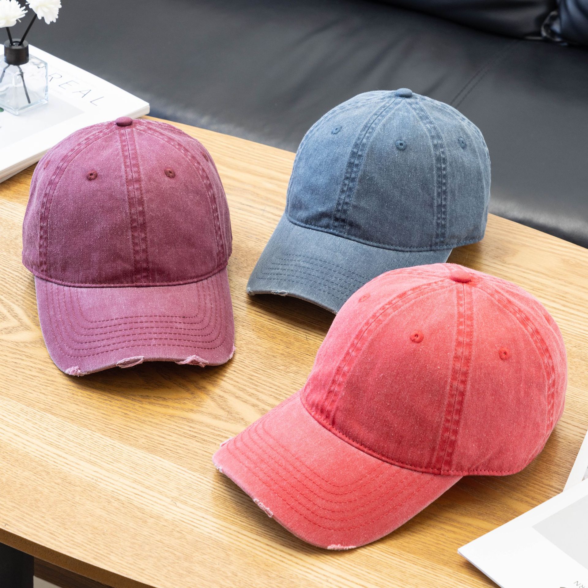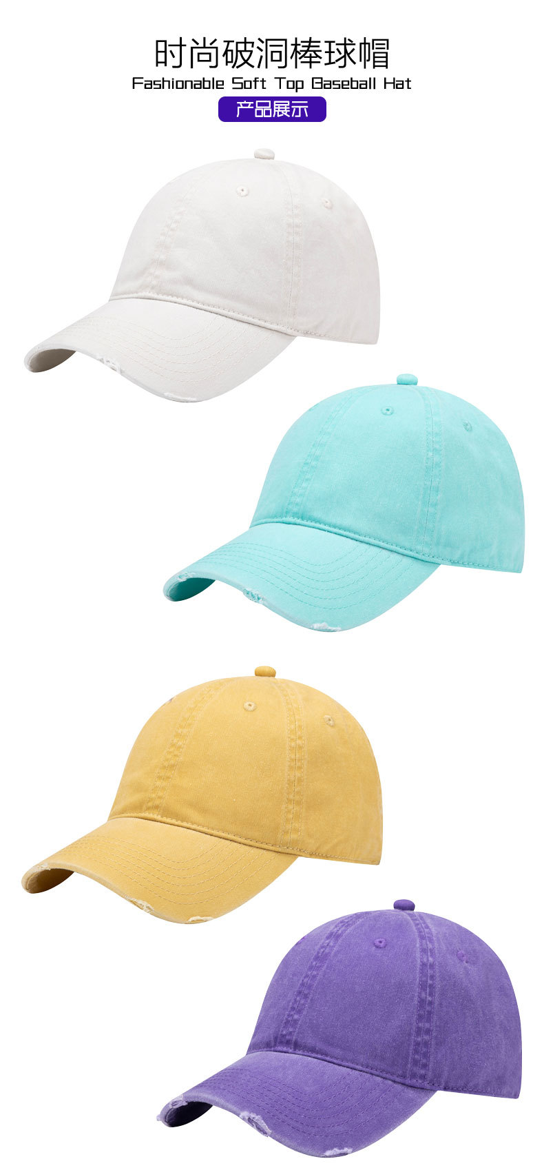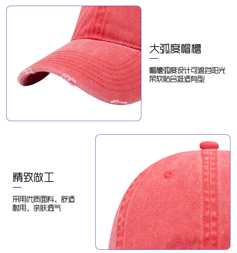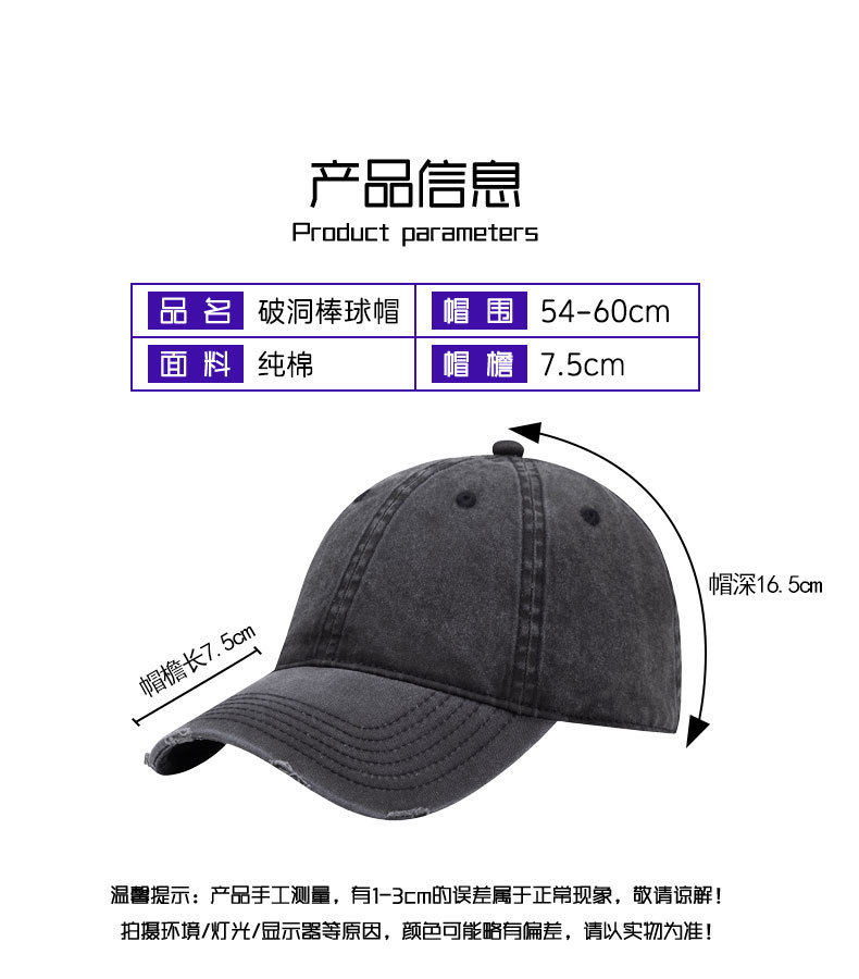 美式复古水洗做旧破洞棒球帽男深顶加宽小众鸭舌帽户外防晒帽子女