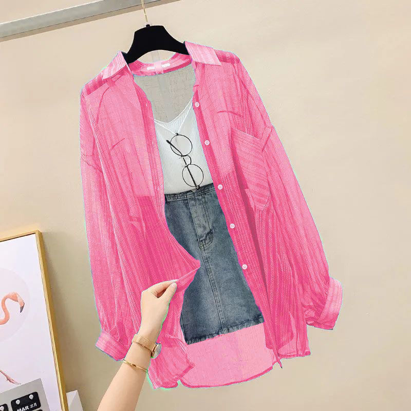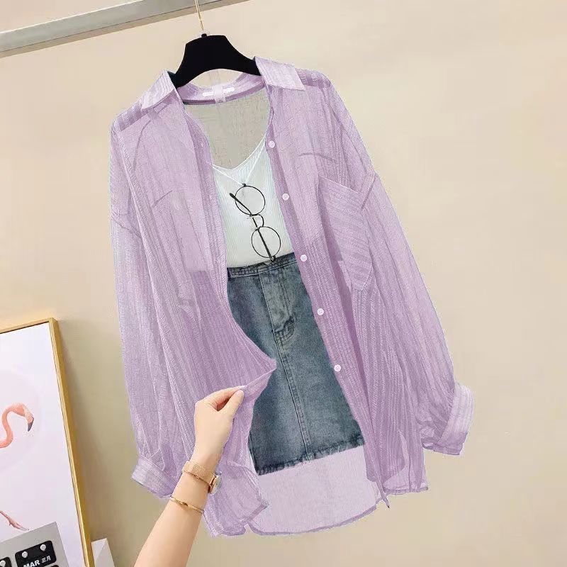 夏季防晒服薄款外套2025新款韩版宽松百搭防晒衣女长袖雪纺开衫潮
