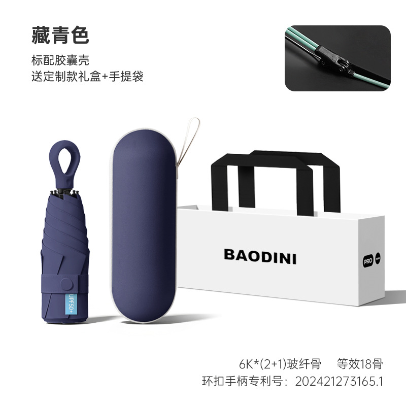便携室外登山加固环扣伞五折晴雨加大抗风黑胶防晒防紫外线口袋伞