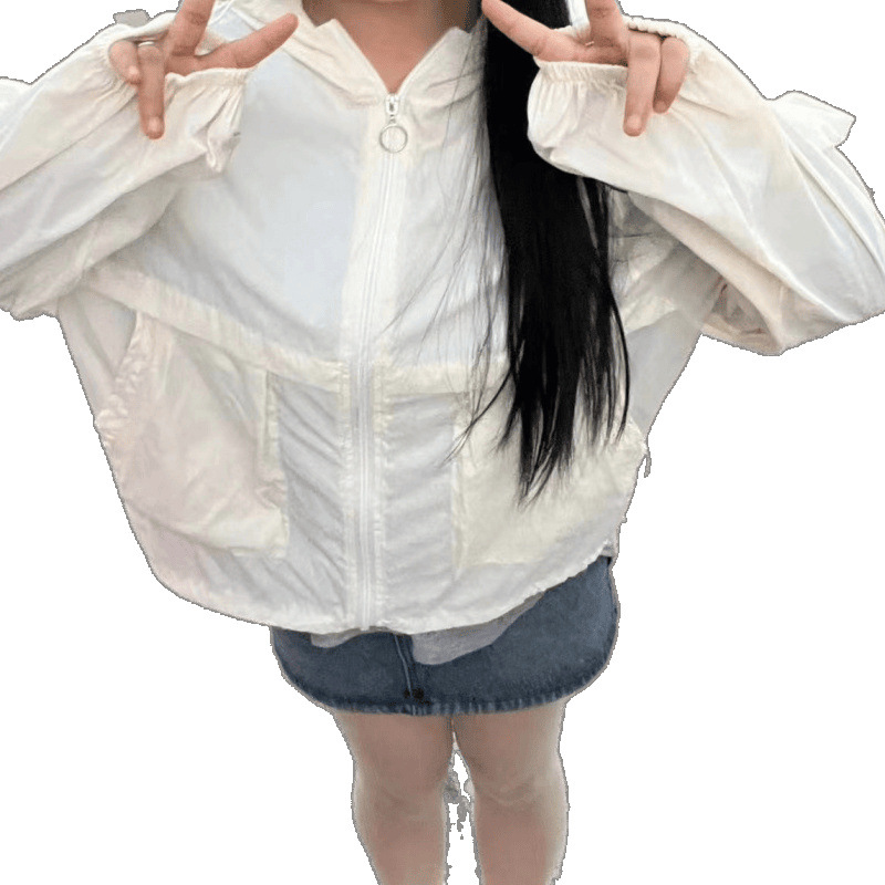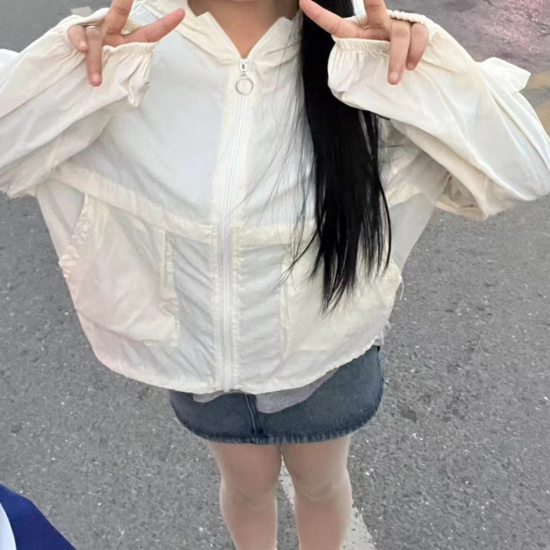 宽松舒适防晒衣女短款轻薄透气夏天外套防晒衫连帽遮阳防晒服
