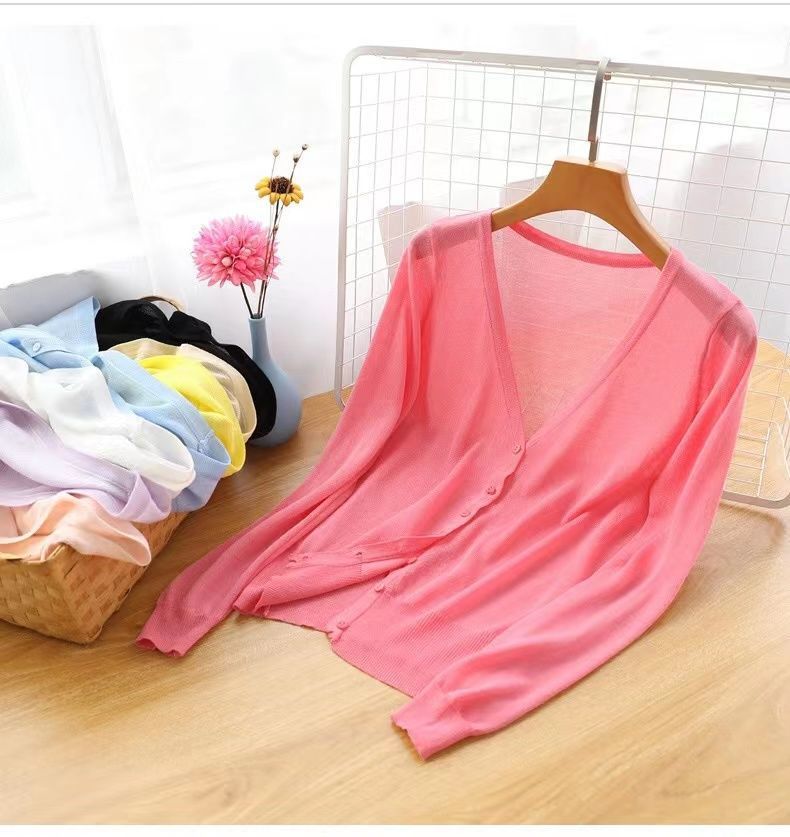冰丝防晒衣大码针织开衫女夏季韩版宽松薄款披肩外搭长袖外套上衣