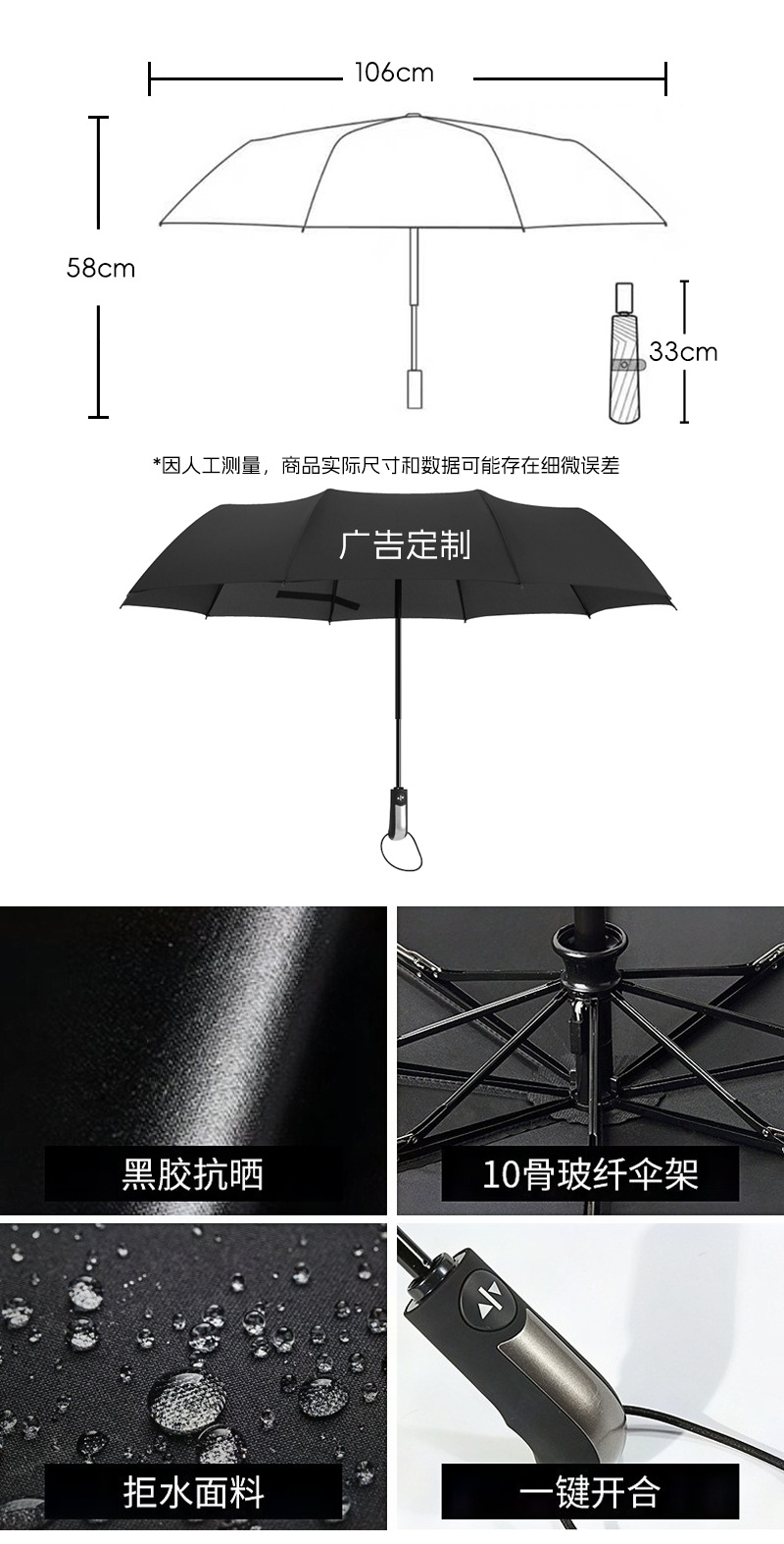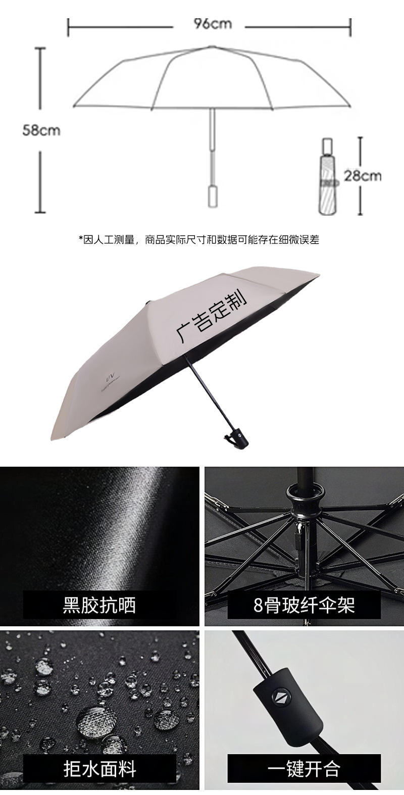 定制厂家批发礼品广告可印logo晴雨两用太阳伞自动折叠防紫外线