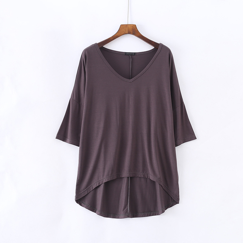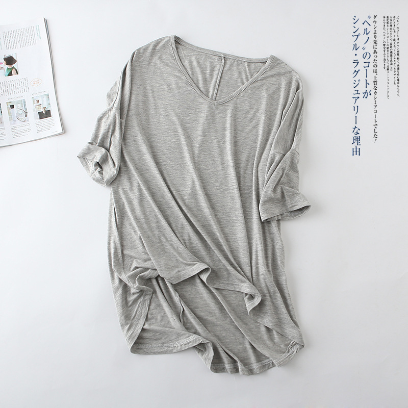 春夏新款莫代尔蝙蝠袖中袖t恤女休闲韩版V领纯色大码半袖打底衫