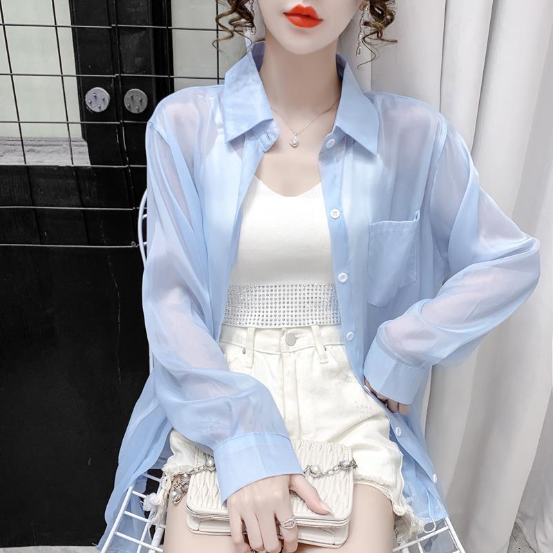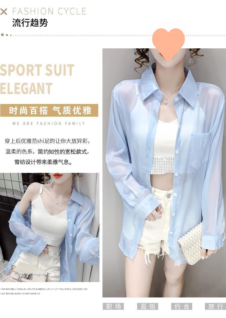 冰丝雪纺透气防晒衣女2025夏季新款户外百搭薄款宽松衬衫外套上衣