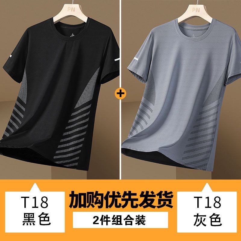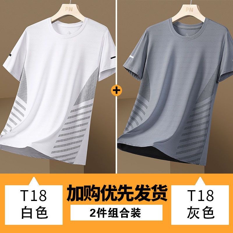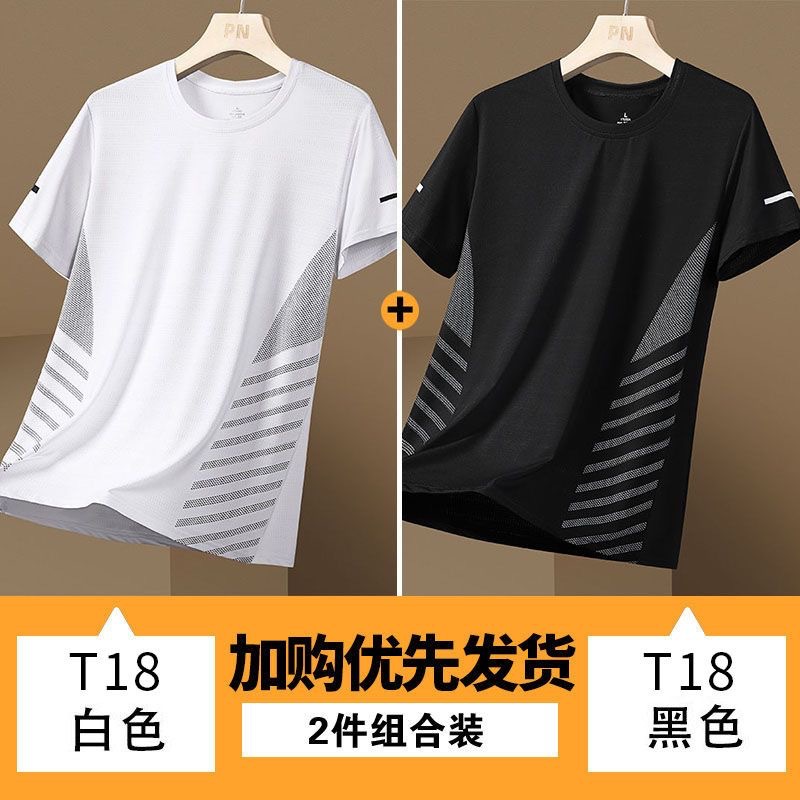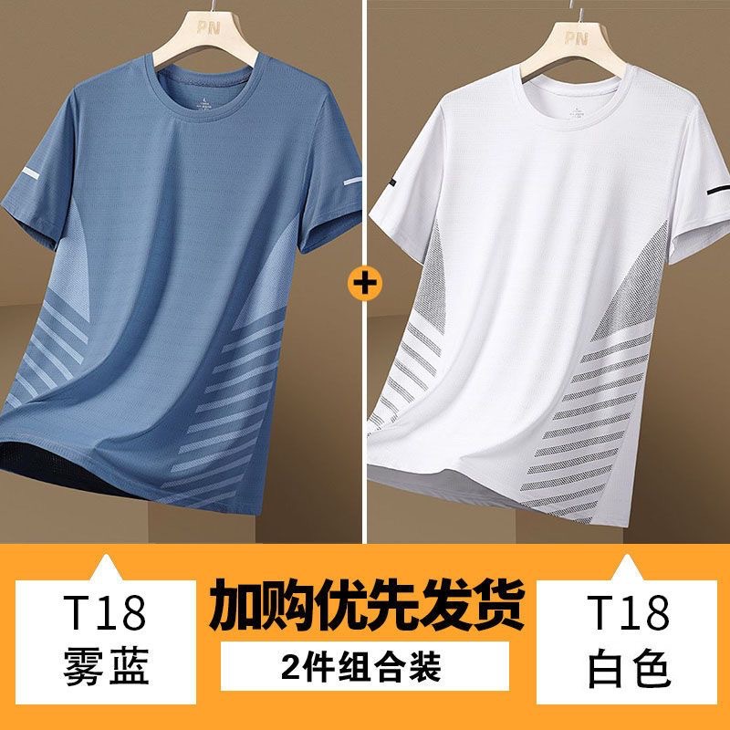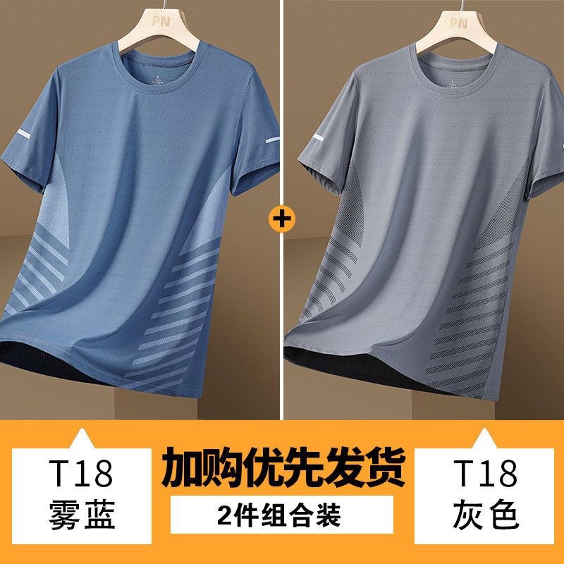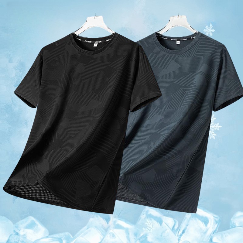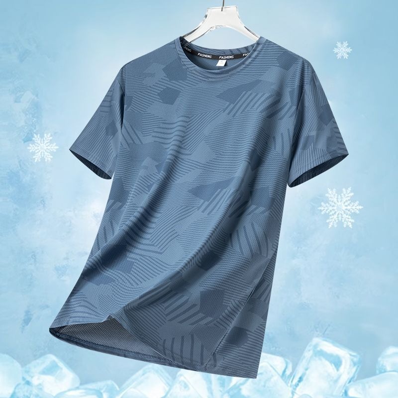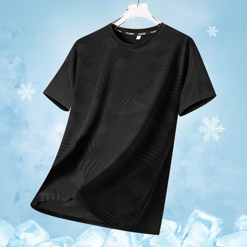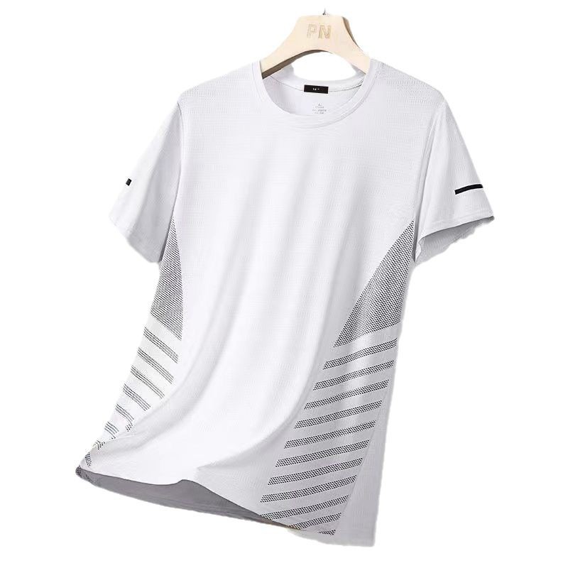 源头厂家冰丝短袖t恤男士夏季薄款速干网眼运动半袖上衣休闲弹力T