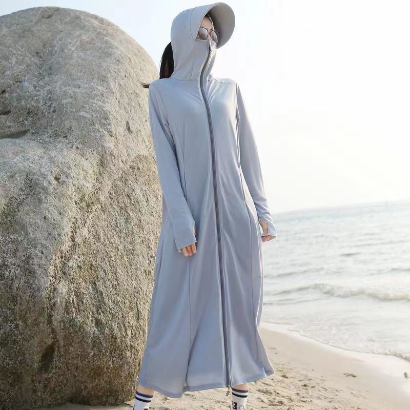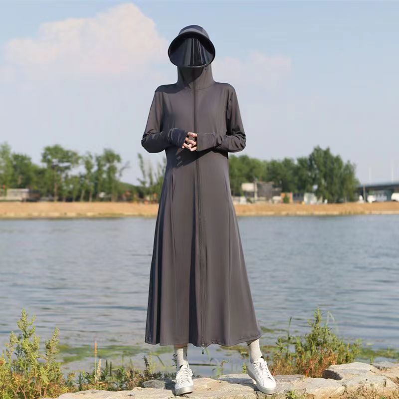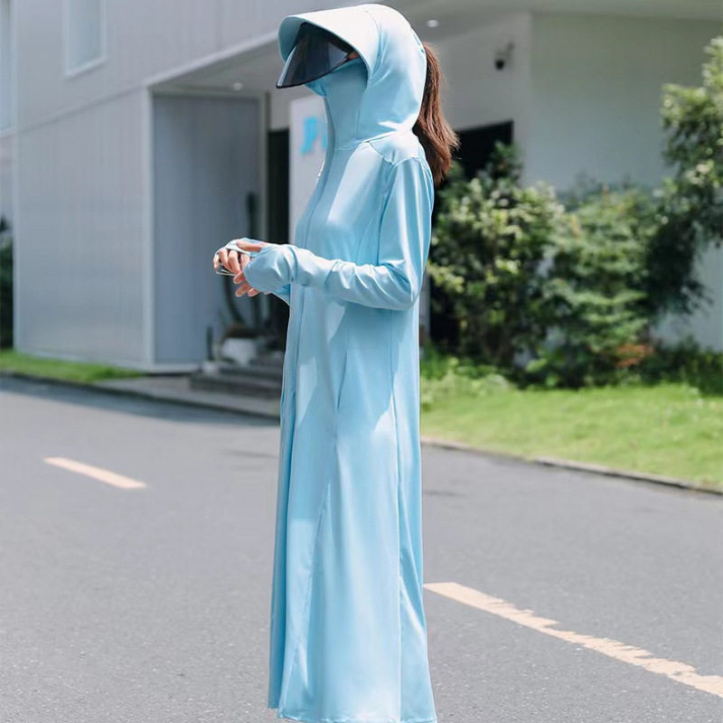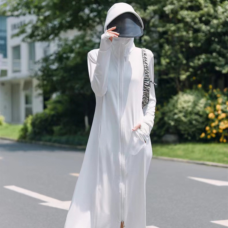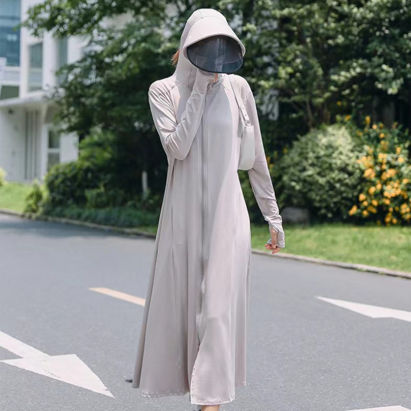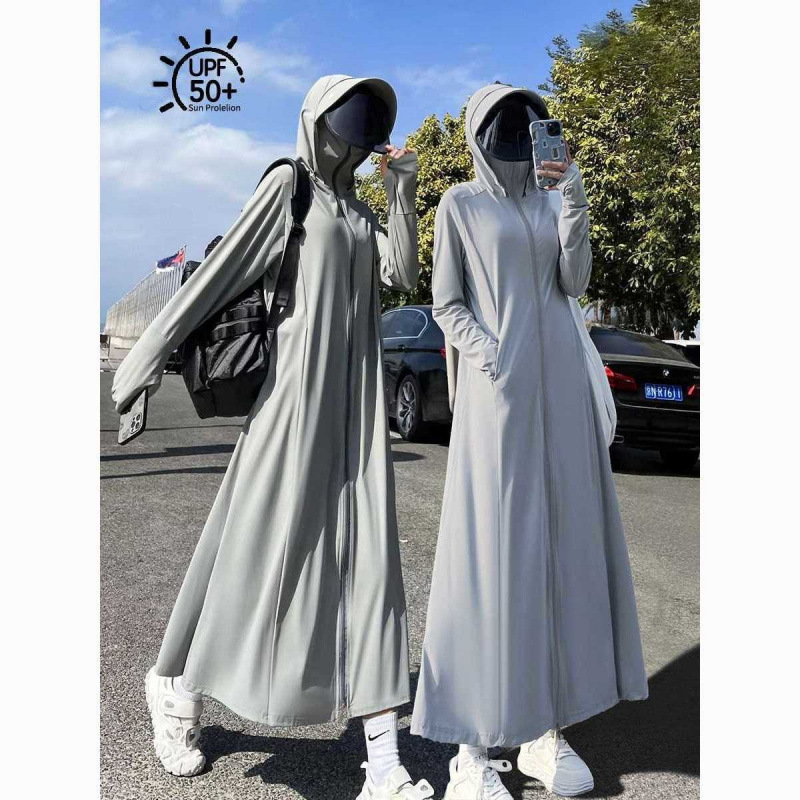防晒衣女2025夏季新款连帽长过膝紫外线冰丝透气防晒薄外套跨境