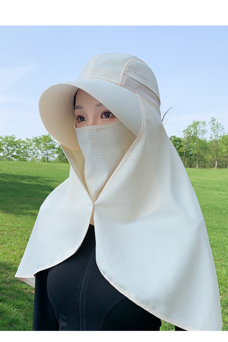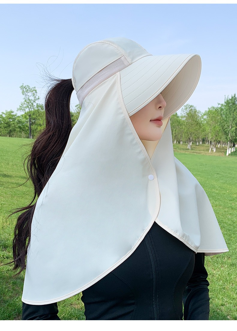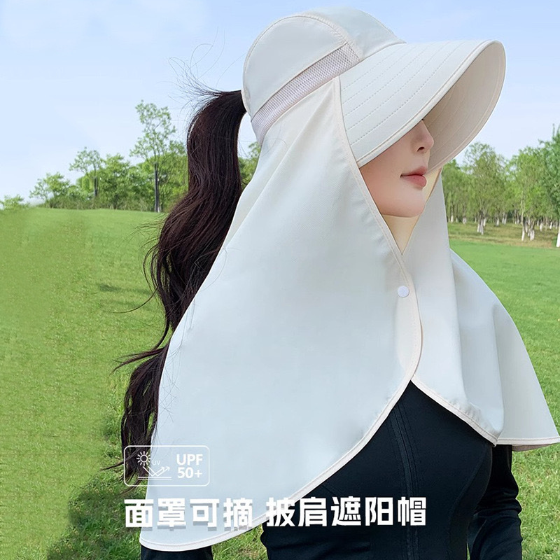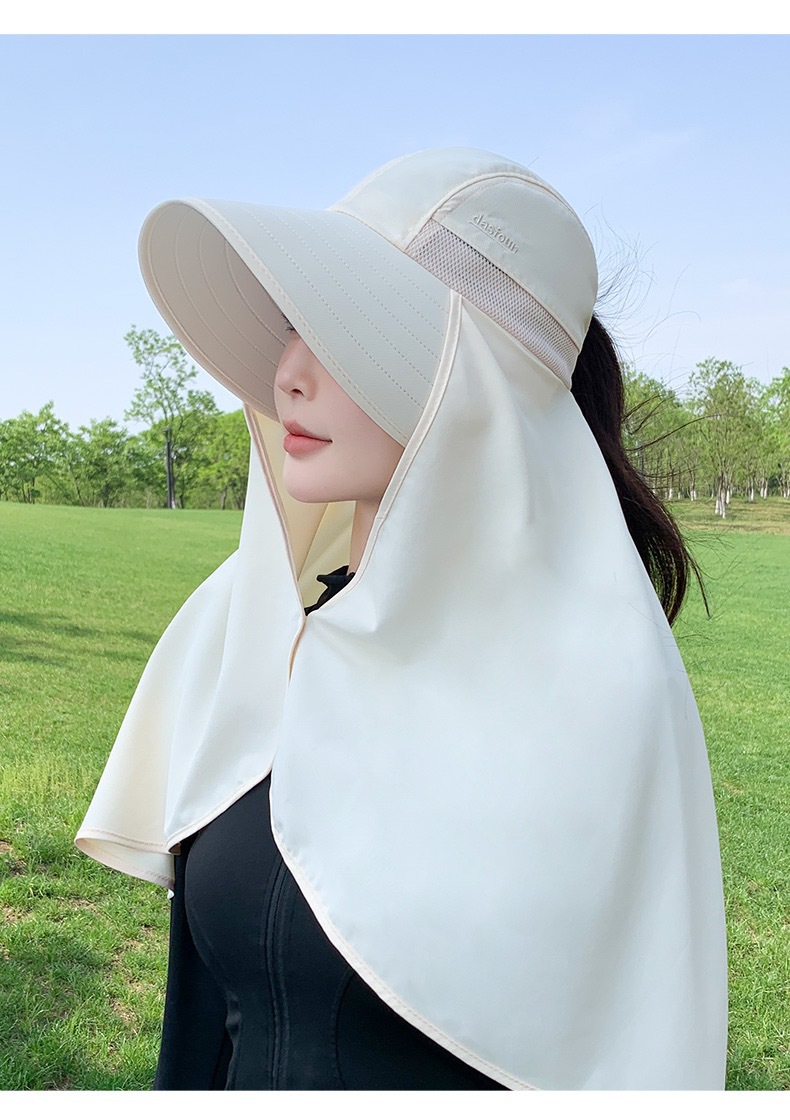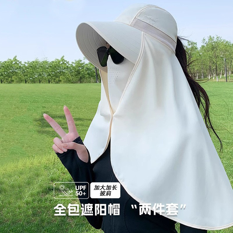 夏季遮脸护脖面罩加长披肩一体帽骑车遮阳帽子女夏季护颈太阳帽