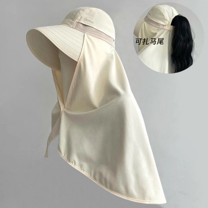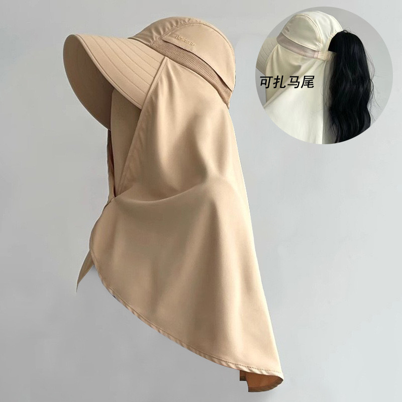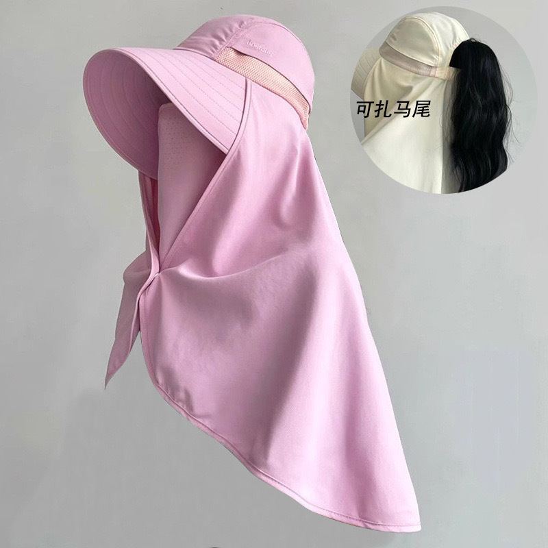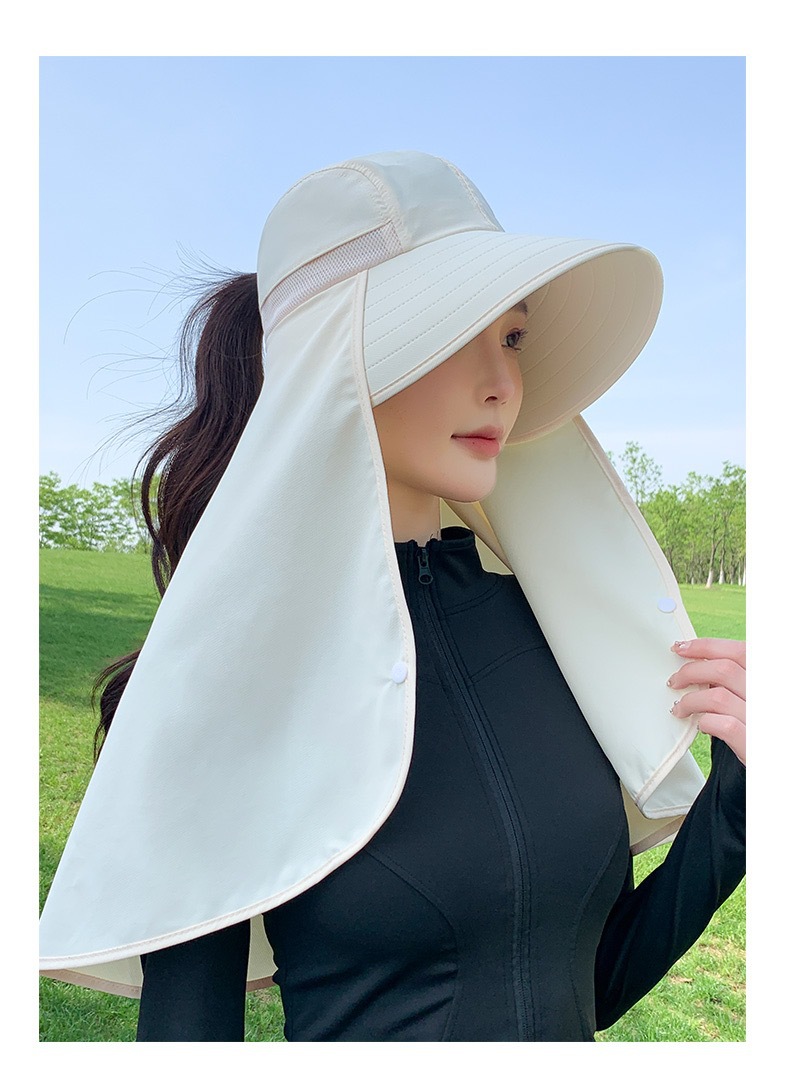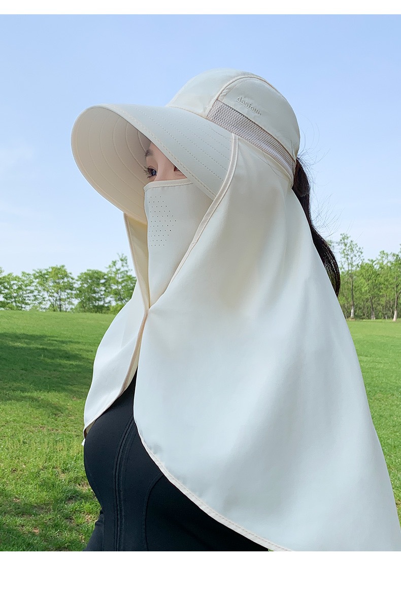 夏季遮脸护脖面罩加长披肩一体帽骑车遮阳帽子女夏季护颈太阳帽