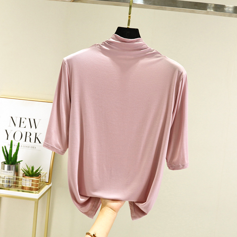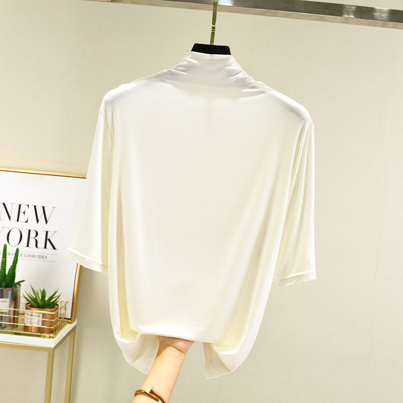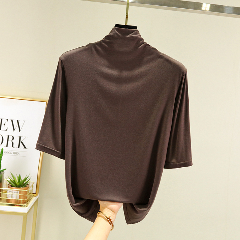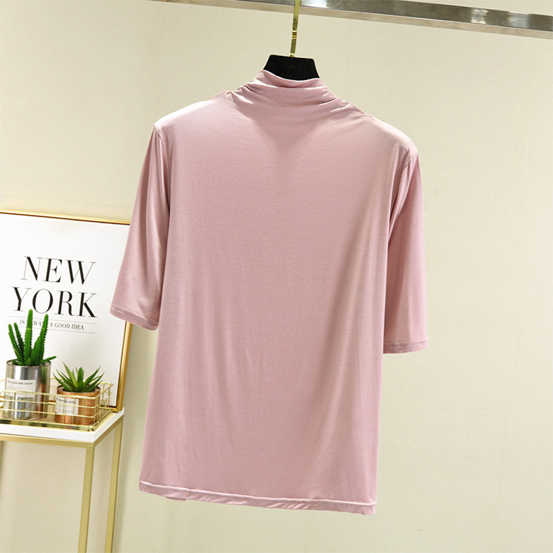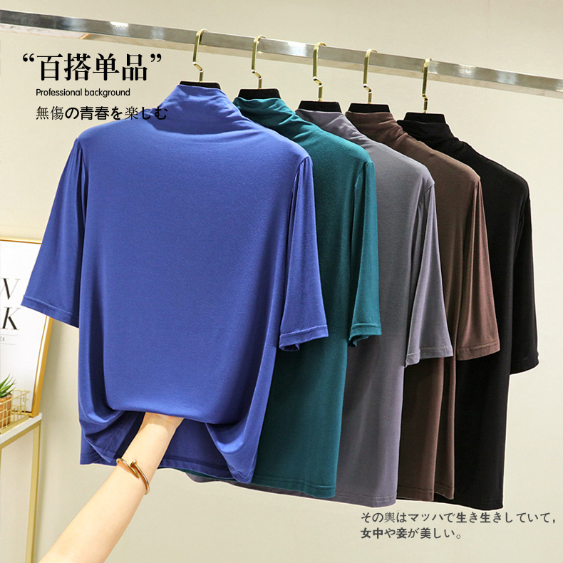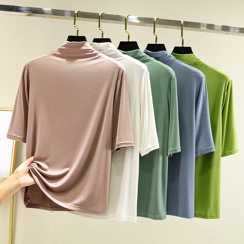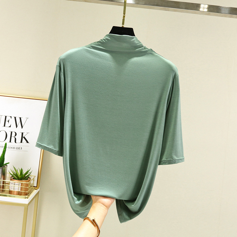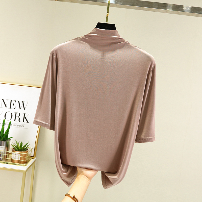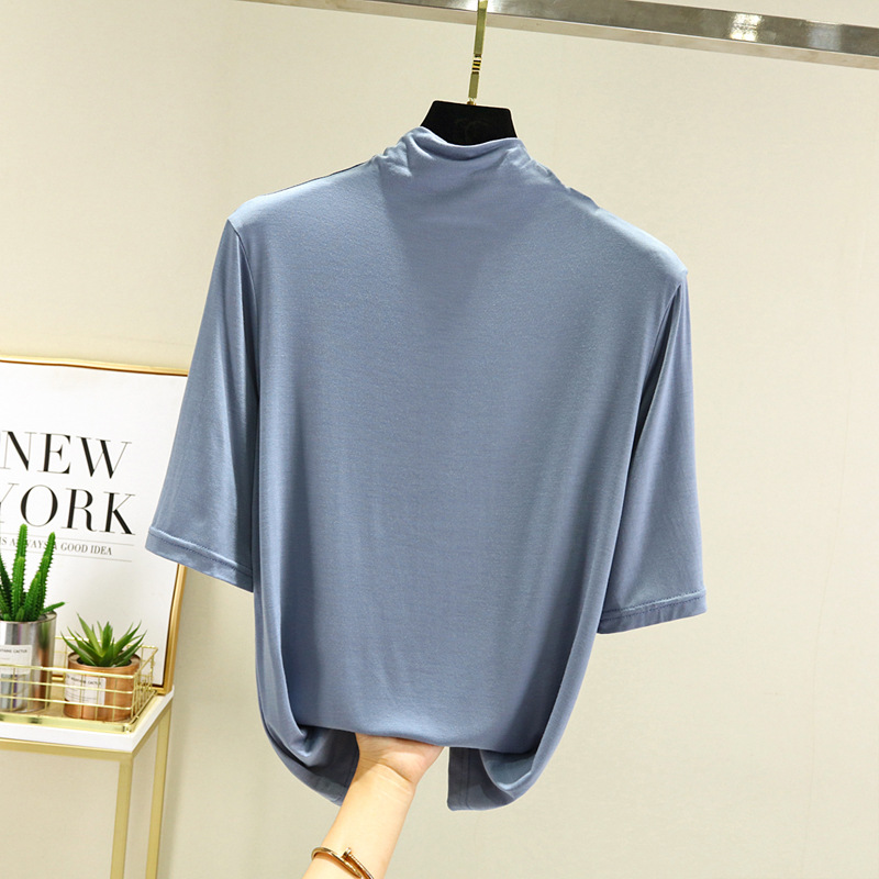 莫代尔半高领打底衫夏季外穿内搭洋气半袖T恤女百搭显瘦白色上衣