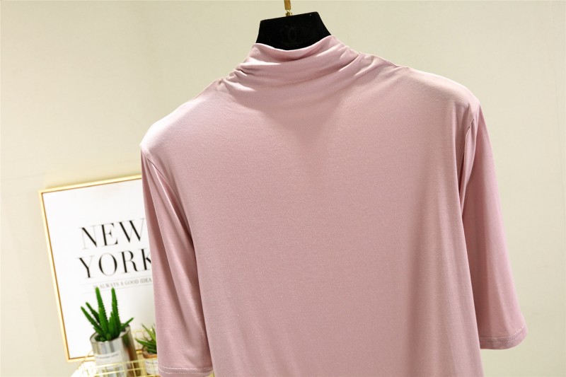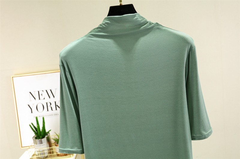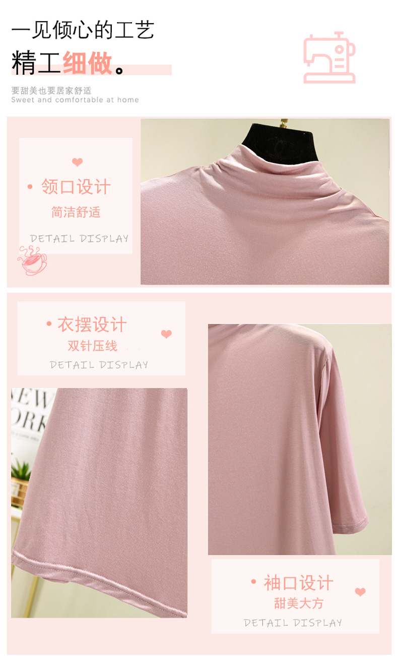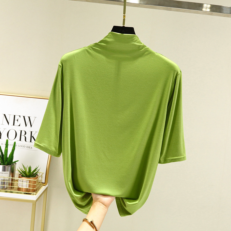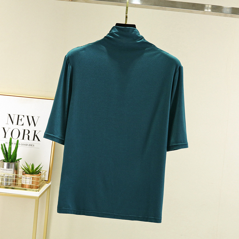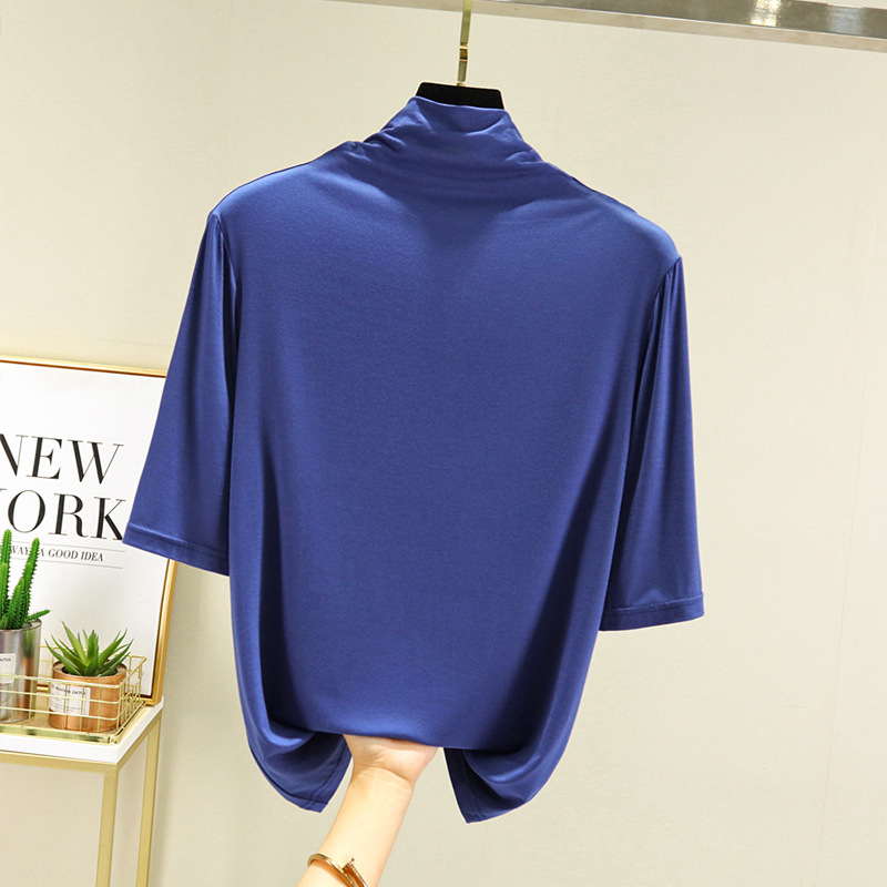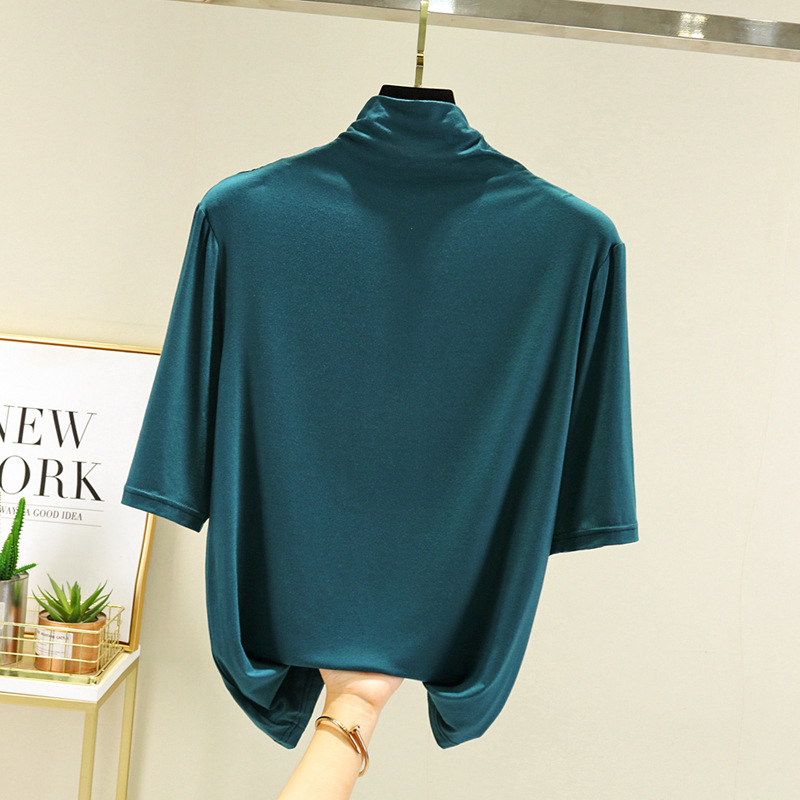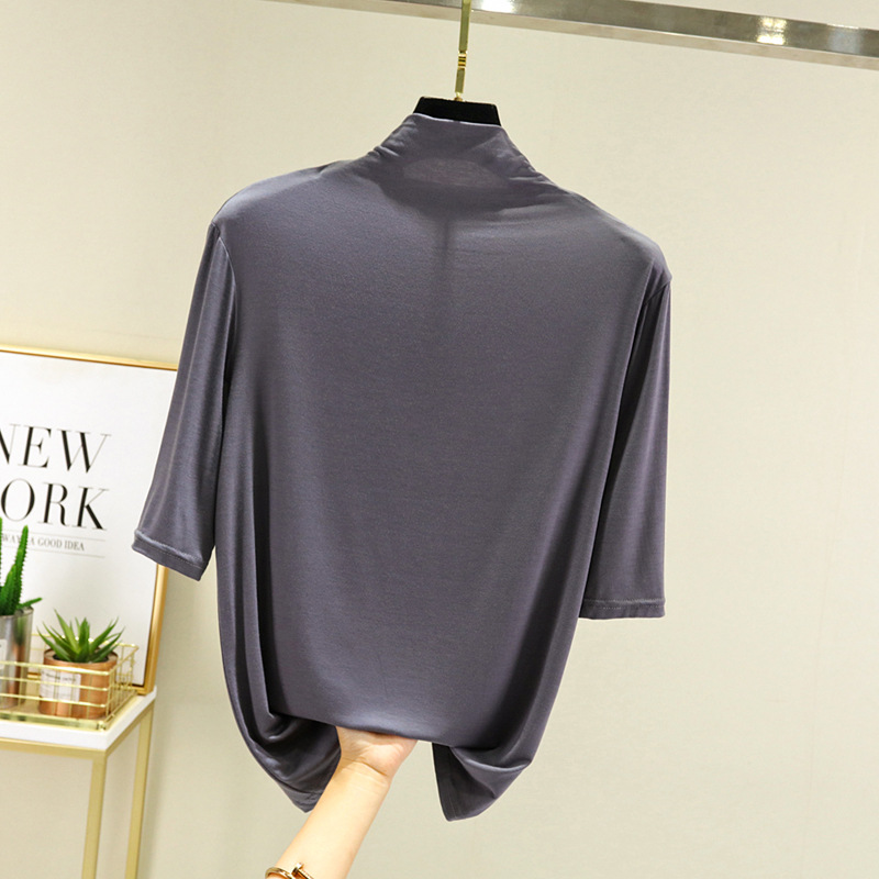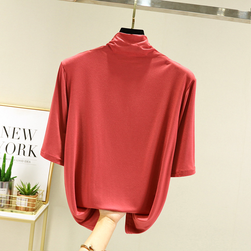 莫代尔半高领打底衫夏季外穿内搭洋气半袖T恤女百搭显瘦白色上衣