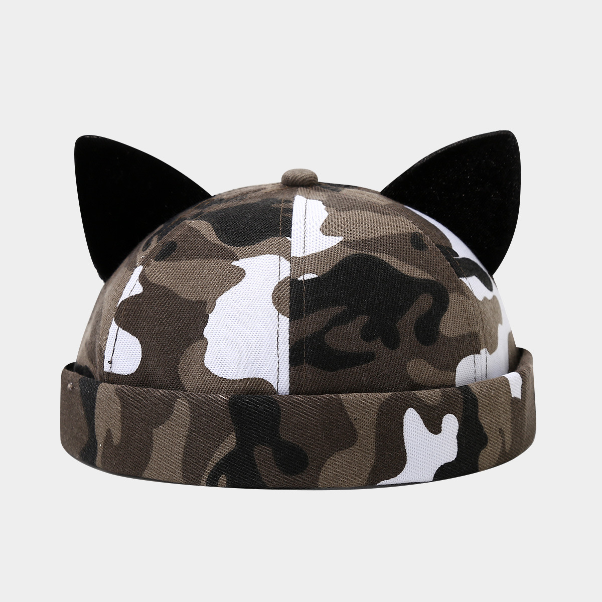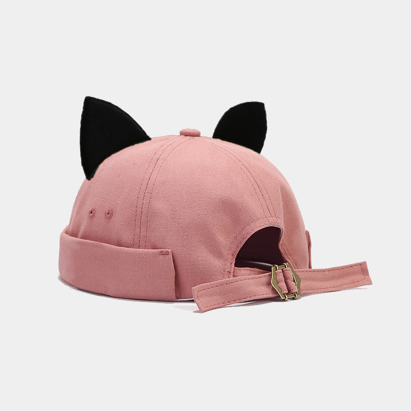 日系新款可爱百搭猫耳朵瓜皮帽女夏季韩版无檐圆顶雅痞帽潮地主帽
