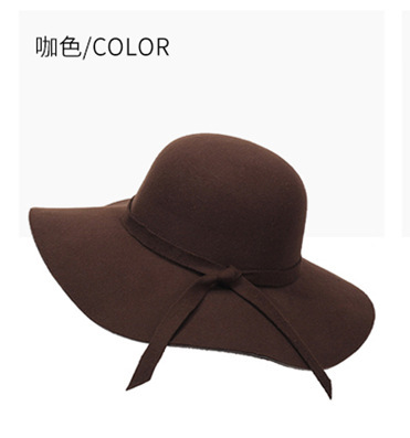 英伦复古欧美风仿羊毛呢大檐帽韩版圆顶波浪边大沿礼帽遮阳帽子女