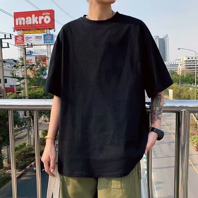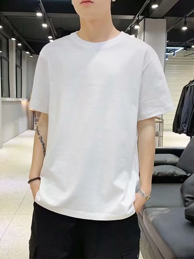 夏季五分短袖t恤男潮牌大码纯色百搭上衣ins潮流休闲宽松半袖体恤