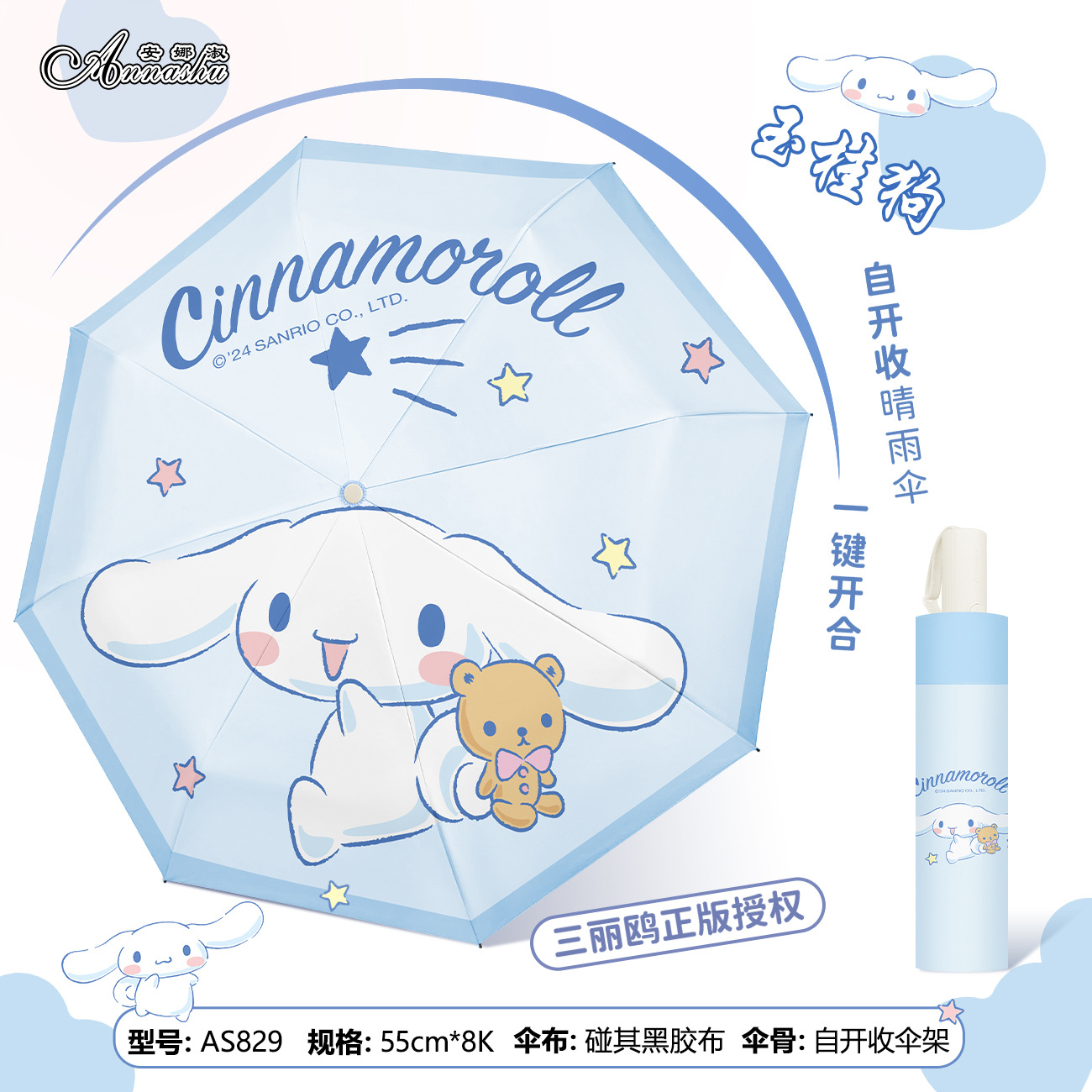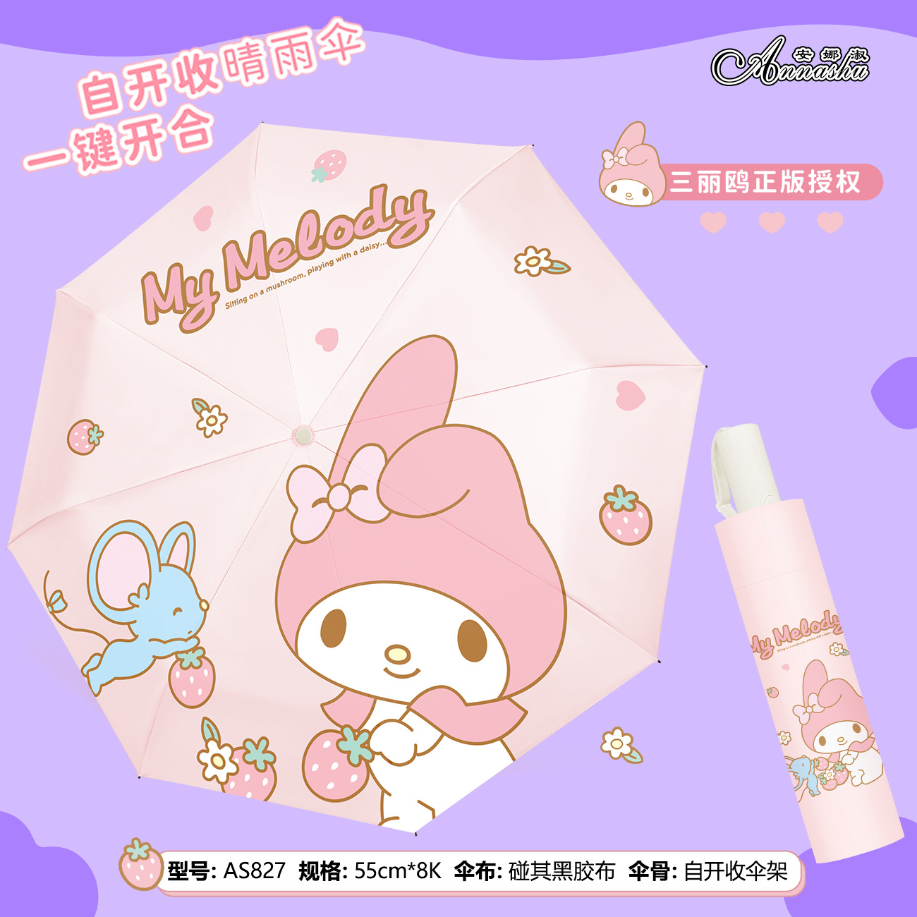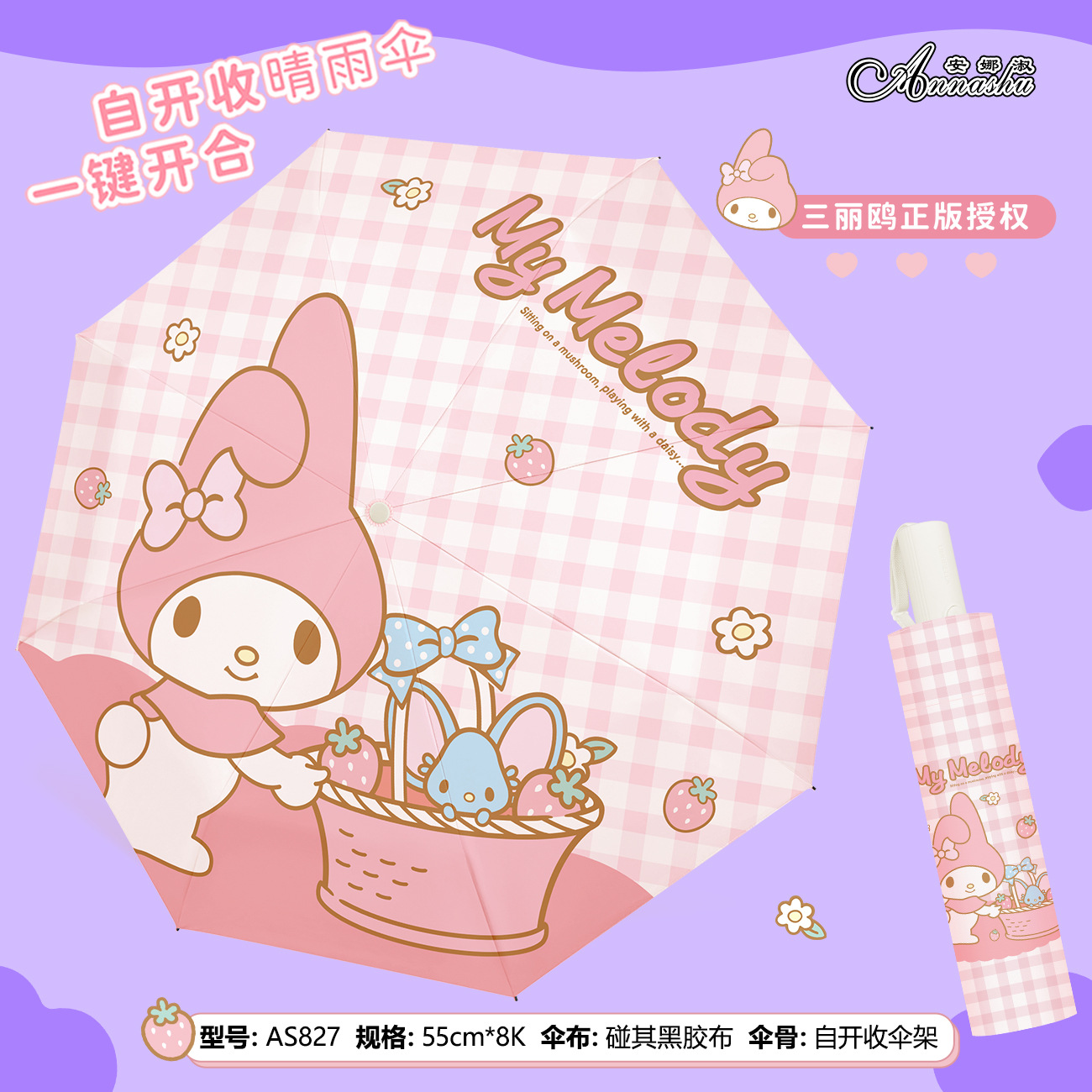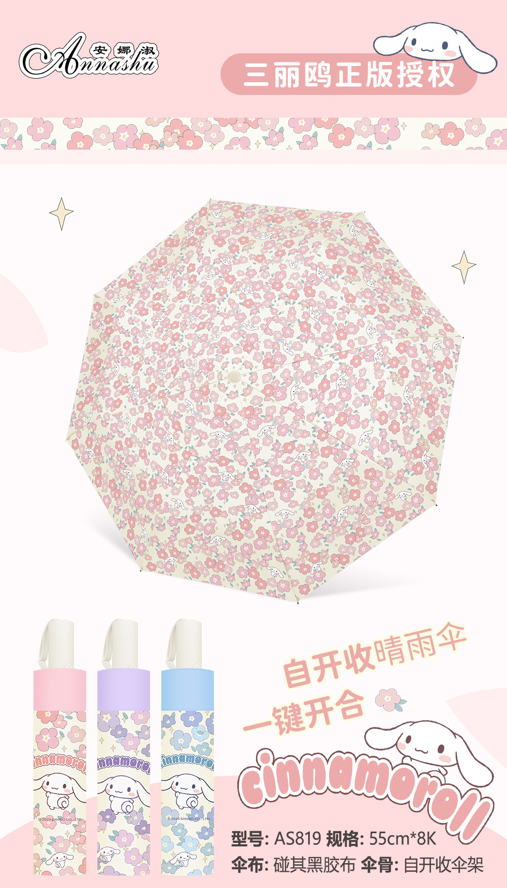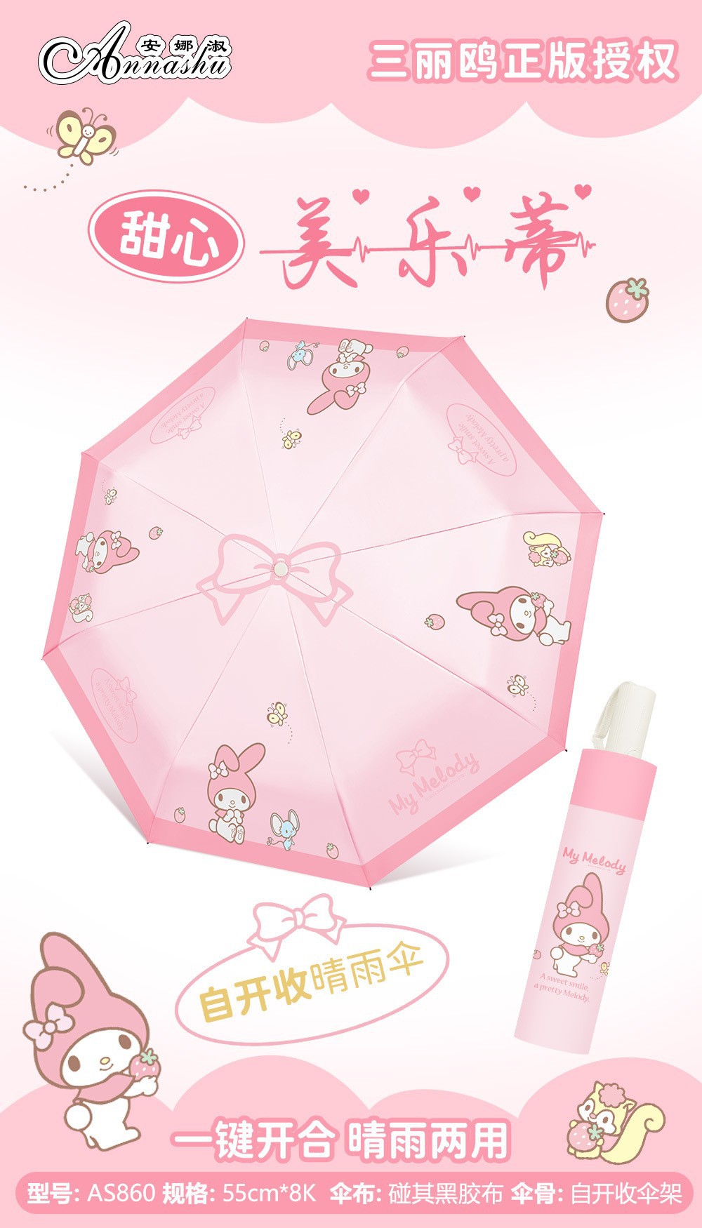 正版三丽鸥雨伞酷洛米太阳伞晴雨两用防晒防紫外线三折自动伞