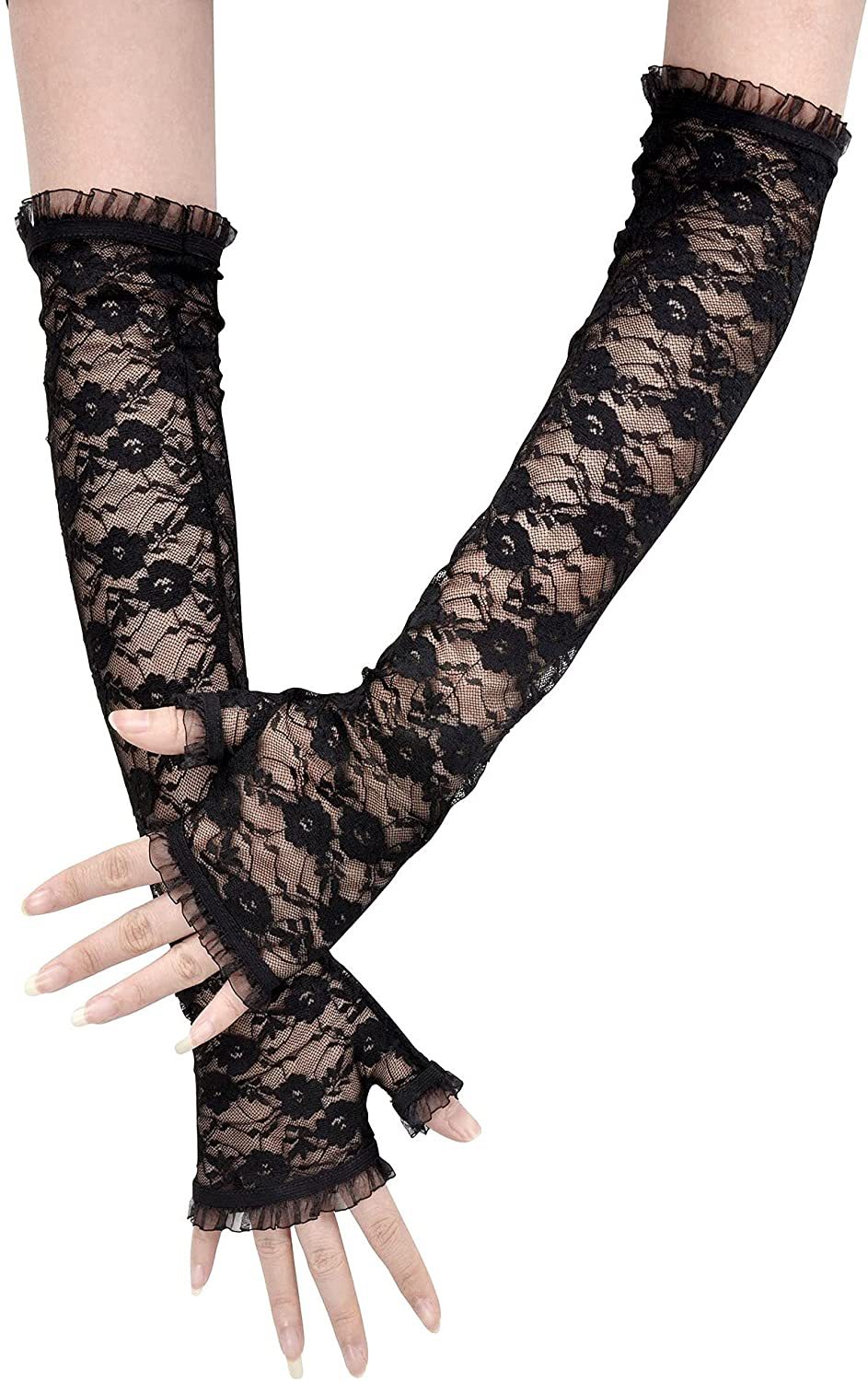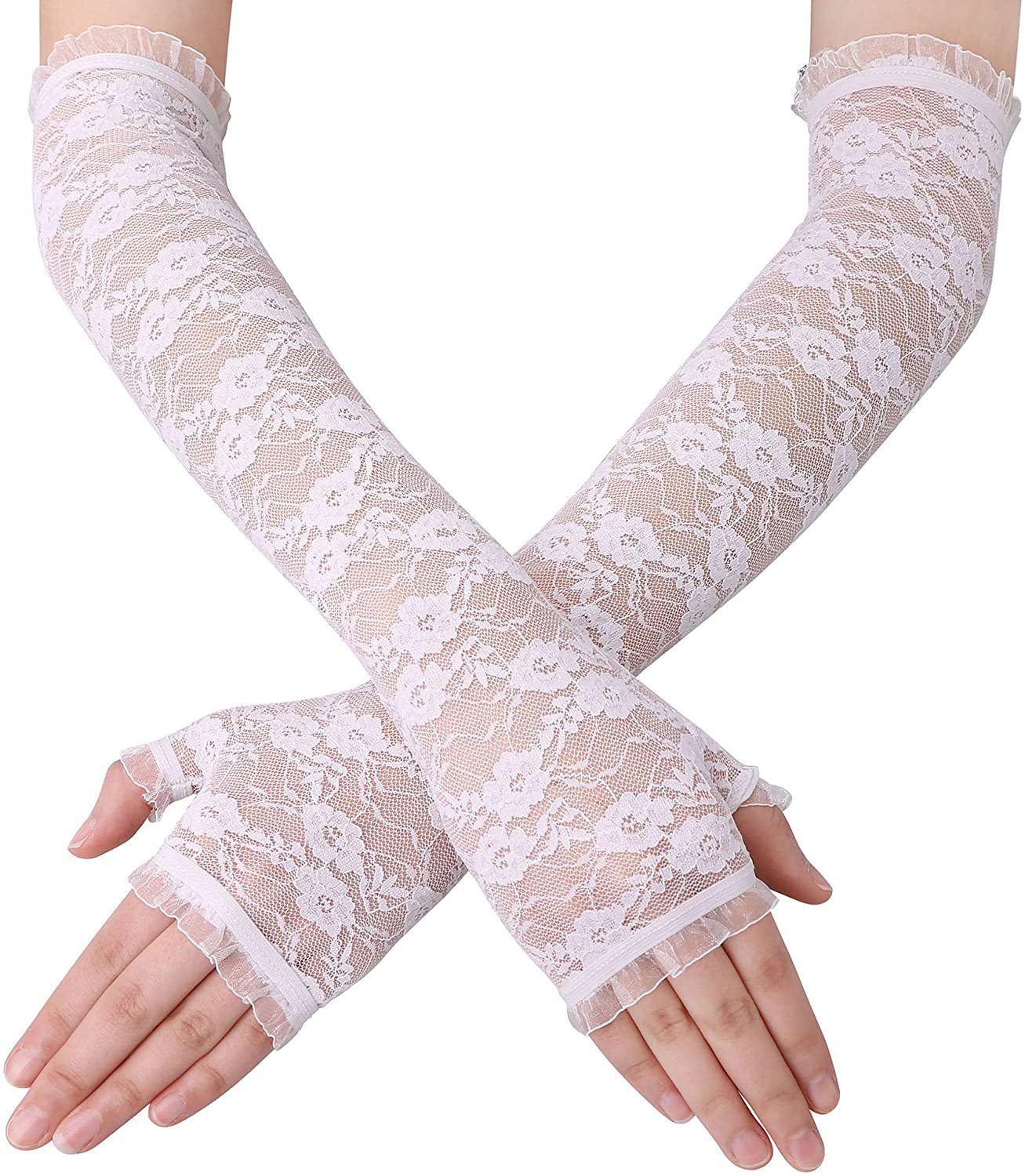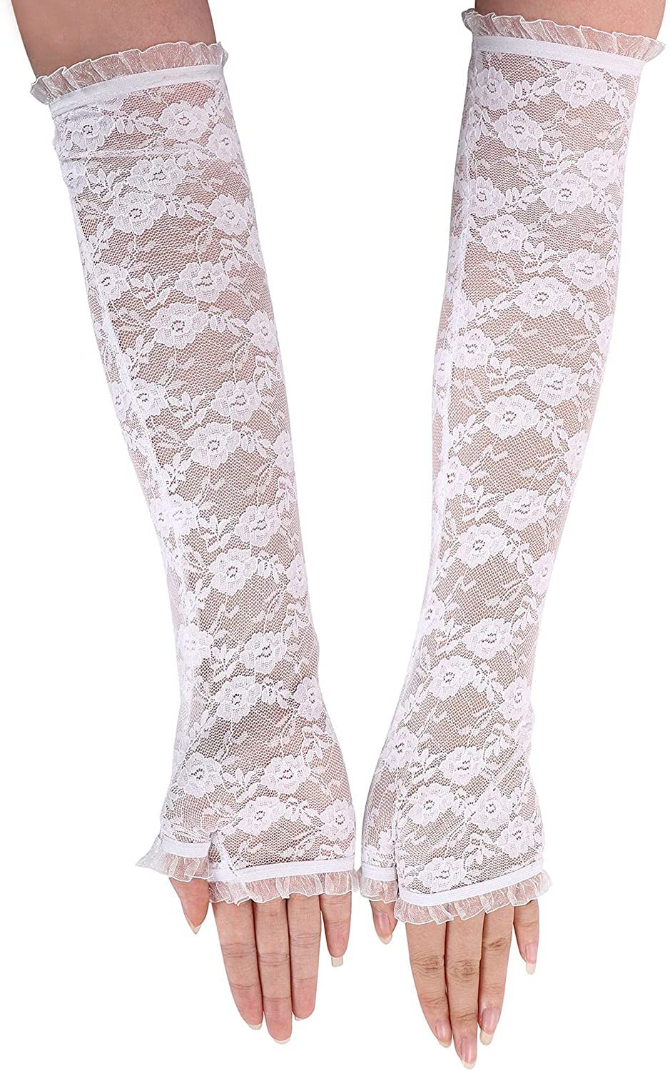 长款半指蕾丝手套女士夏季防晒袖套开车骑行防紫外线遮阳漏指手套