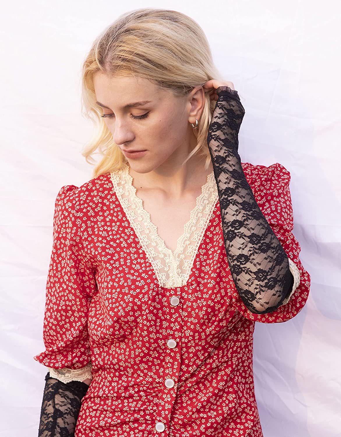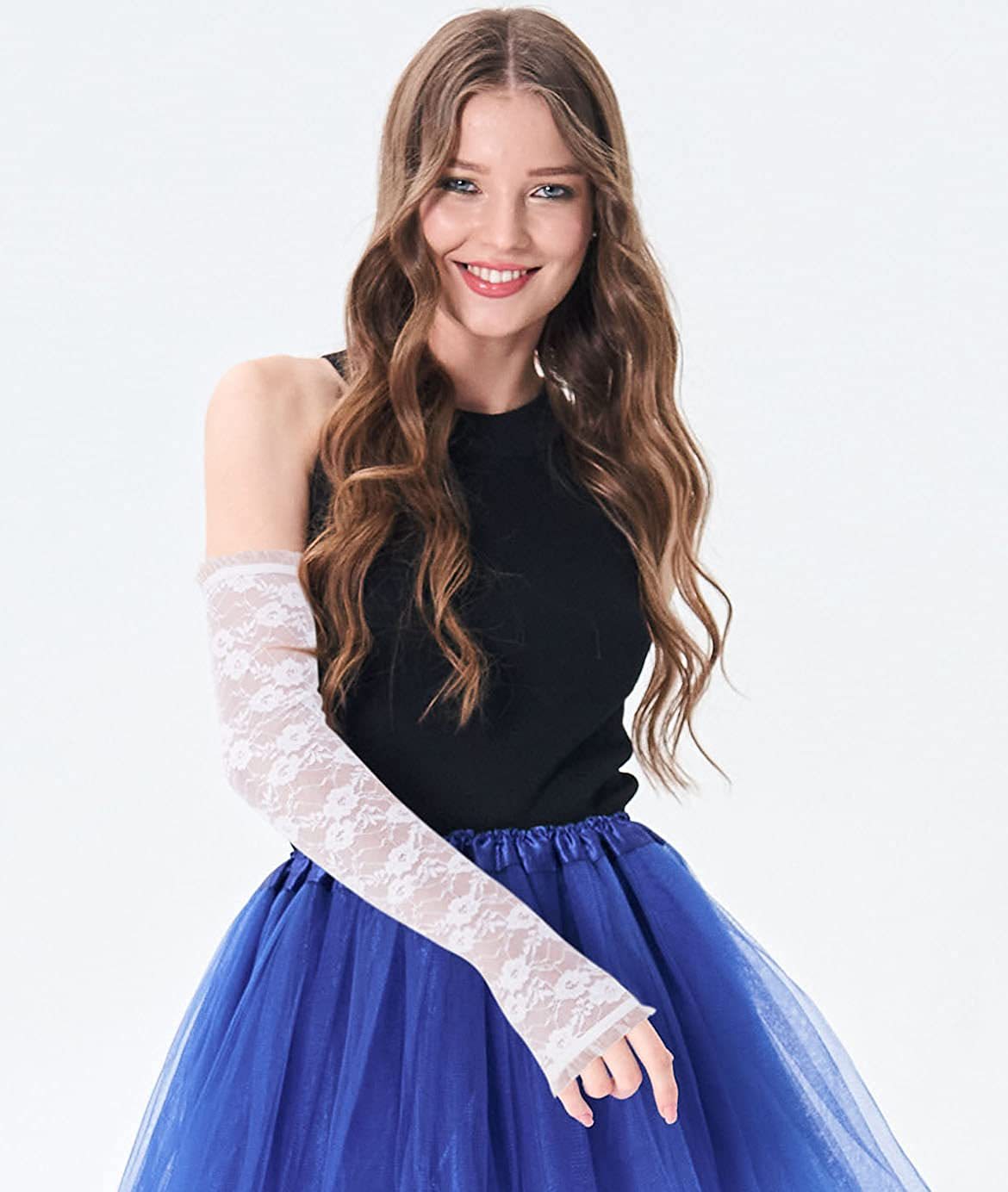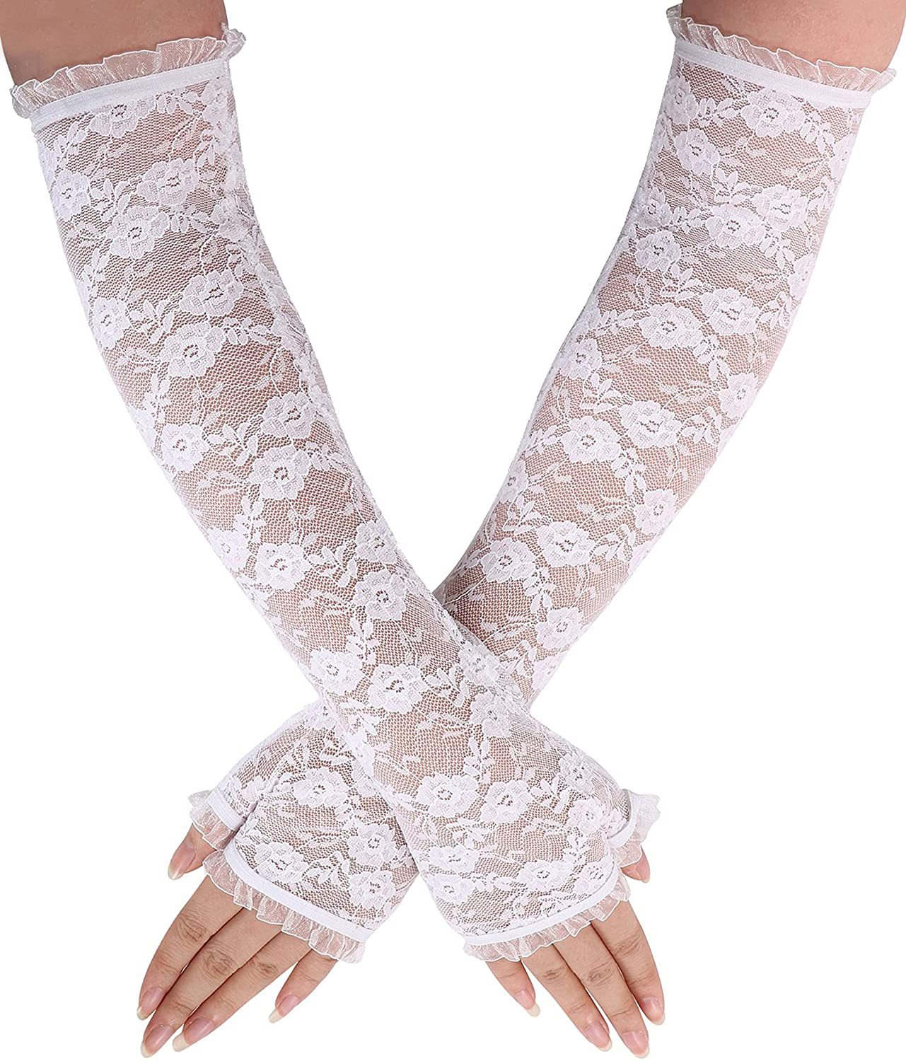 长款半指蕾丝手套女士夏季防晒袖套开车骑行防紫外线遮阳漏指手套