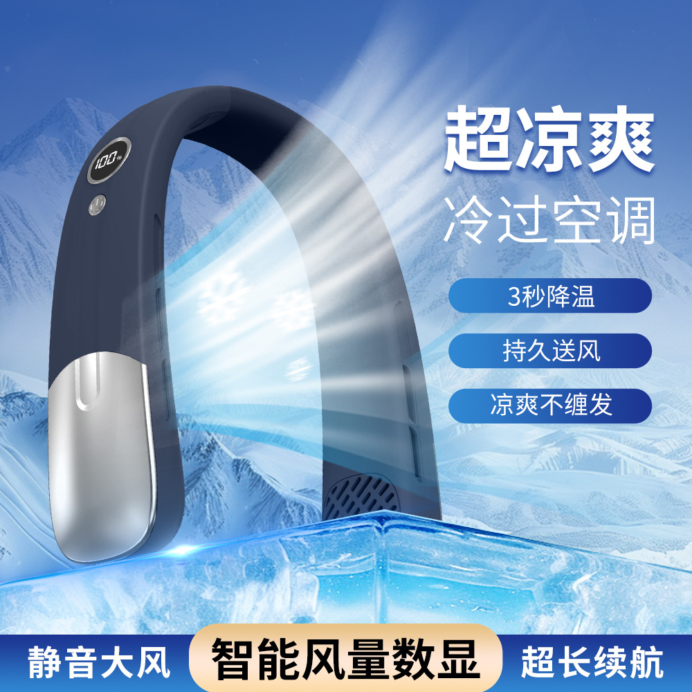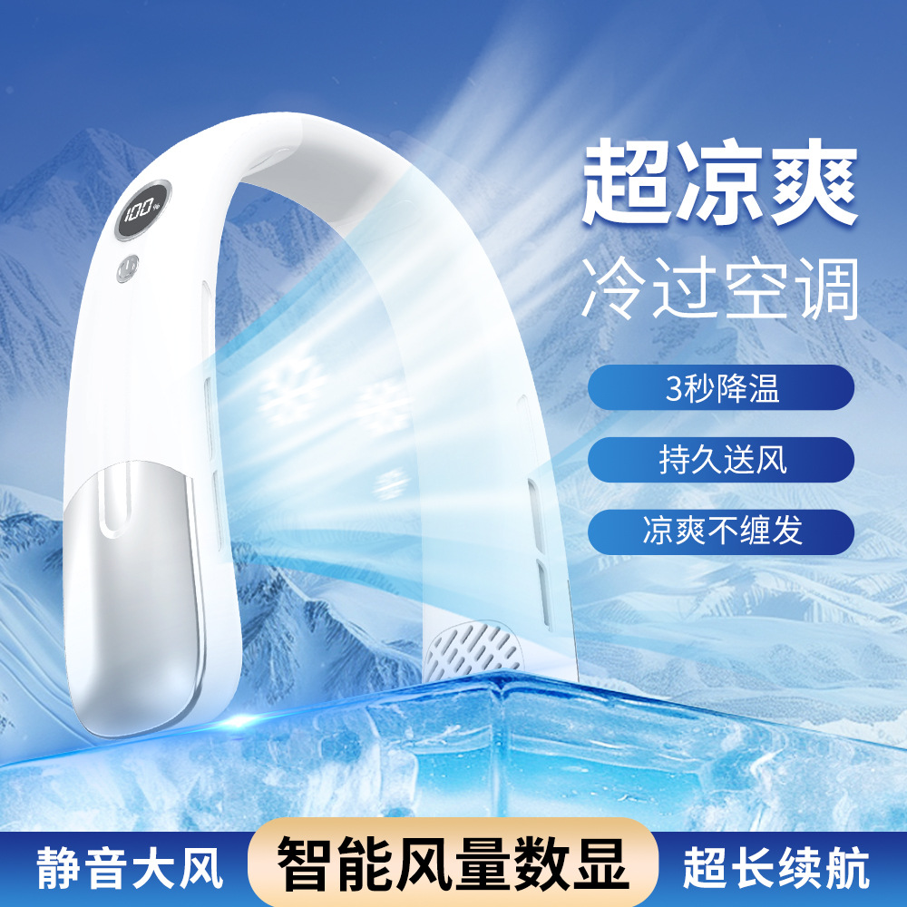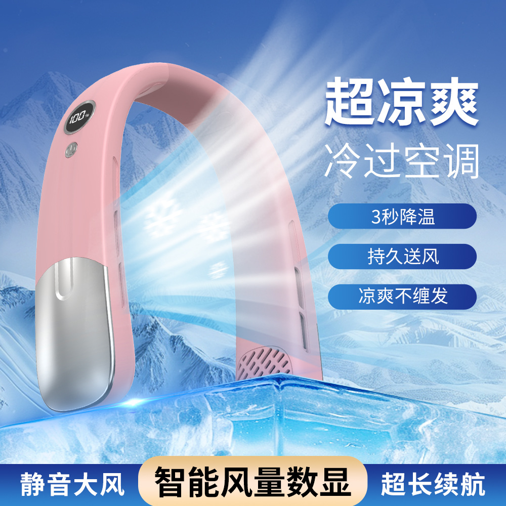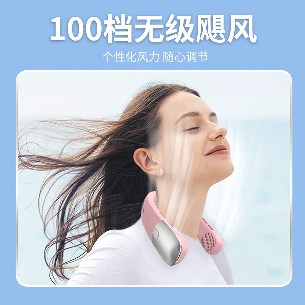 跨境新款无叶挂脖风扇懒人便携式100档高速挂脖小风扇源头厂家