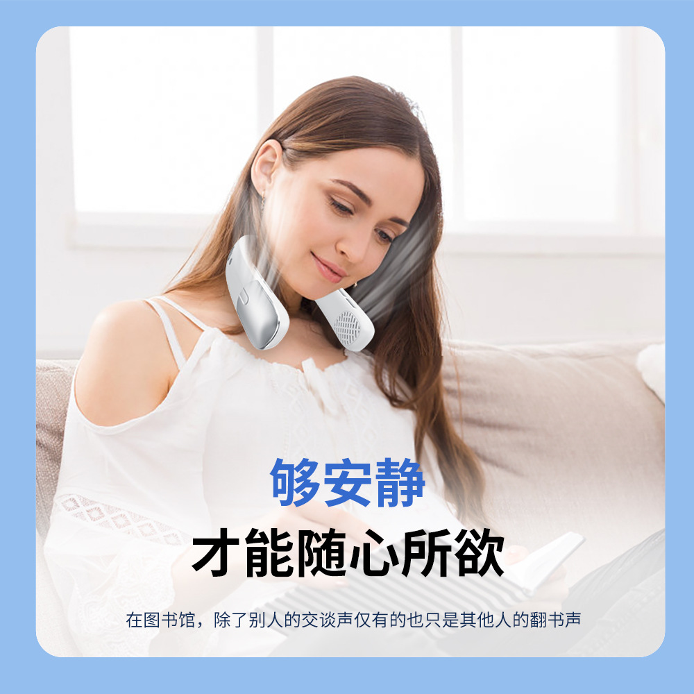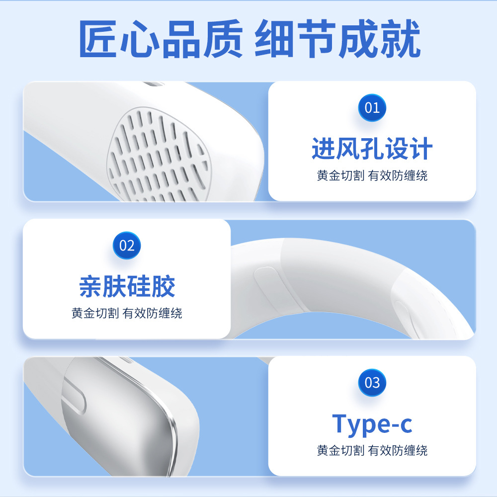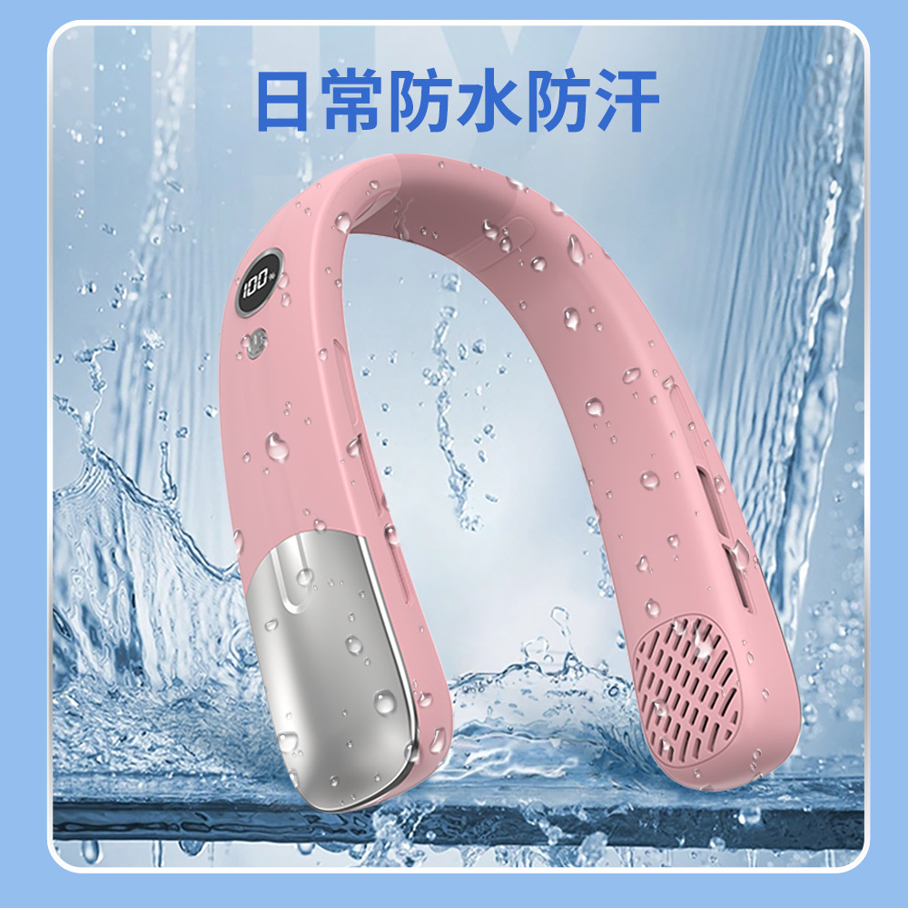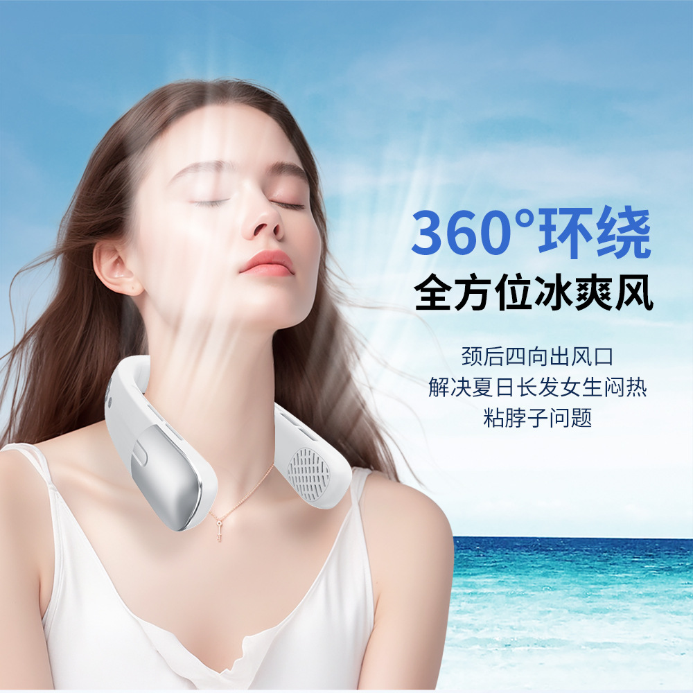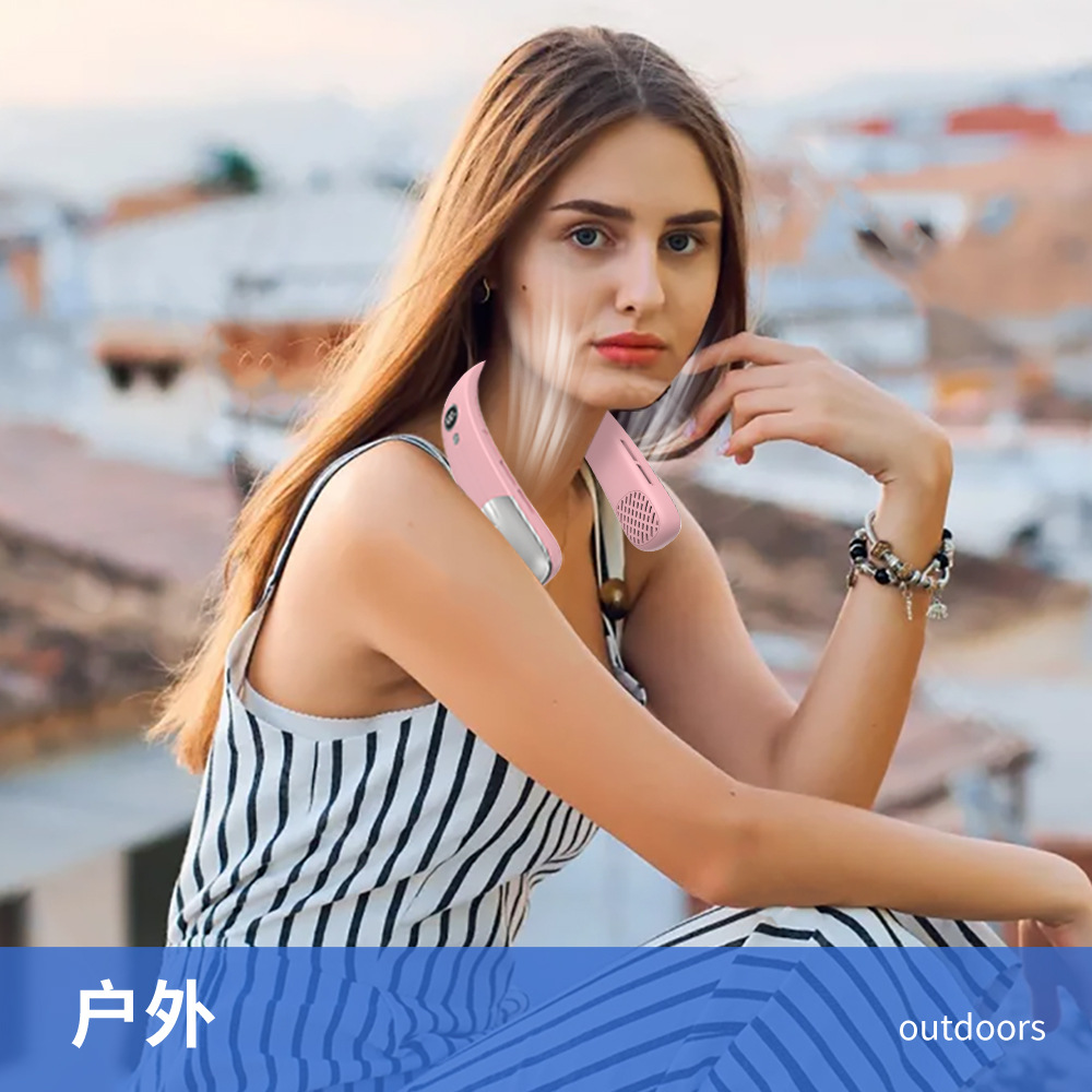 跨境新款无叶挂脖风扇懒人便携式100档高速挂脖小风扇源头厂家