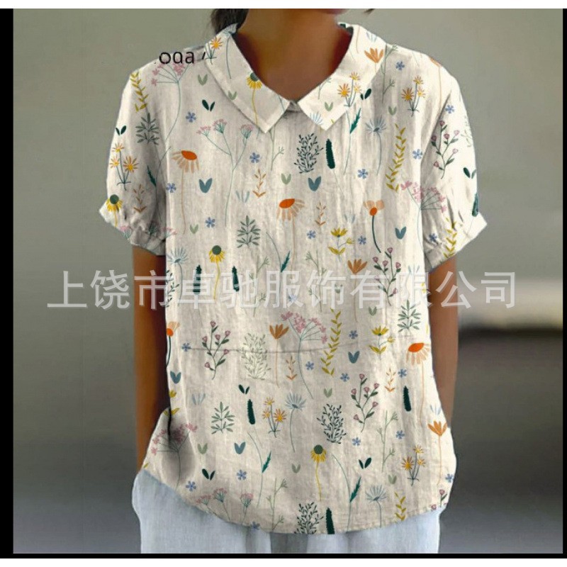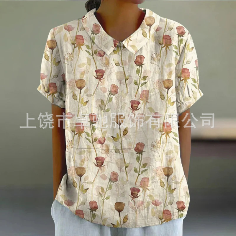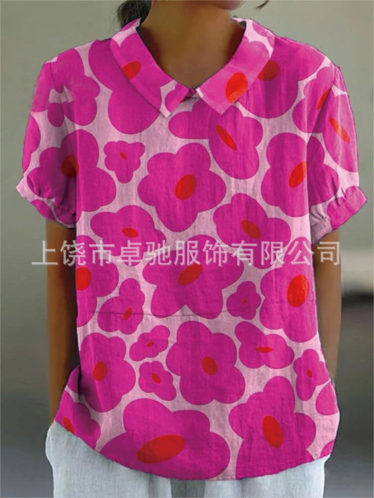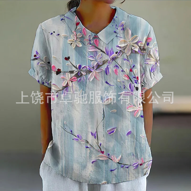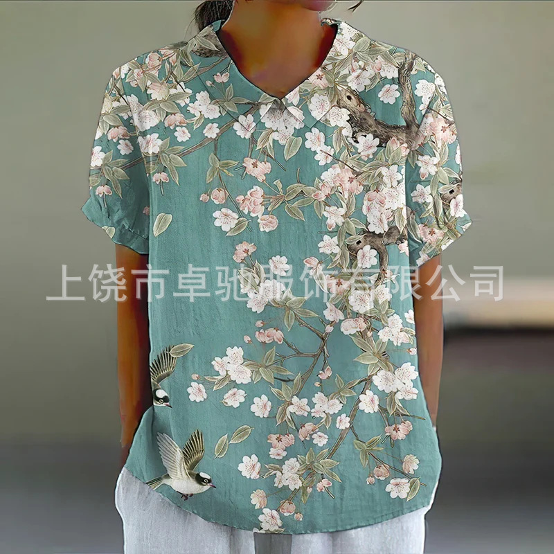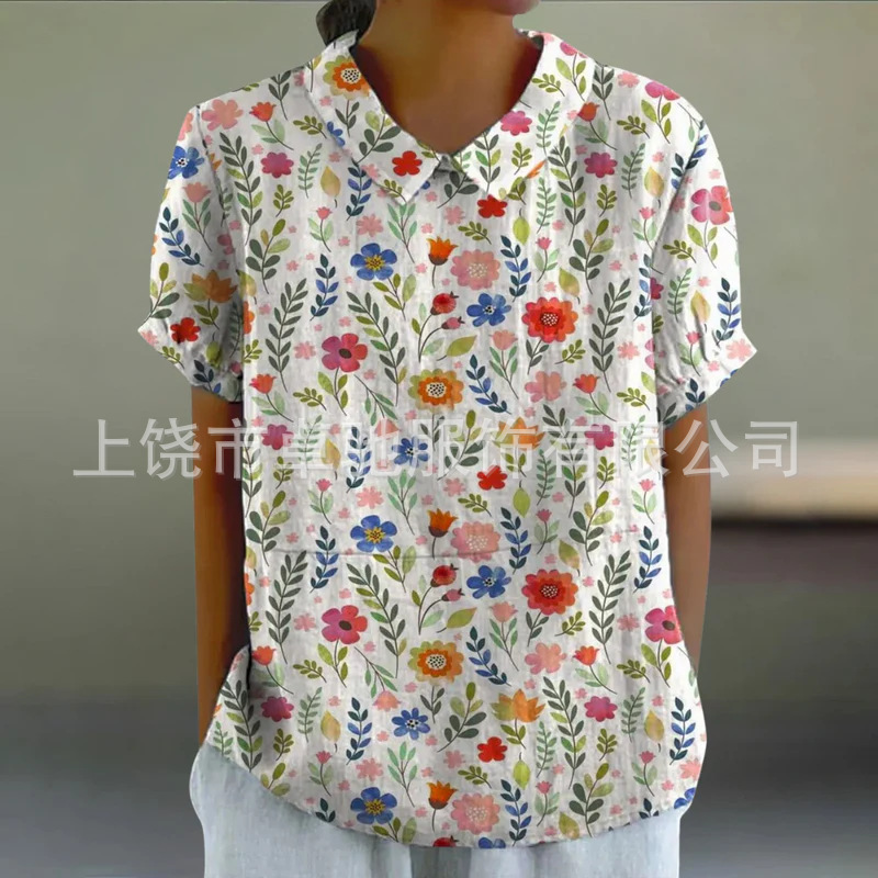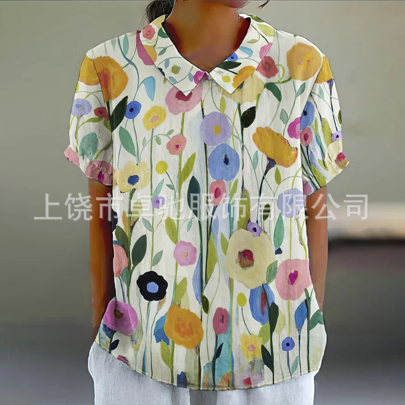 2025独立站爆款希音亚马逊外贸跨境夏季风短袖印花套头衬衫