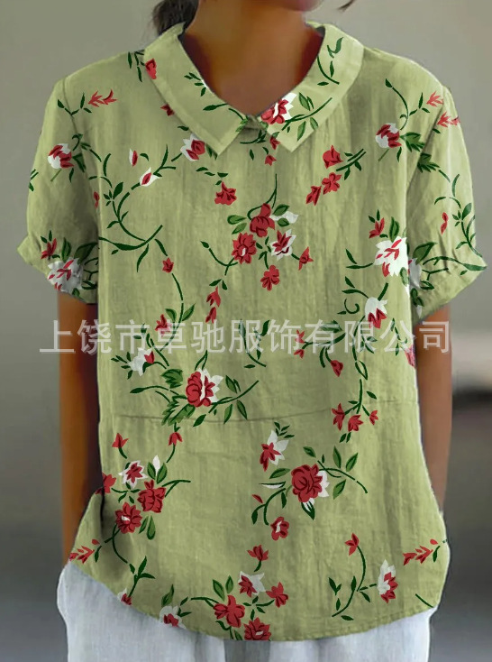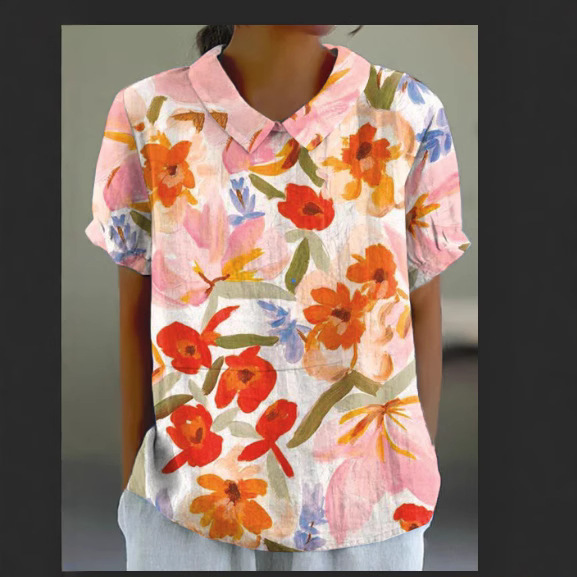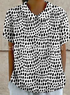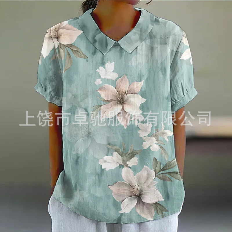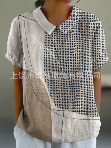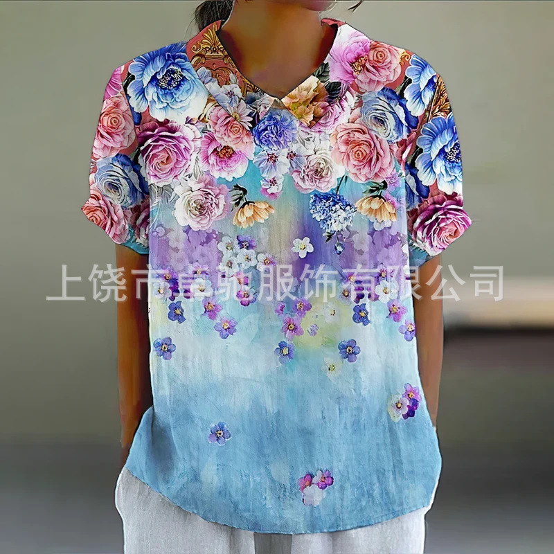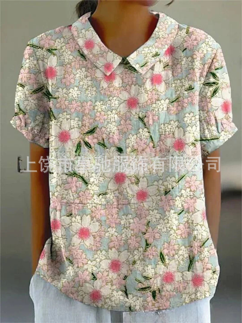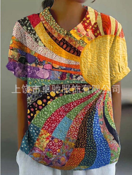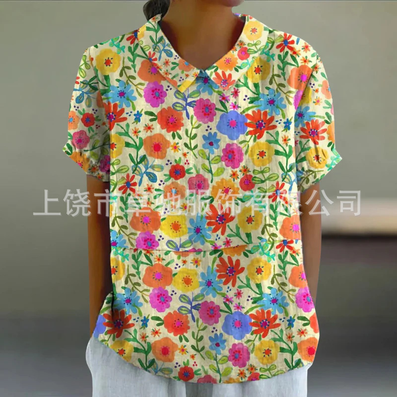 2025独立站爆款希音亚马逊外贸跨境夏季风短袖印花套头衬衫