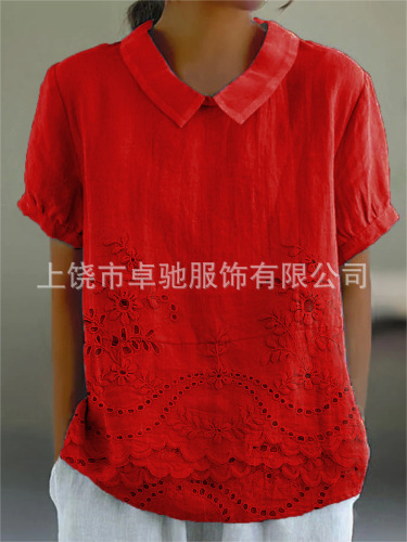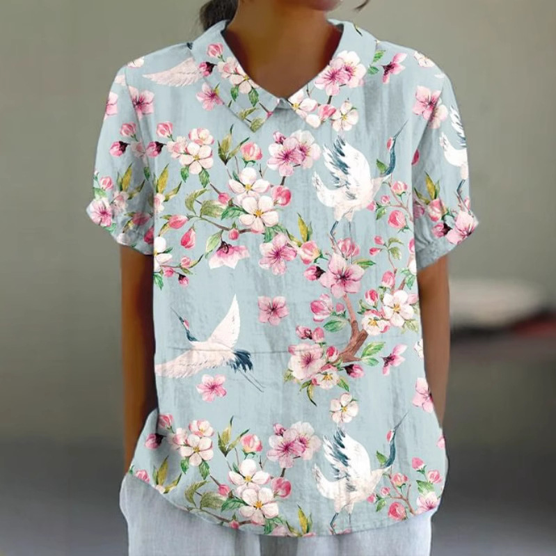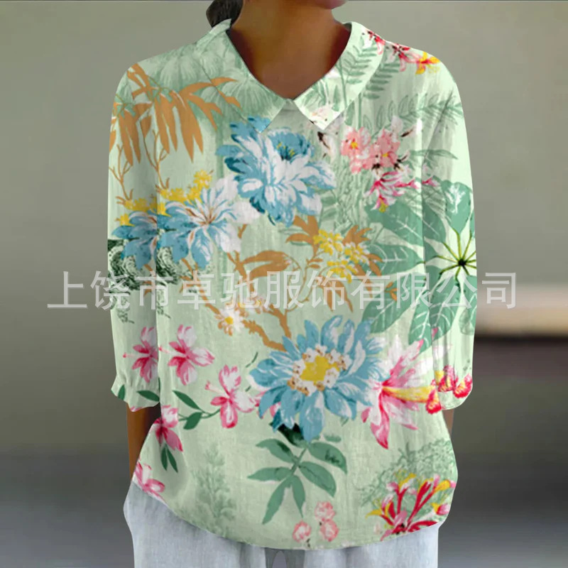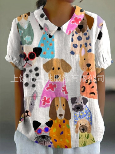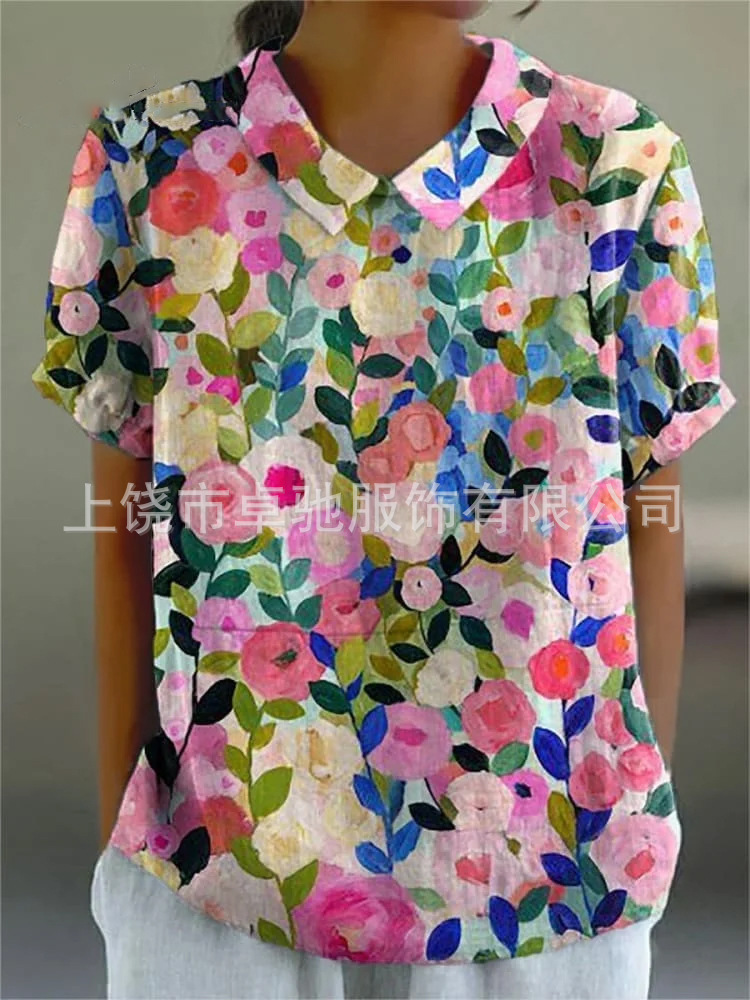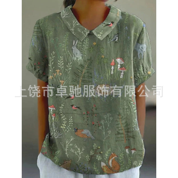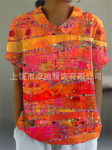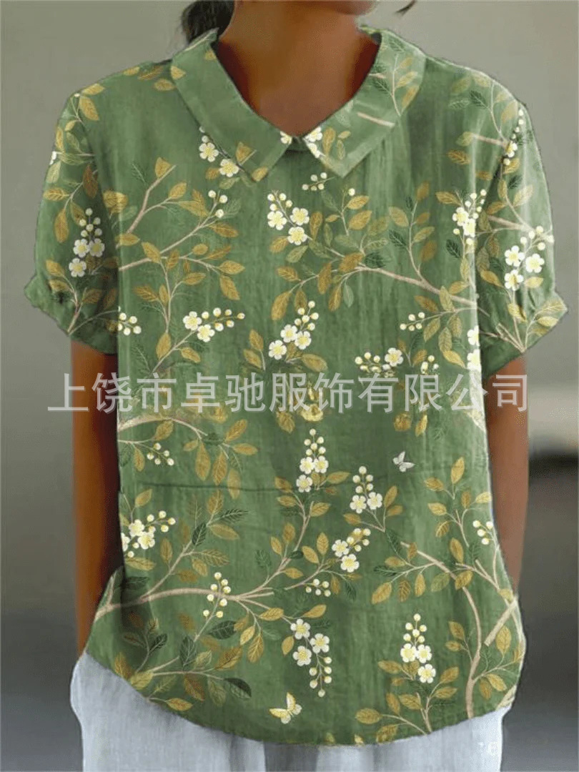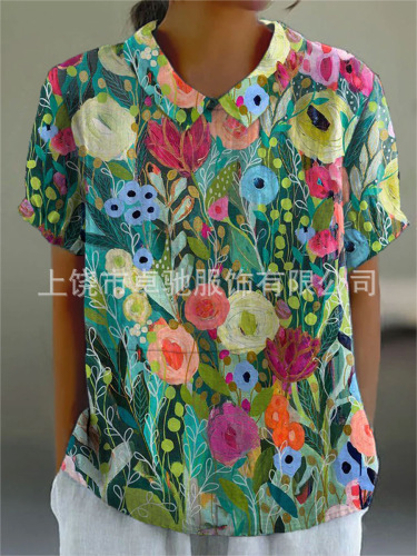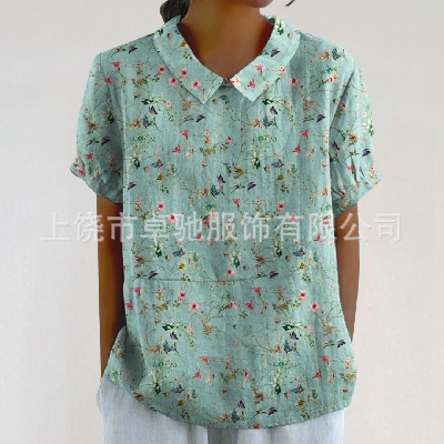 2025独立站爆款希音亚马逊外贸跨境夏季风短袖印花套头衬衫