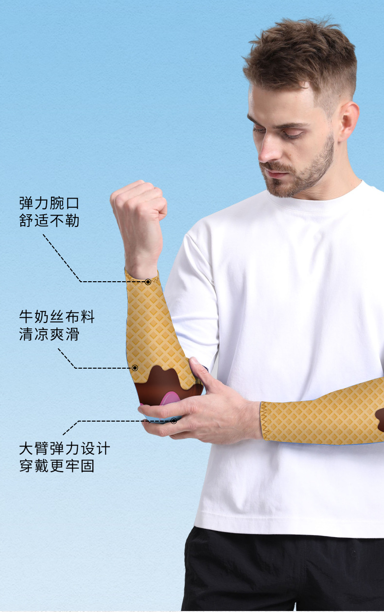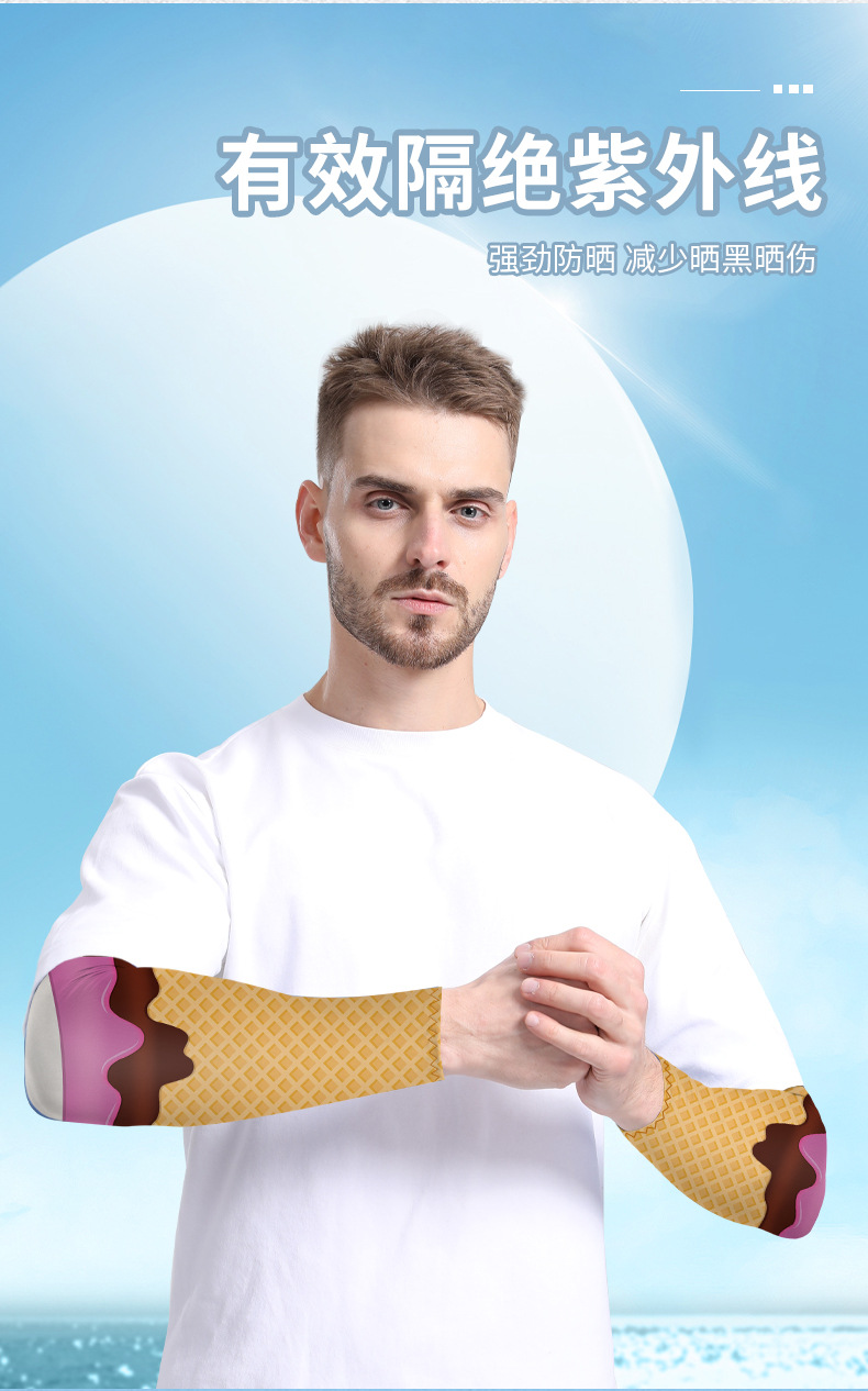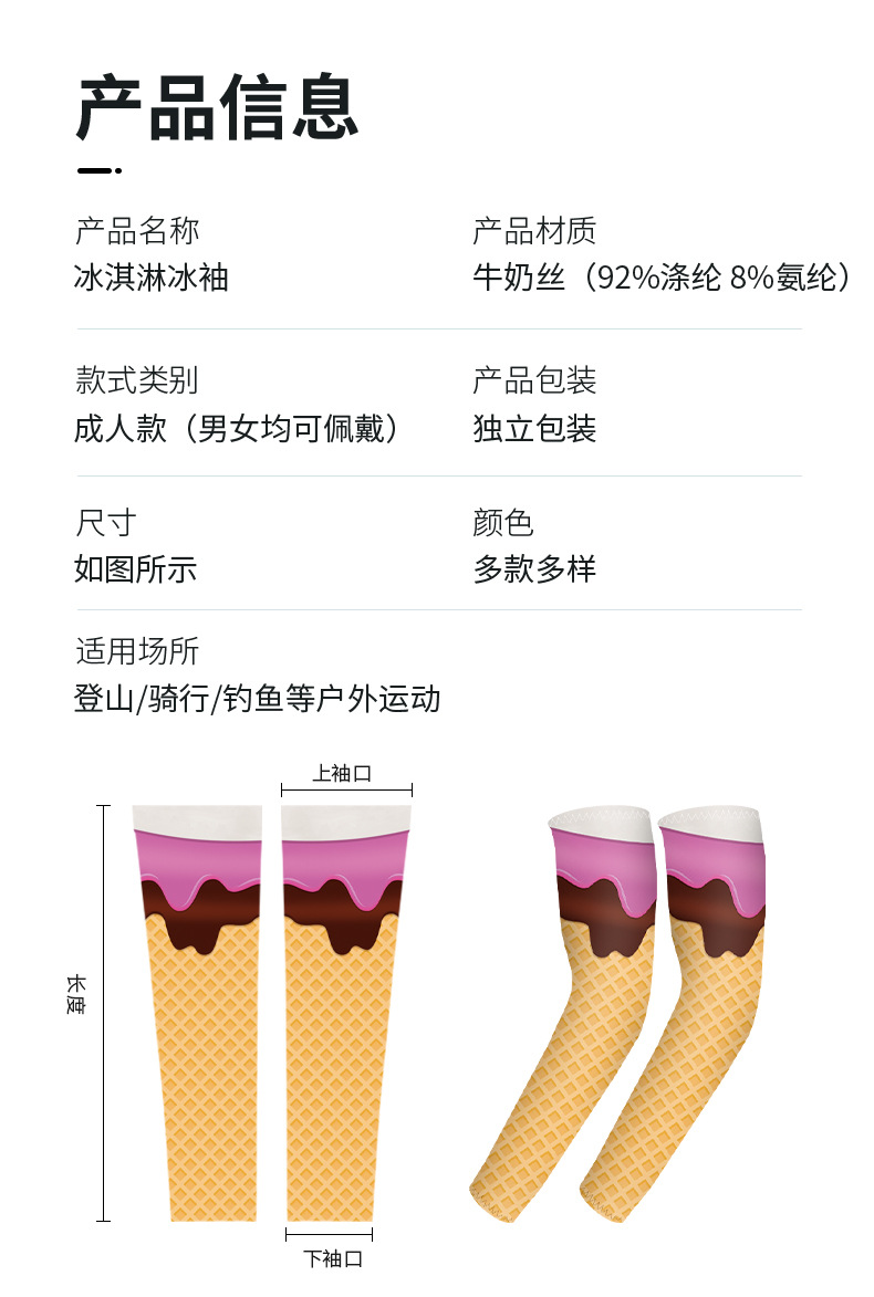 爆款儿童直筒防晒冰袖套薄款男女冰丝套袖雪糕冰淇淋弹力护手臂套