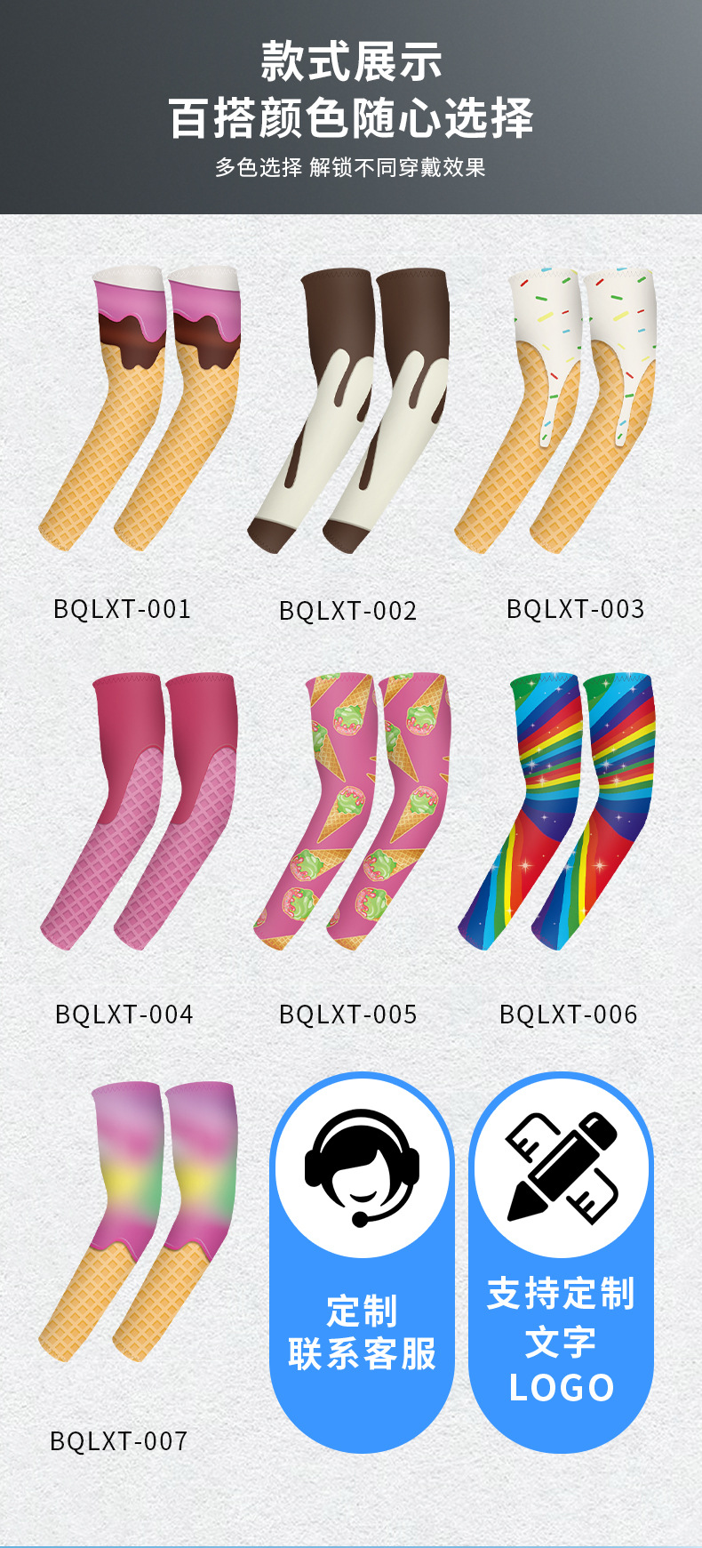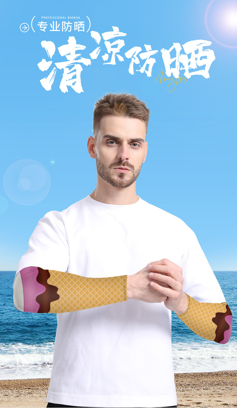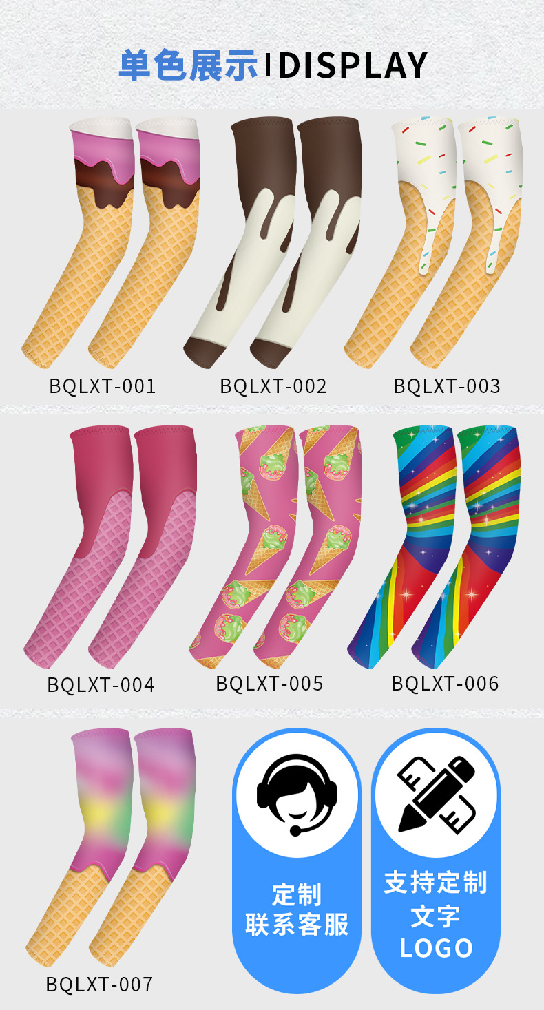 爆款儿童直筒防晒冰袖套薄款男女冰丝套袖雪糕冰淇淋弹力护手臂套