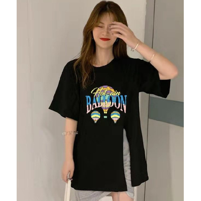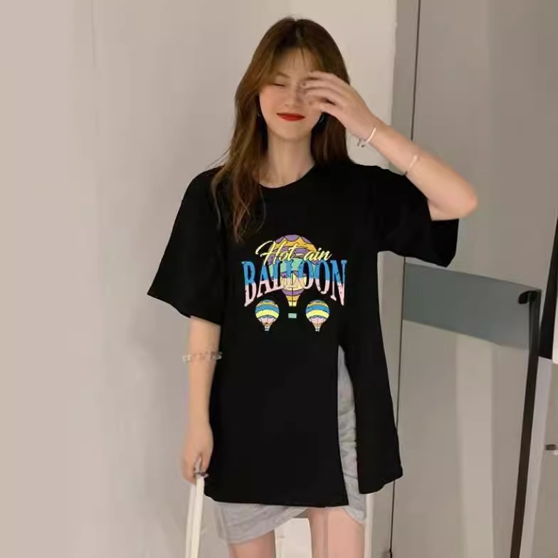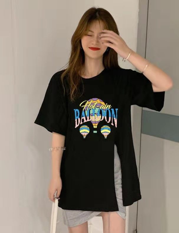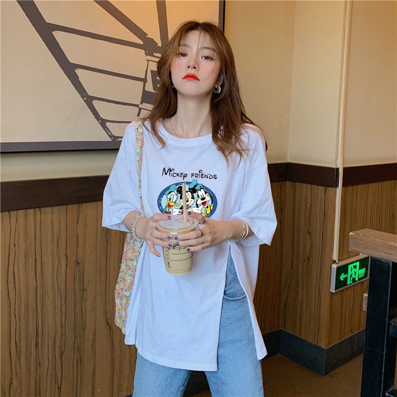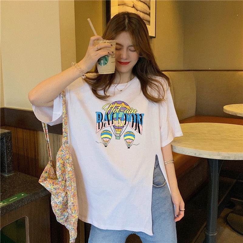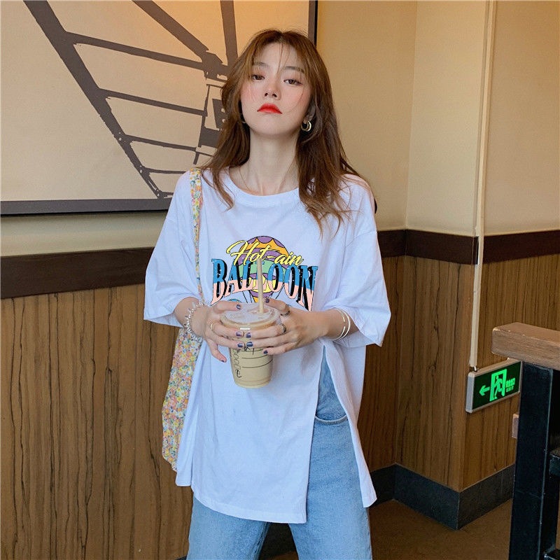 跨境批发女装短袖T恤女2025夏季新款侧边开叉宽松百搭休闲上衣潮