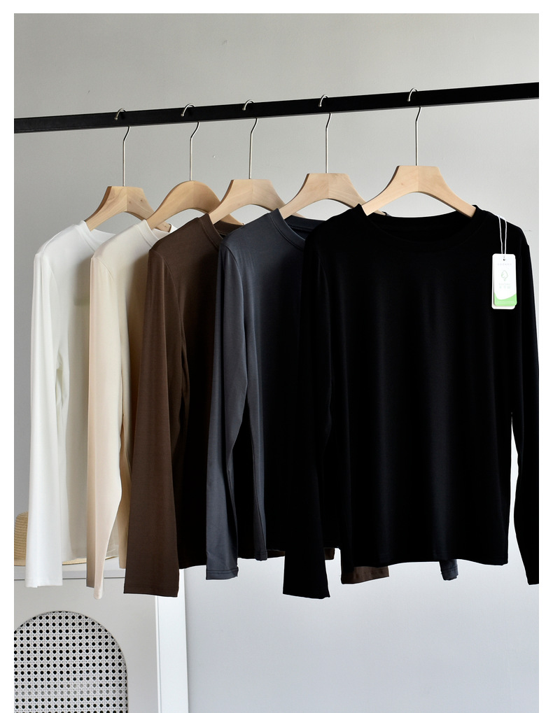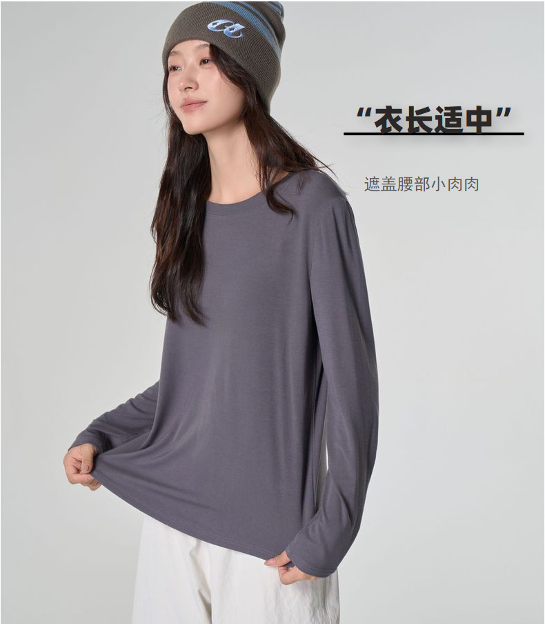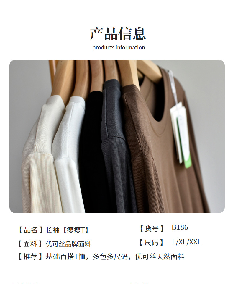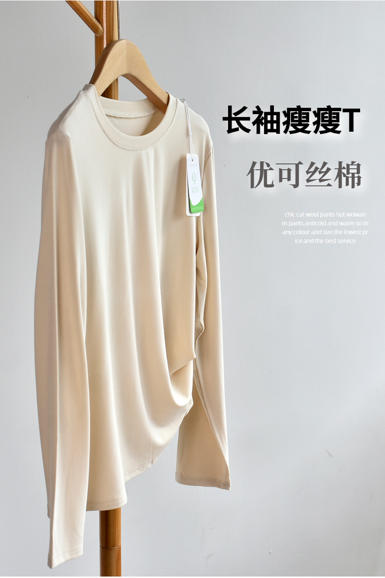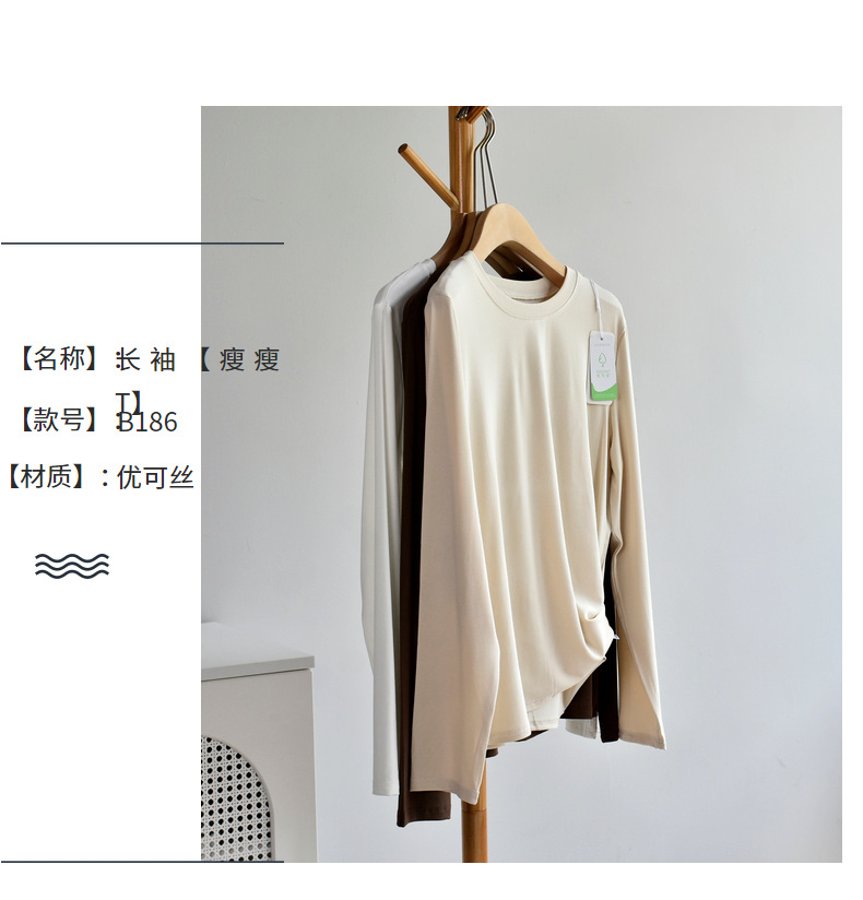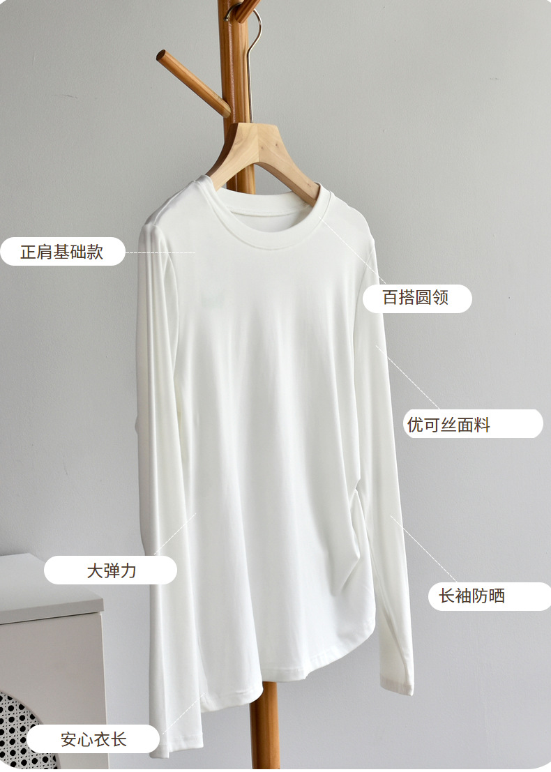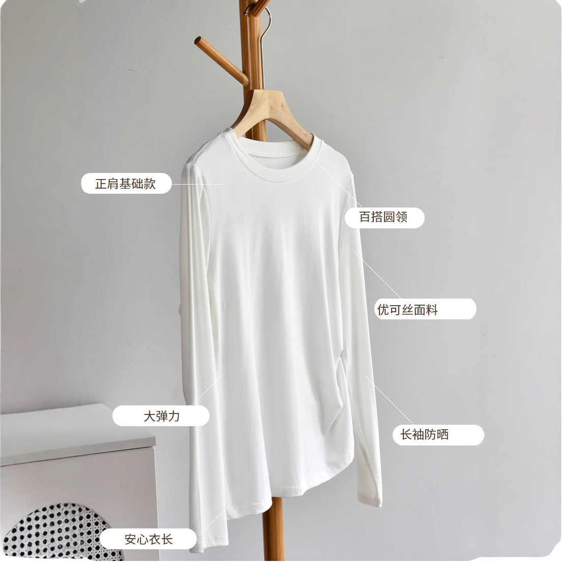 【长袖瘦瘦T】春季26新款女士圆领优可丝白色内搭长袖t恤打底衫女