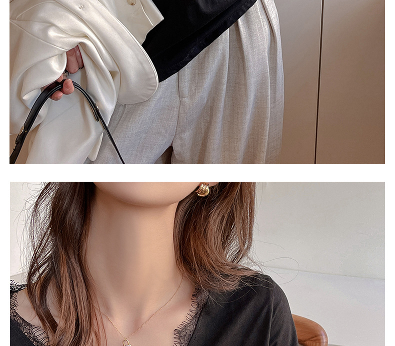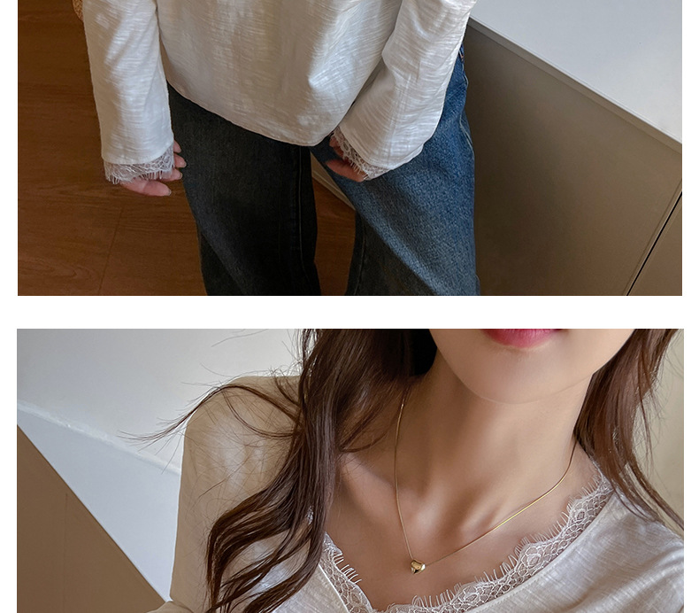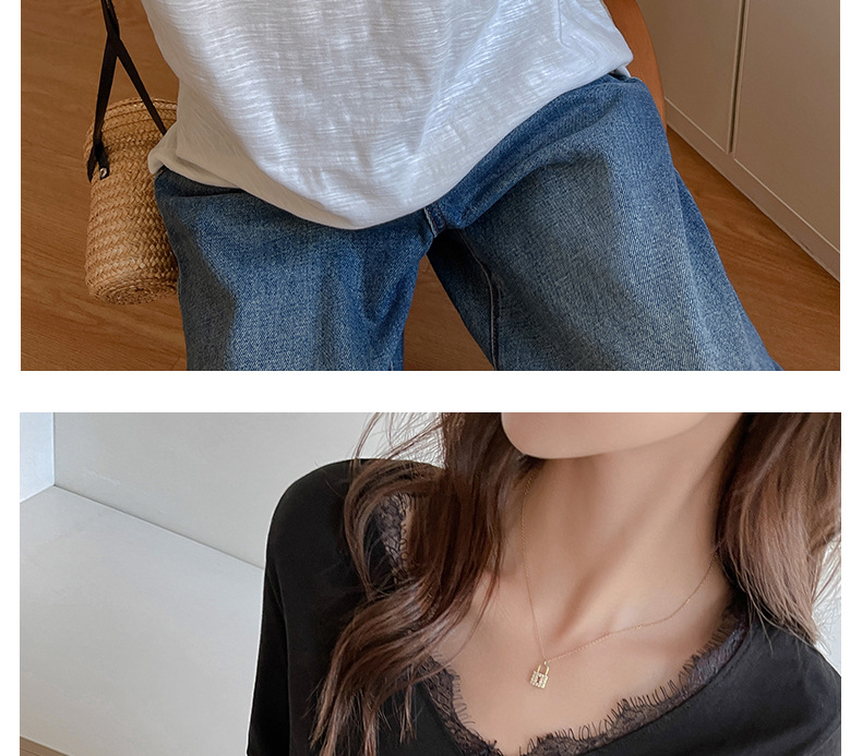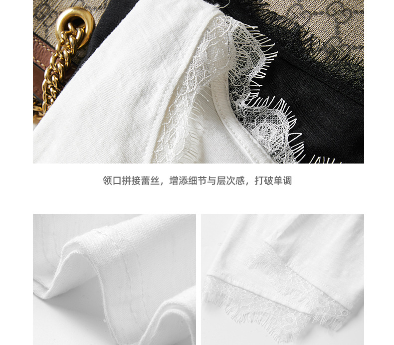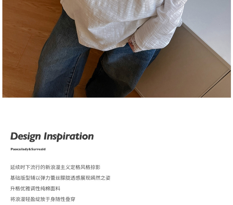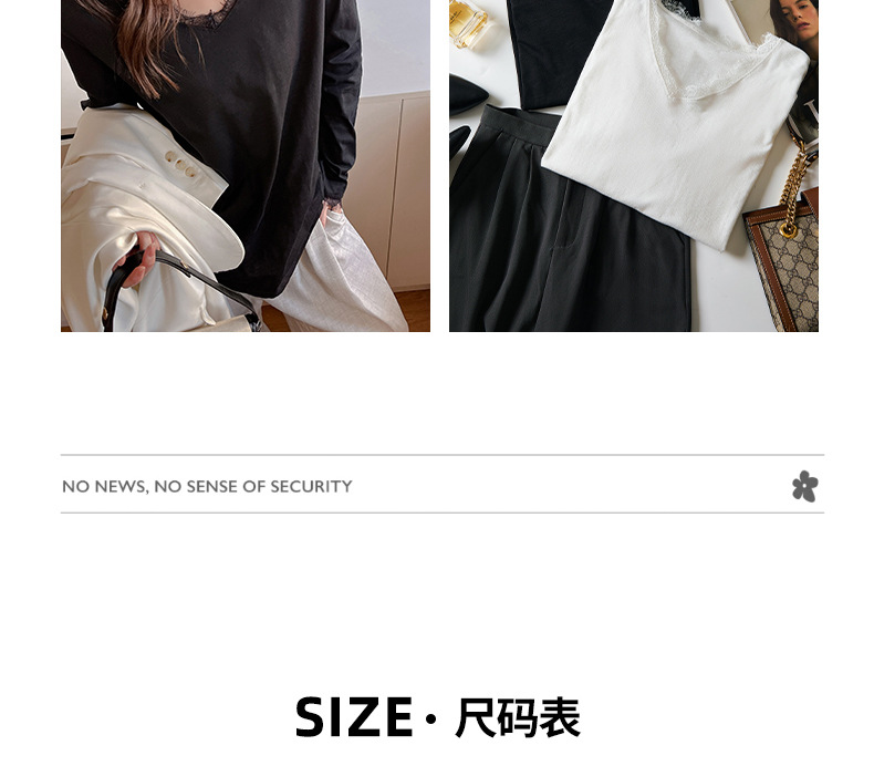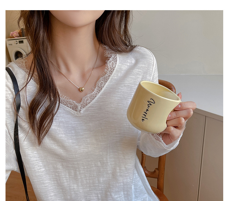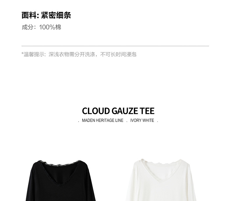 100%纯棉v领蕾丝宽松版正肩t恤女秋冬慵懒风高级感长袖打底衫上衣