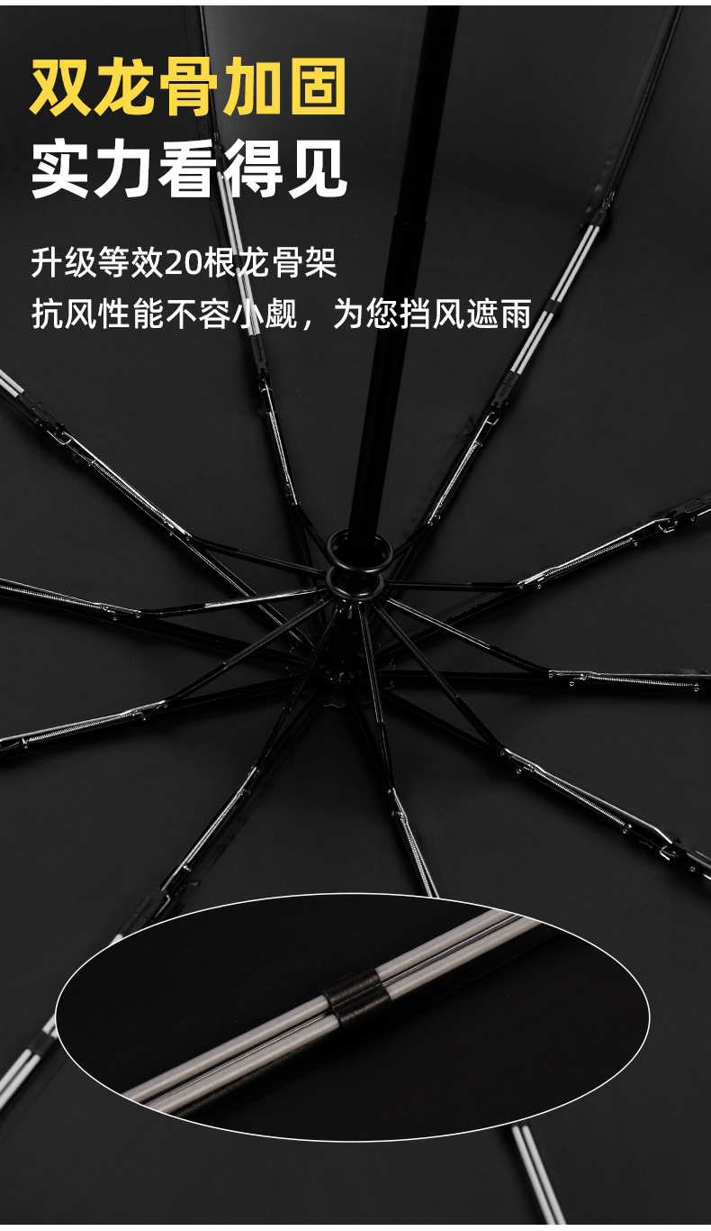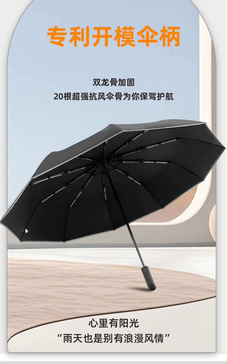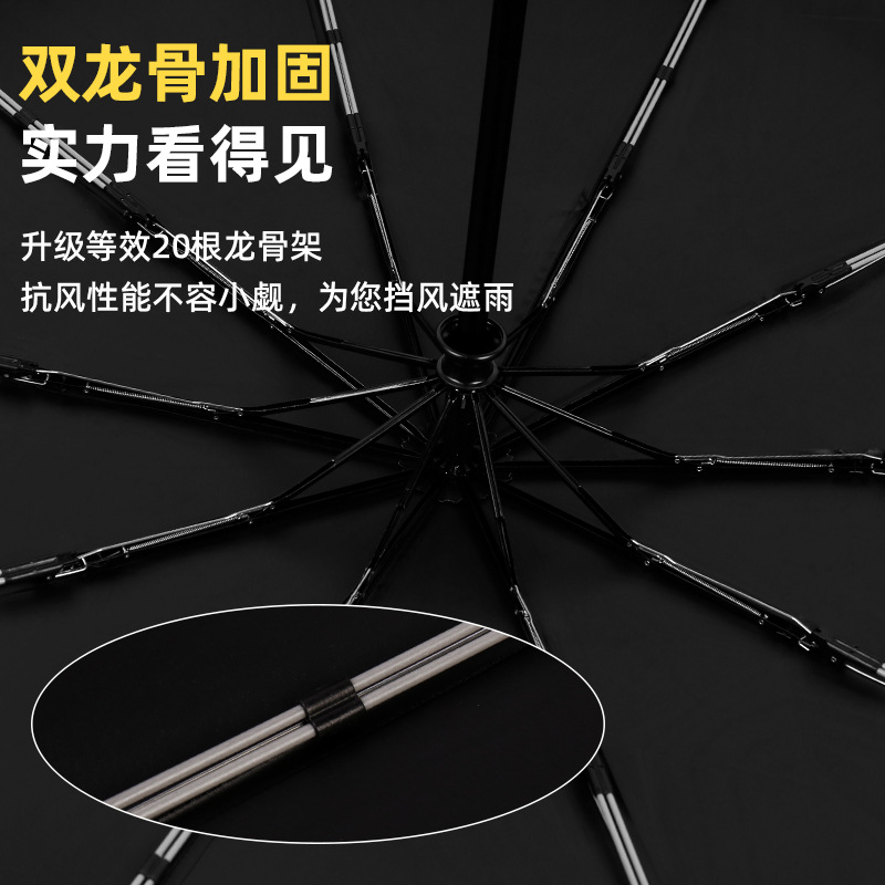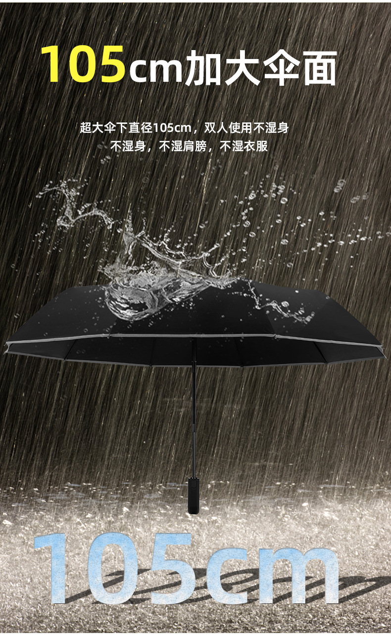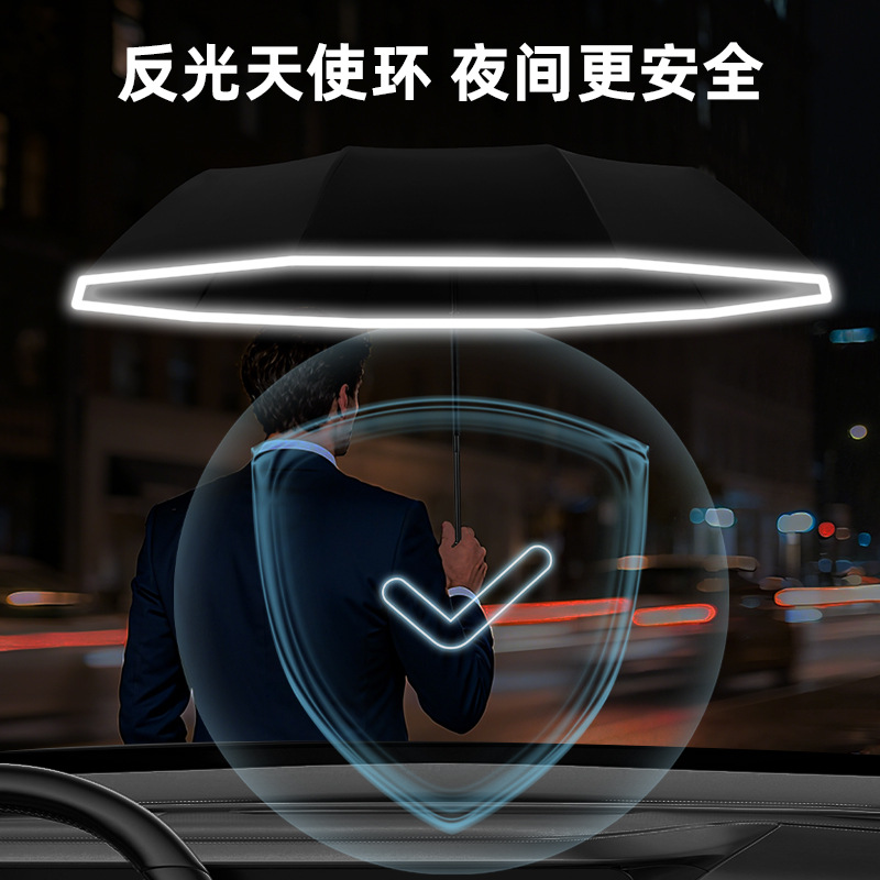 跨境专供10骨全自动雨伞包反光条黑胶防晒晴雨伞定制批发logo广告