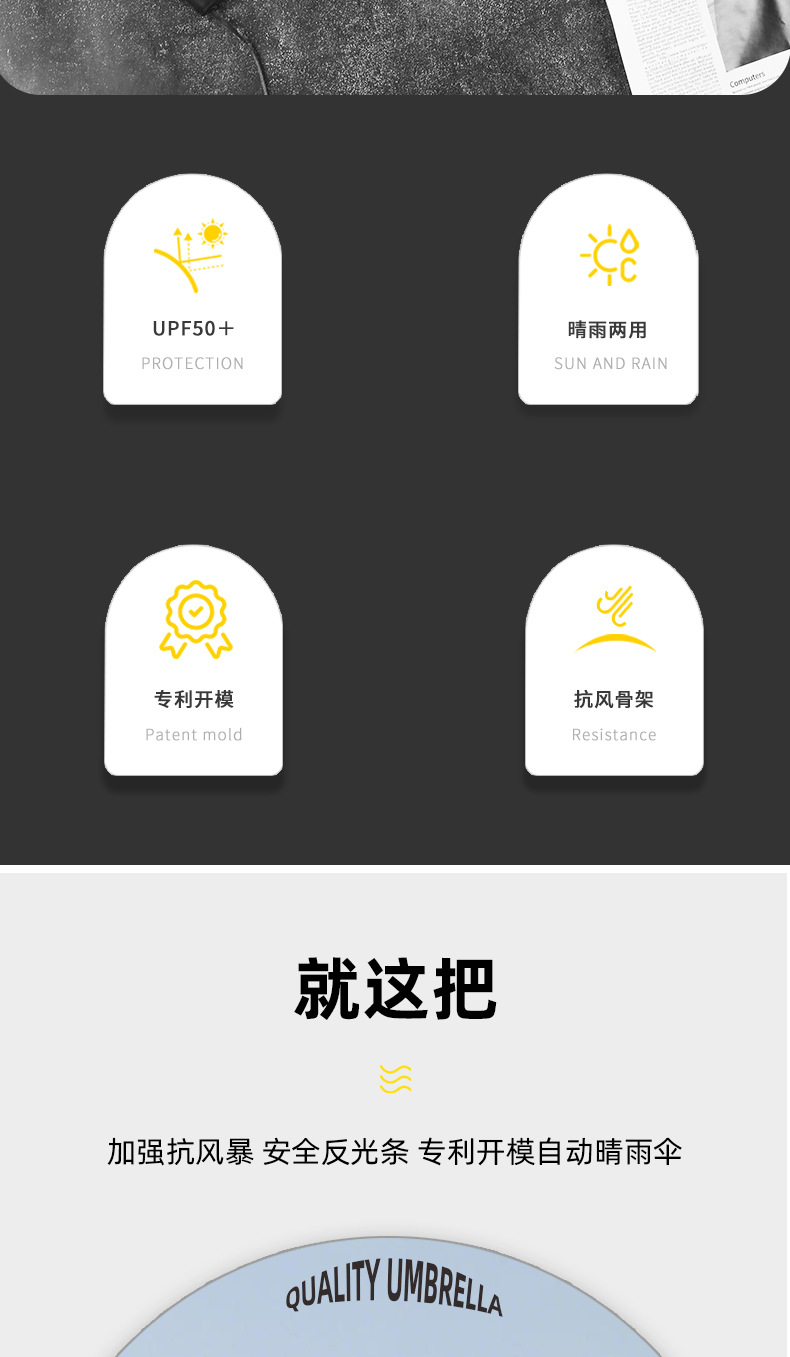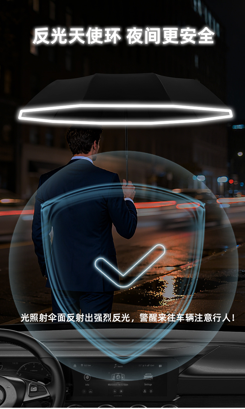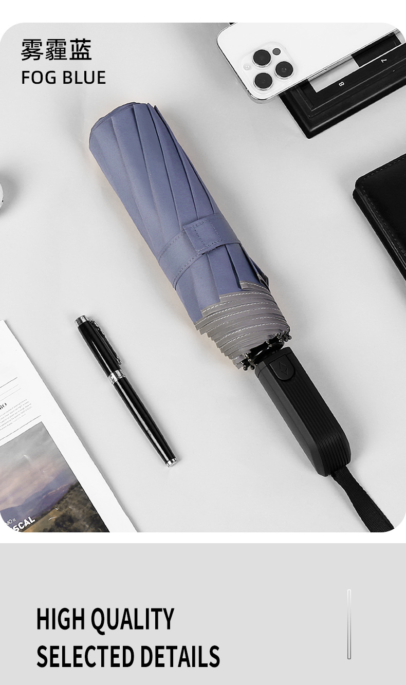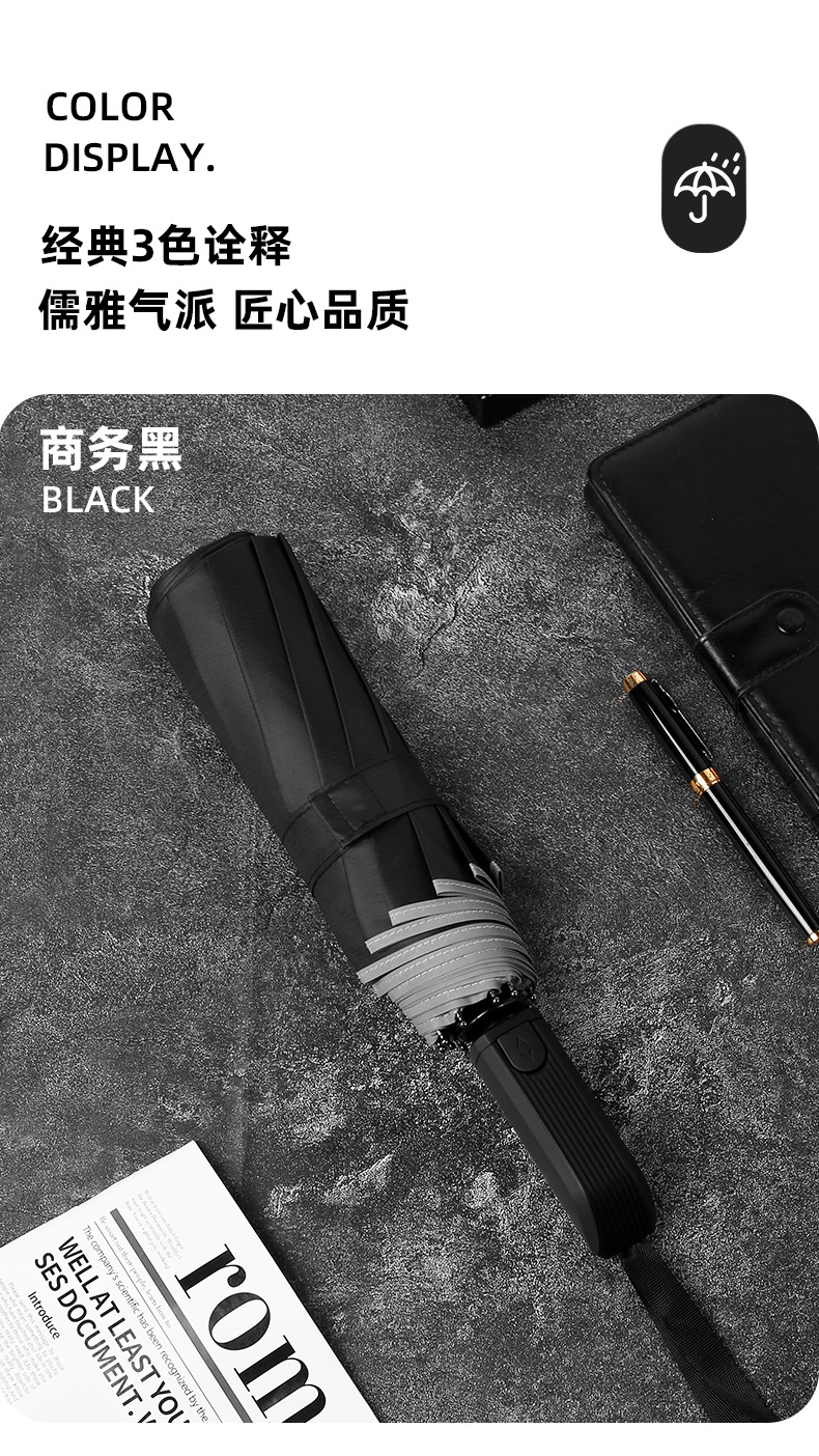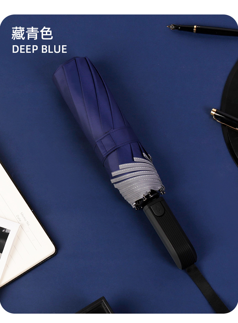 跨境专供10骨全自动雨伞包反光条黑胶防晒晴雨伞定制批发logo广告
