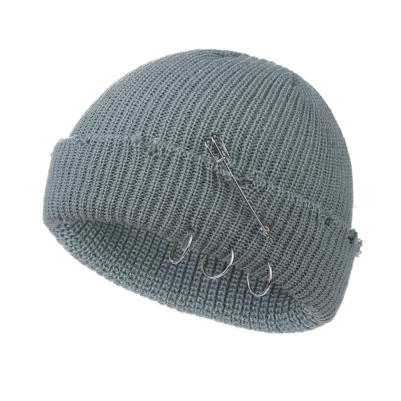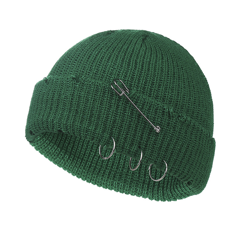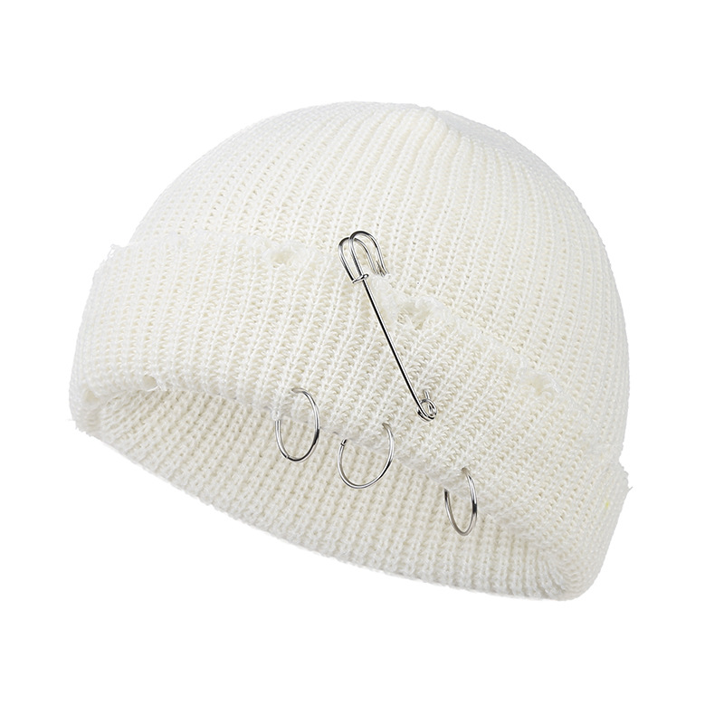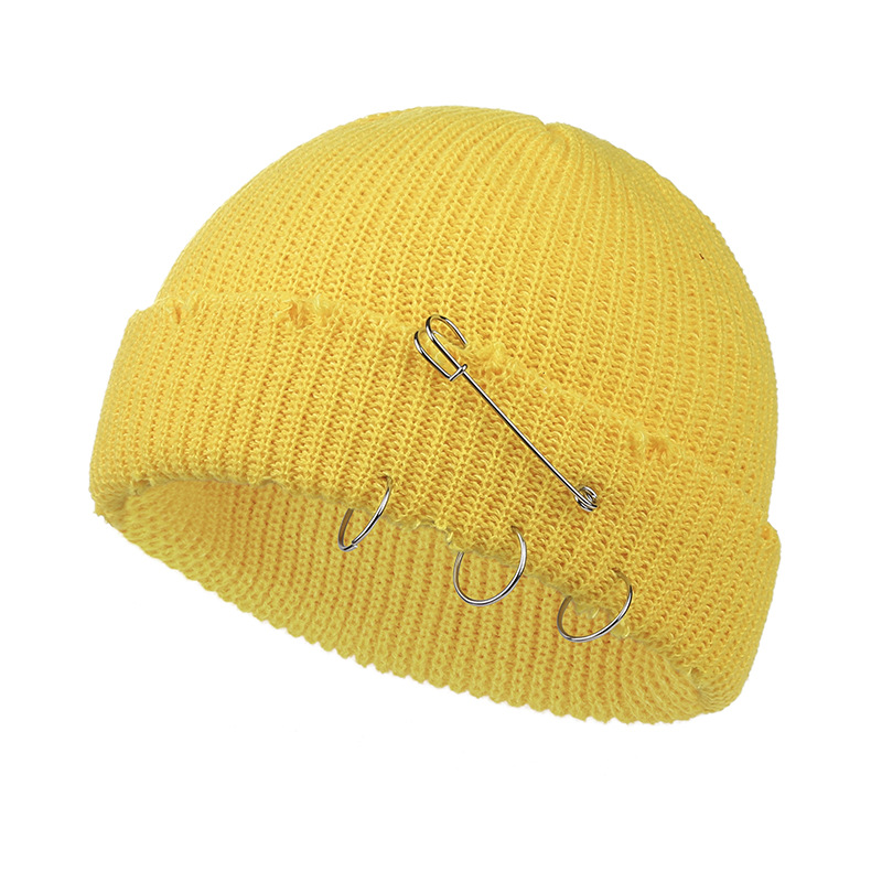 秋冬新款韩版欧美百搭基础款破洞别针冷帽针织毛线卷边帽男女