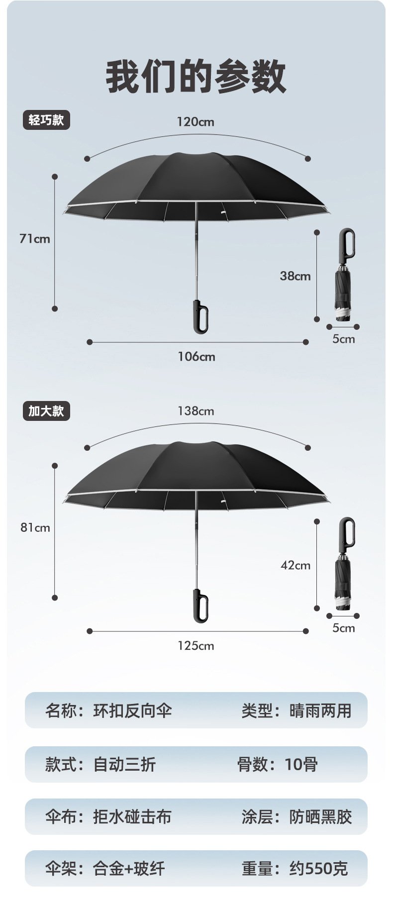 环扣全自动反向晴雨两用防晒防紫外线折叠雨伞女高级感遮阳太阳伞