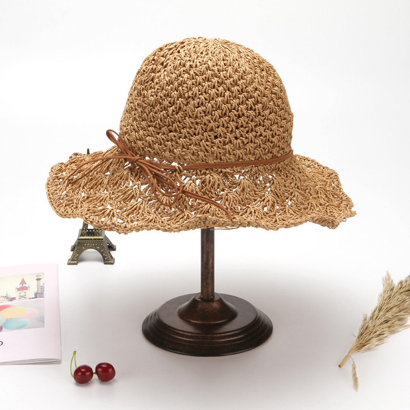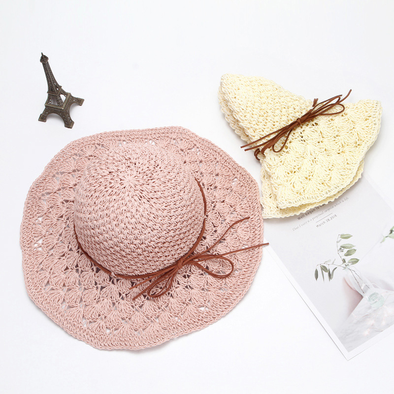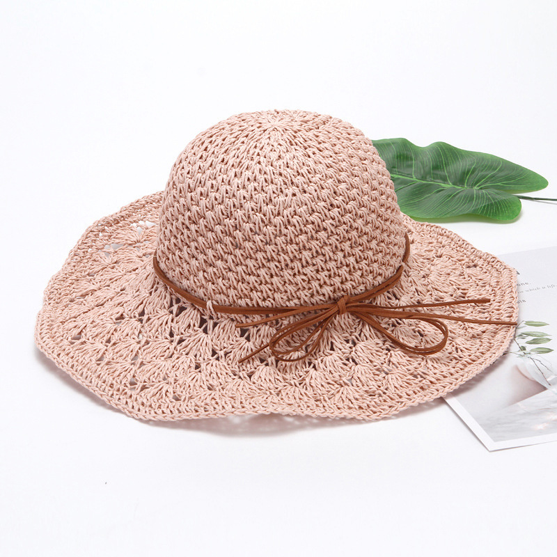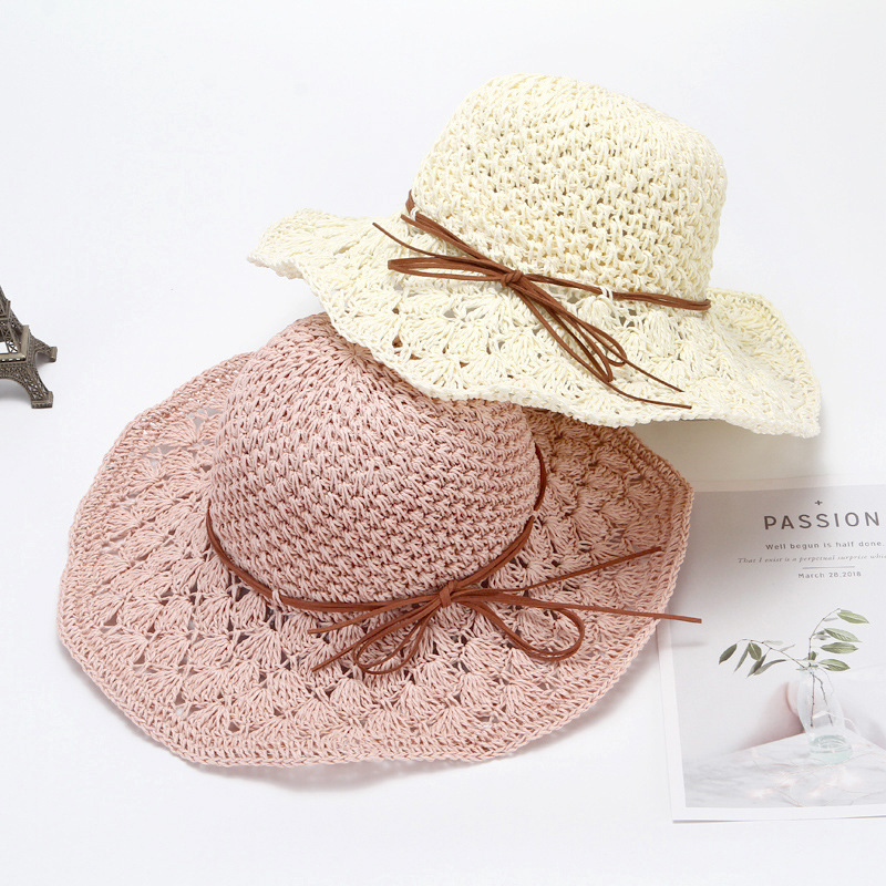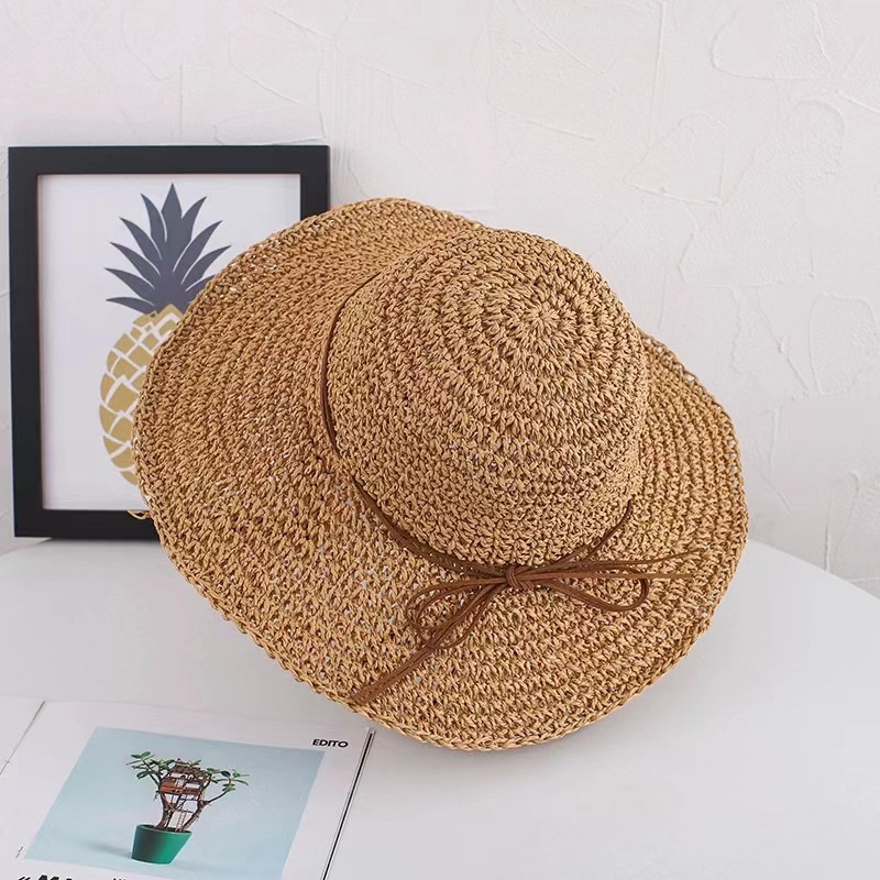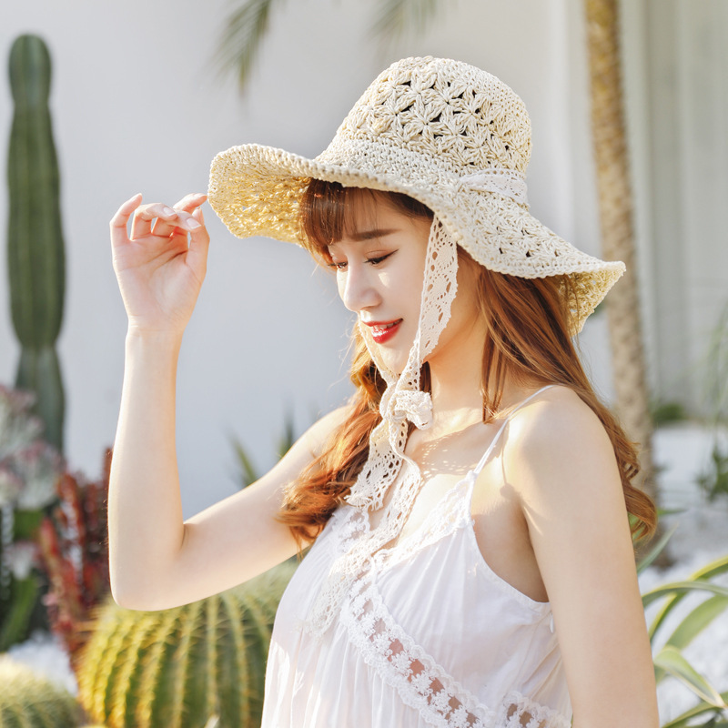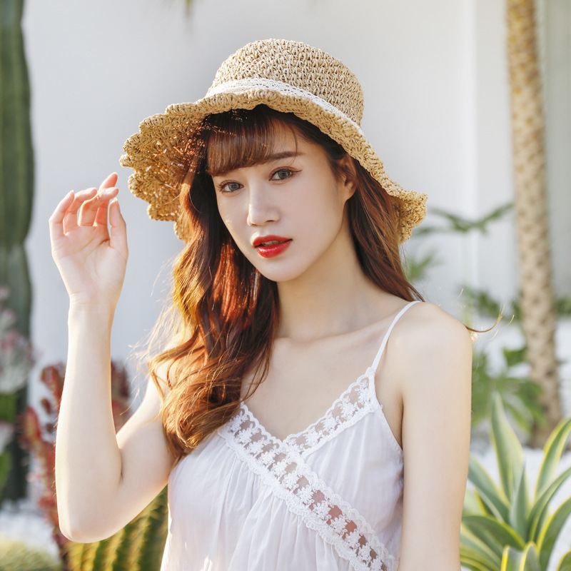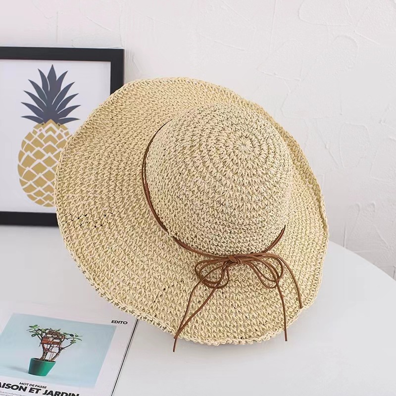 草帽女春夏天韩版百搭小清新可折叠手工大沿帽海边沙滩防晒遮阳帽