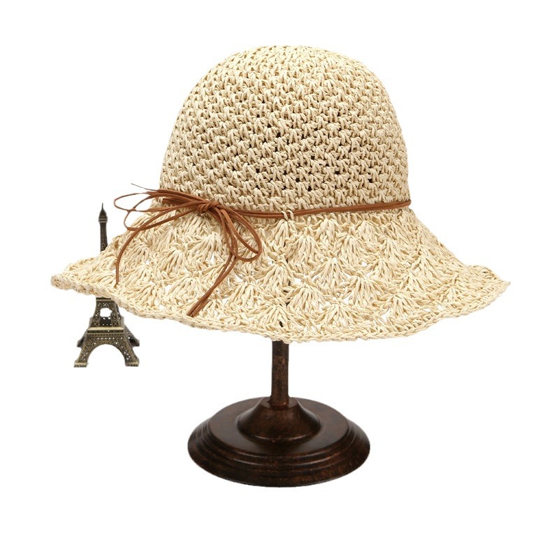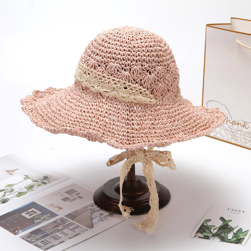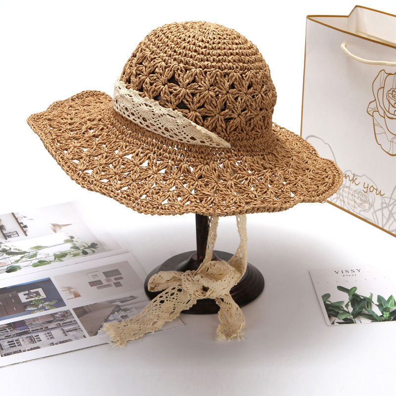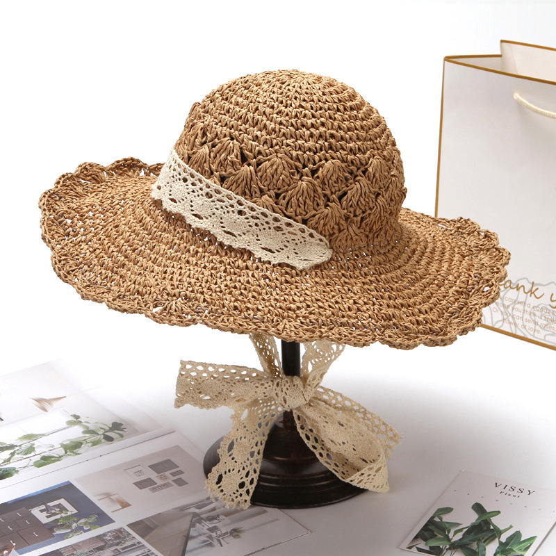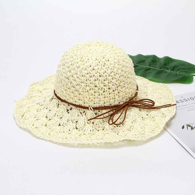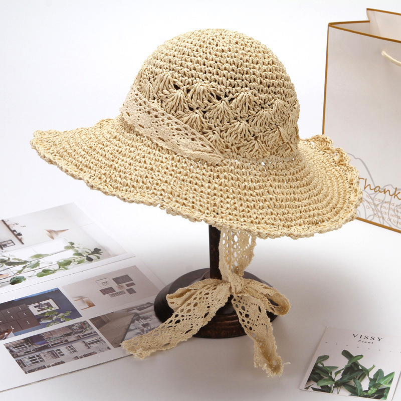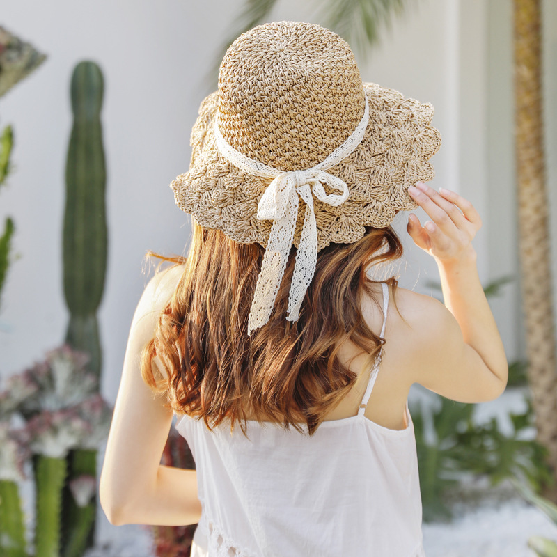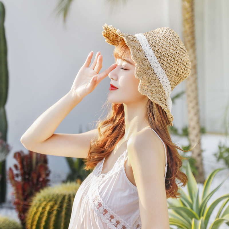 草帽女春夏天韩版百搭小清新可折叠手工大沿帽海边沙滩防晒遮阳帽