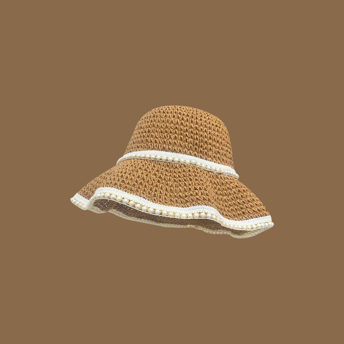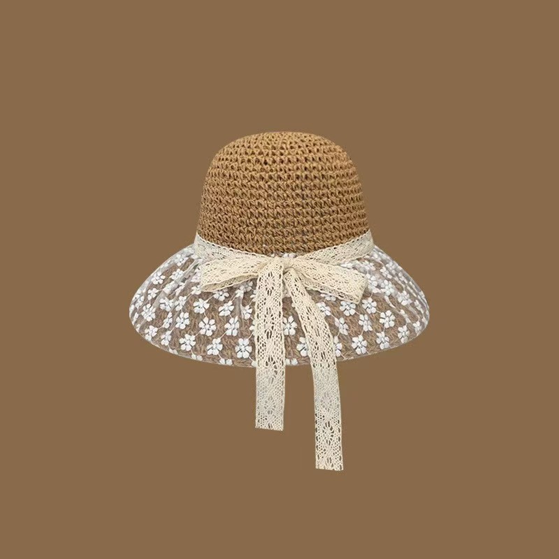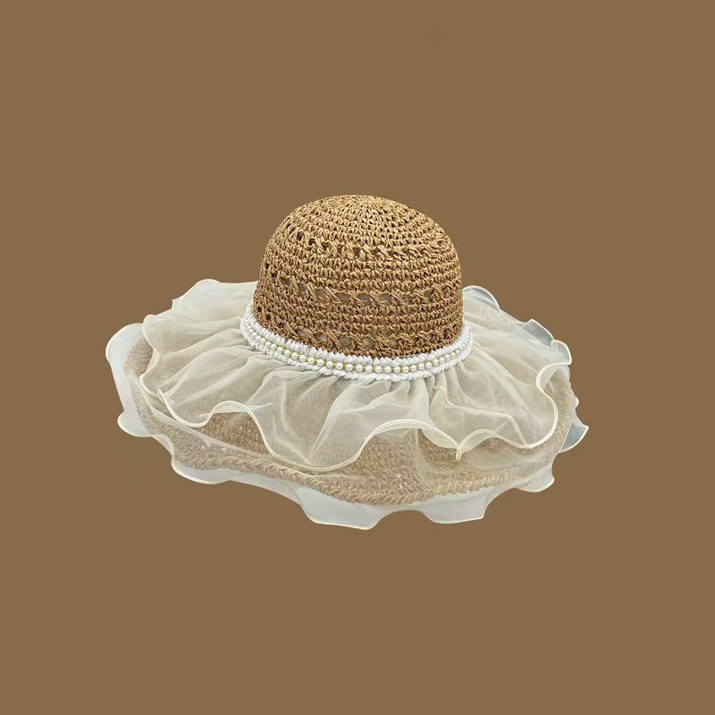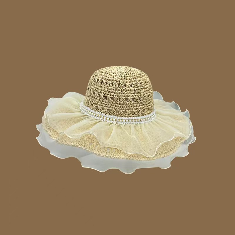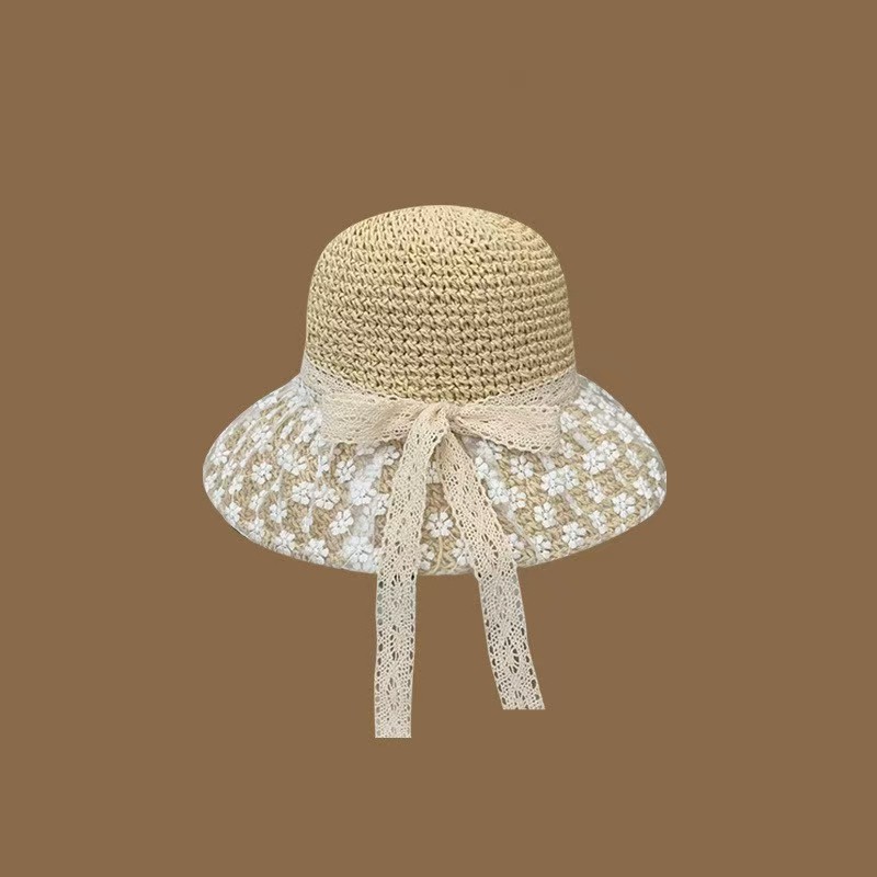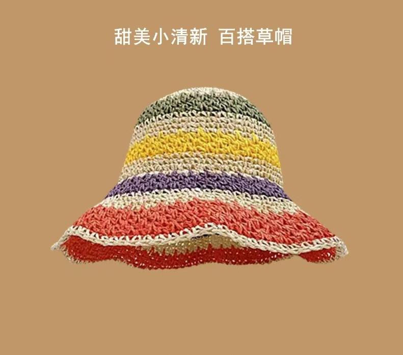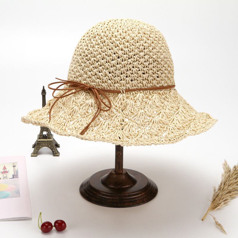 草帽女春夏天韩版百搭小清新可折叠手工大沿帽海边沙滩防晒遮阳帽