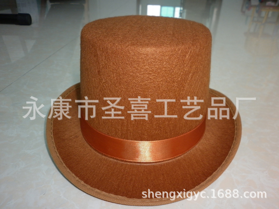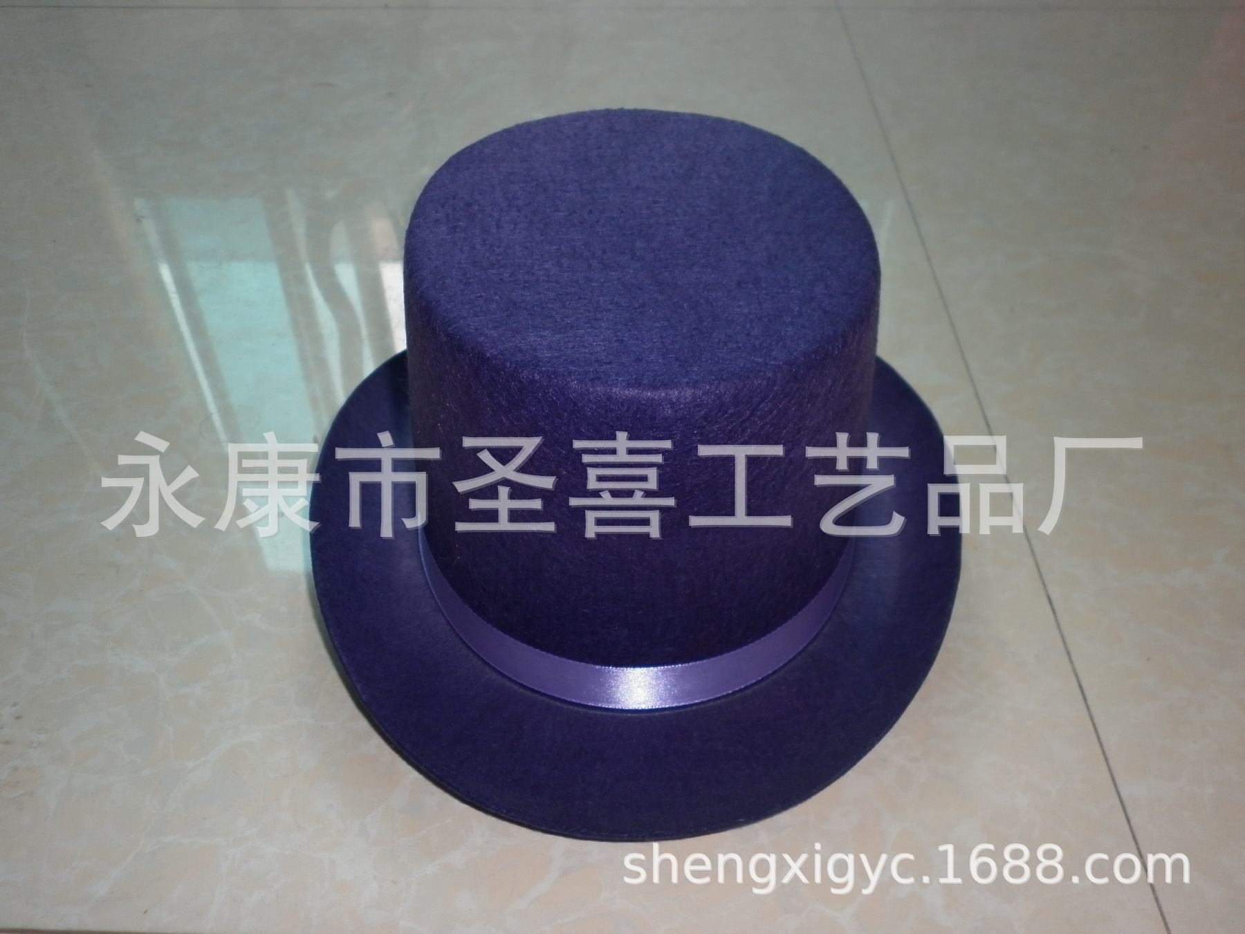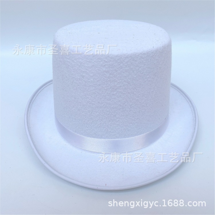 供应红黑白色无纺布涤纶毛毡魔术师高顶礼帽子仿羊毛材质料定型帽