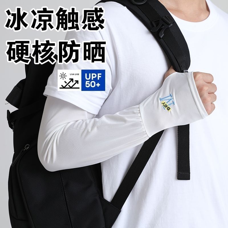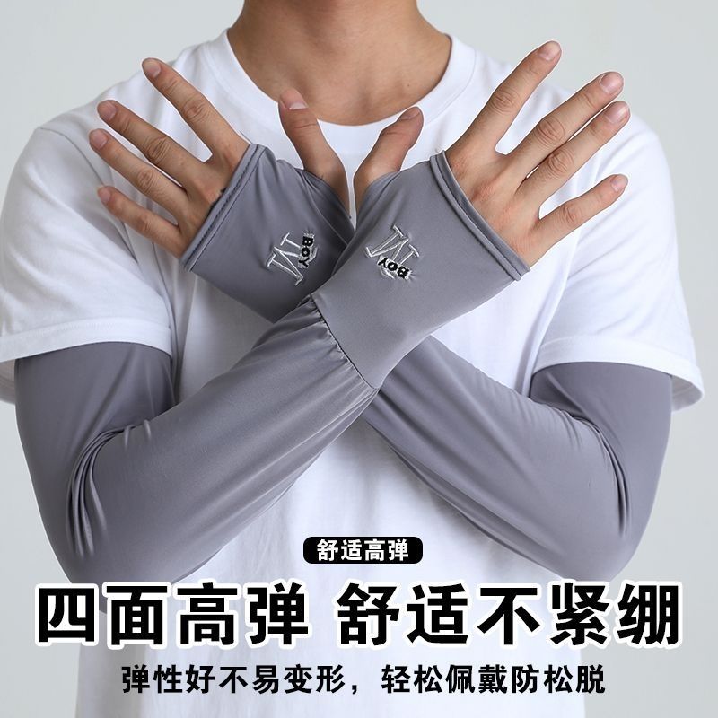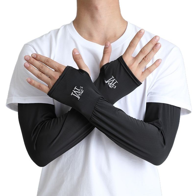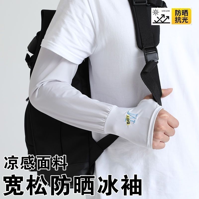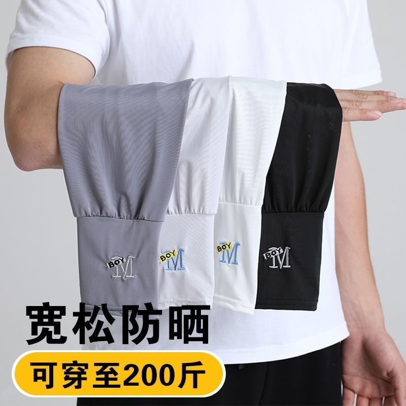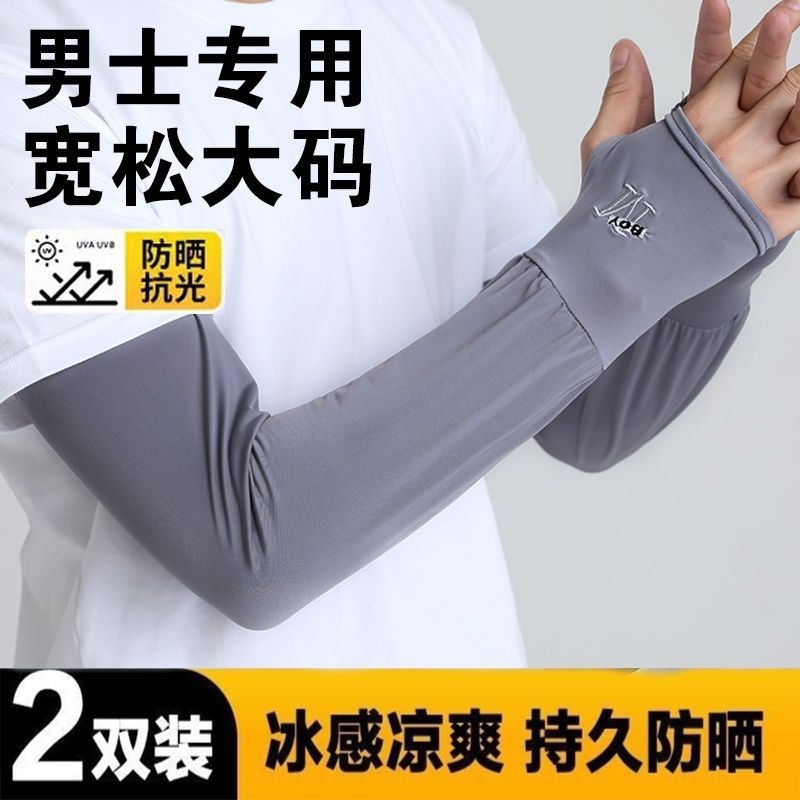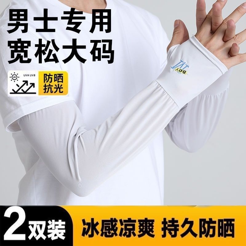 男士冰袖宽松加大透气夏季户外骑行开车防晒护臂套袖冰丝防晒袖套