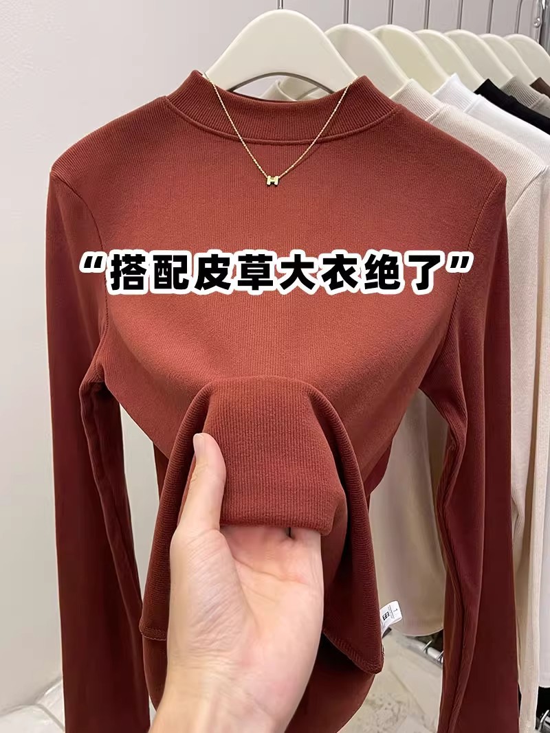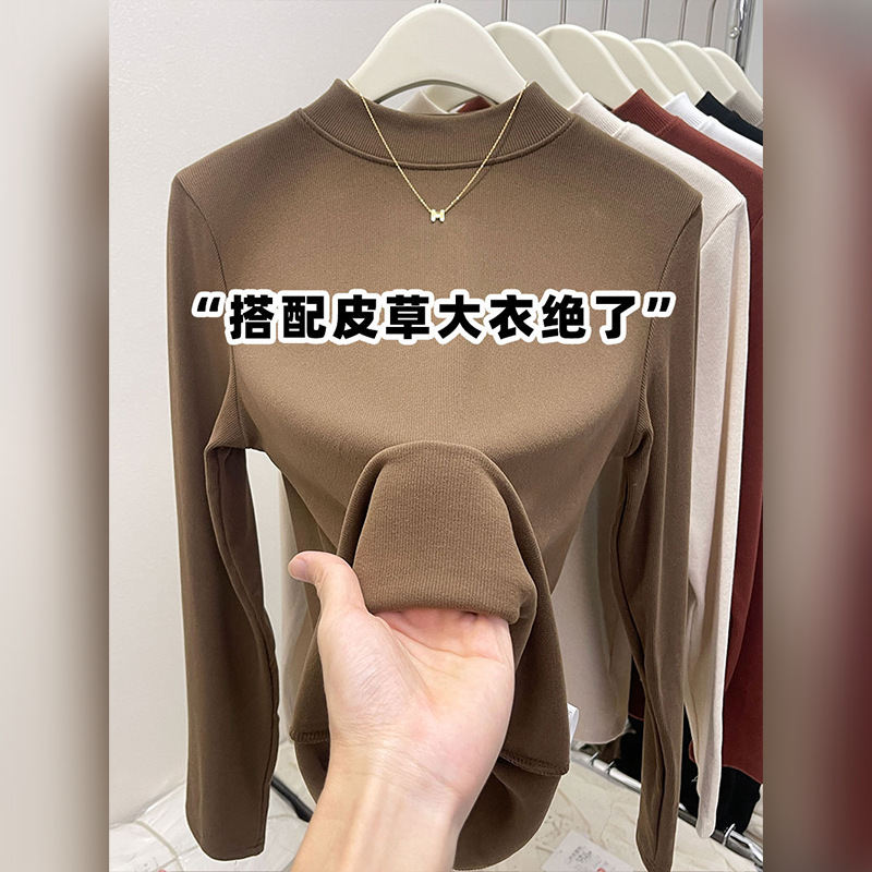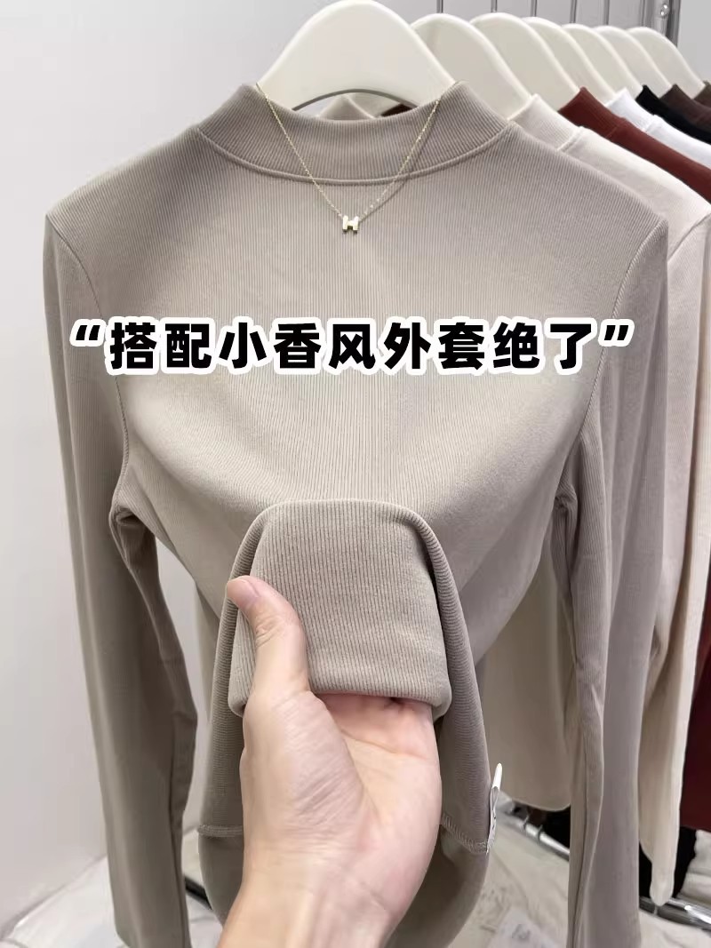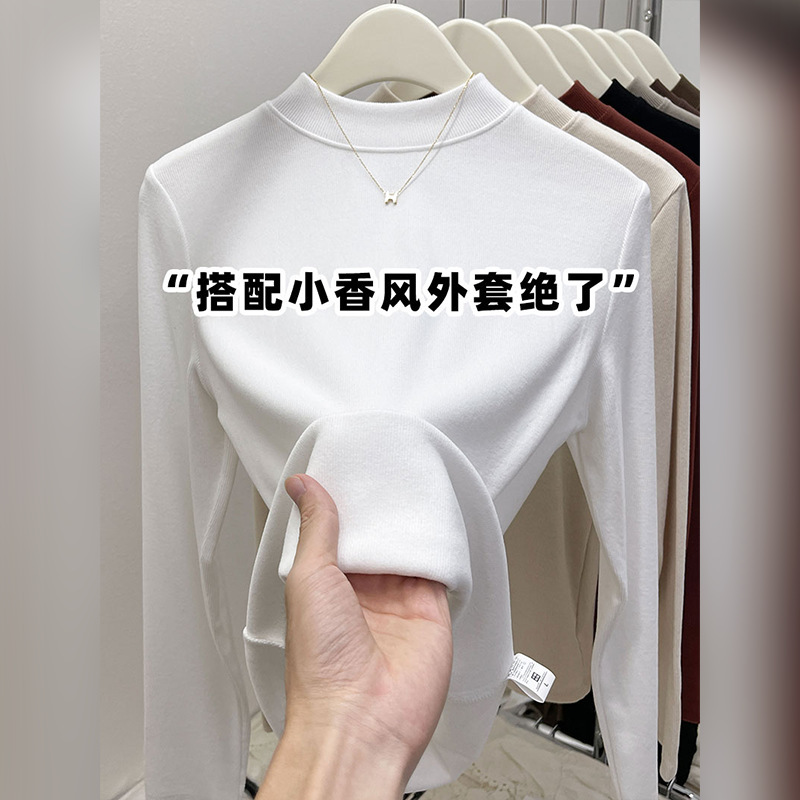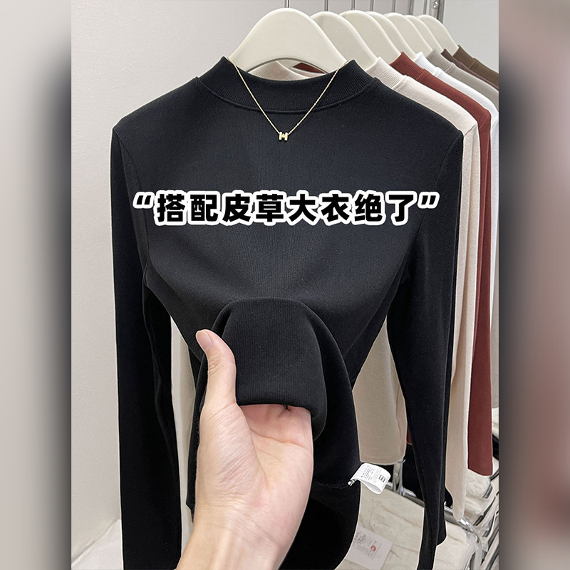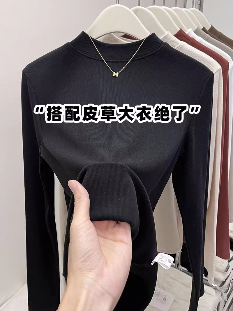 纯色半高领磨毛保暖内搭打底衫女秋冬新款百搭显瘦气质上衣t恤