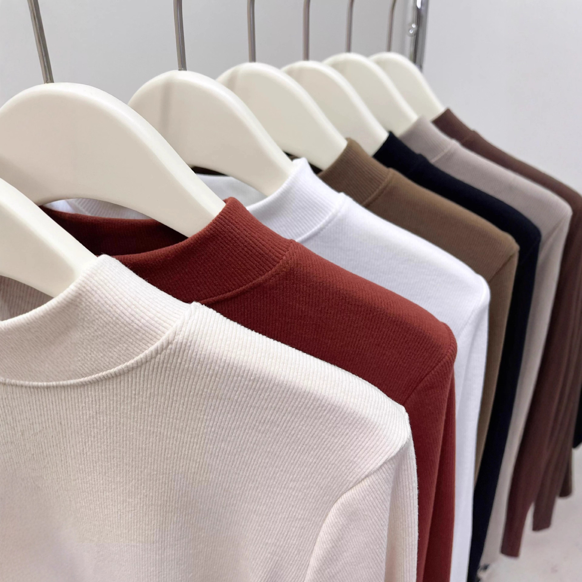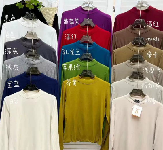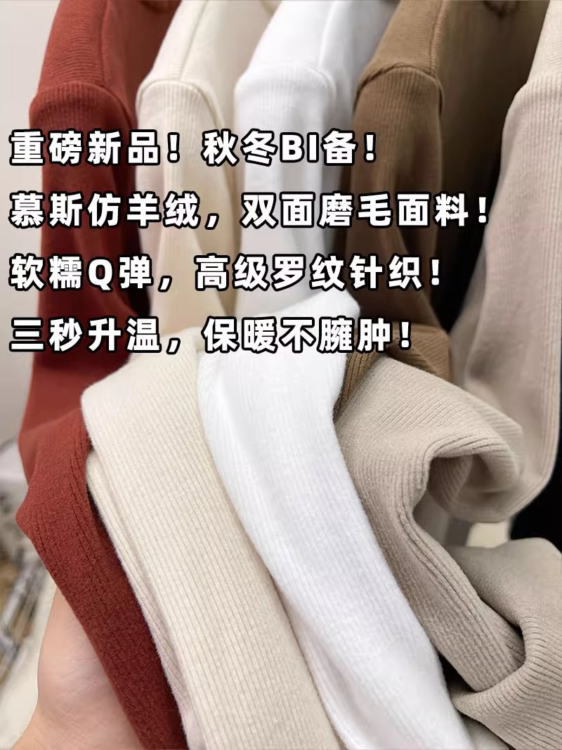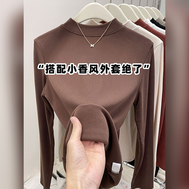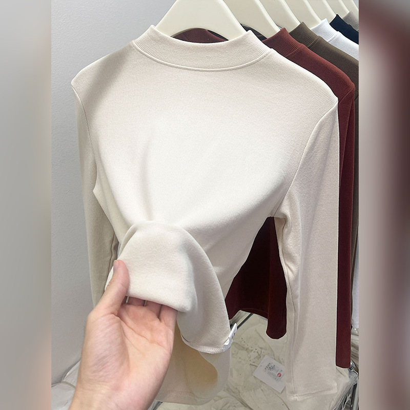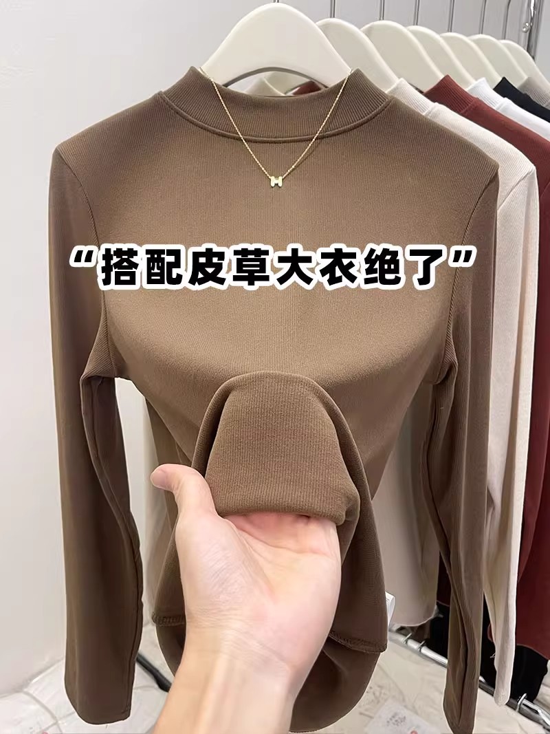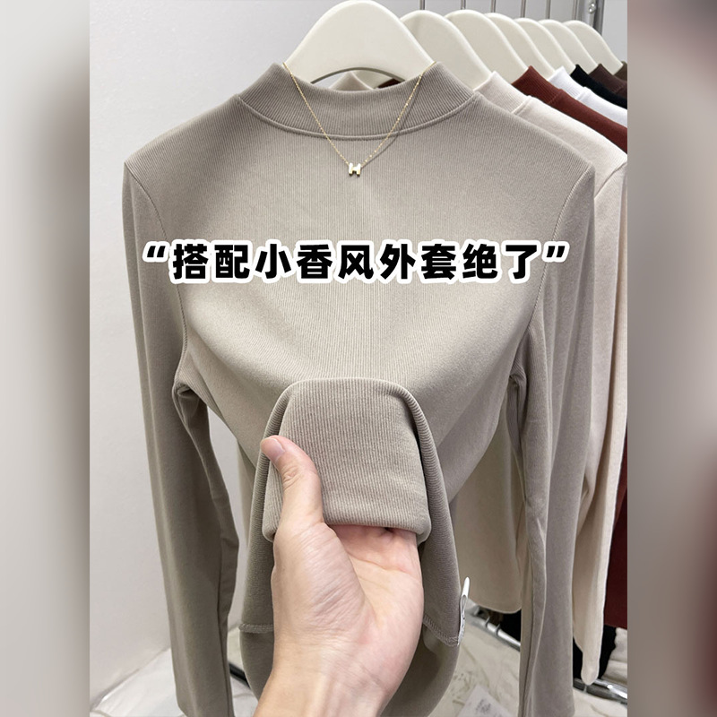 纯色半高领磨毛保暖内搭打底衫女秋冬新款百搭显瘦气质上衣t恤
