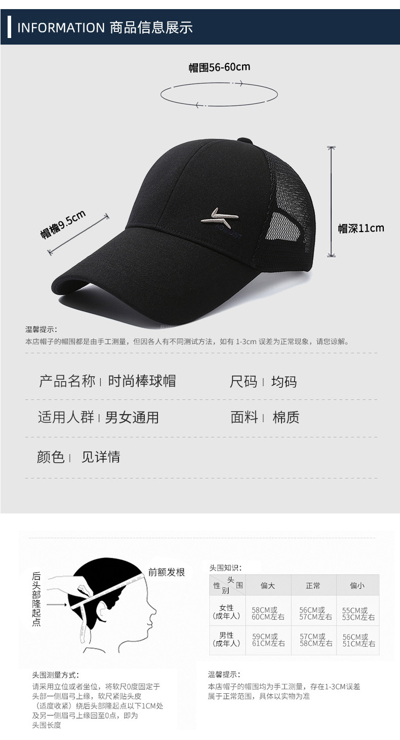 帽子男士户外出游大檐网帽防晒遮阳透气棒球帽时尚休闲百搭鸭舌帽