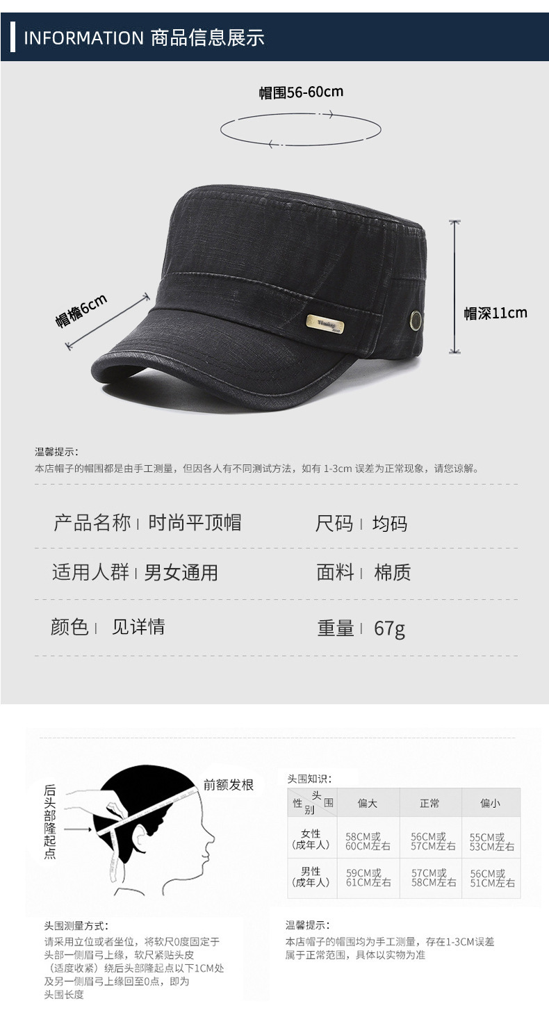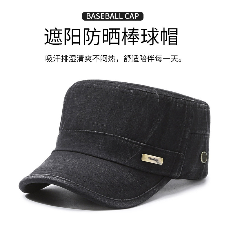 新款平顶帽水洗做旧平顶帽遮阳防晒帽春秋休闲男女潮流帽子批发