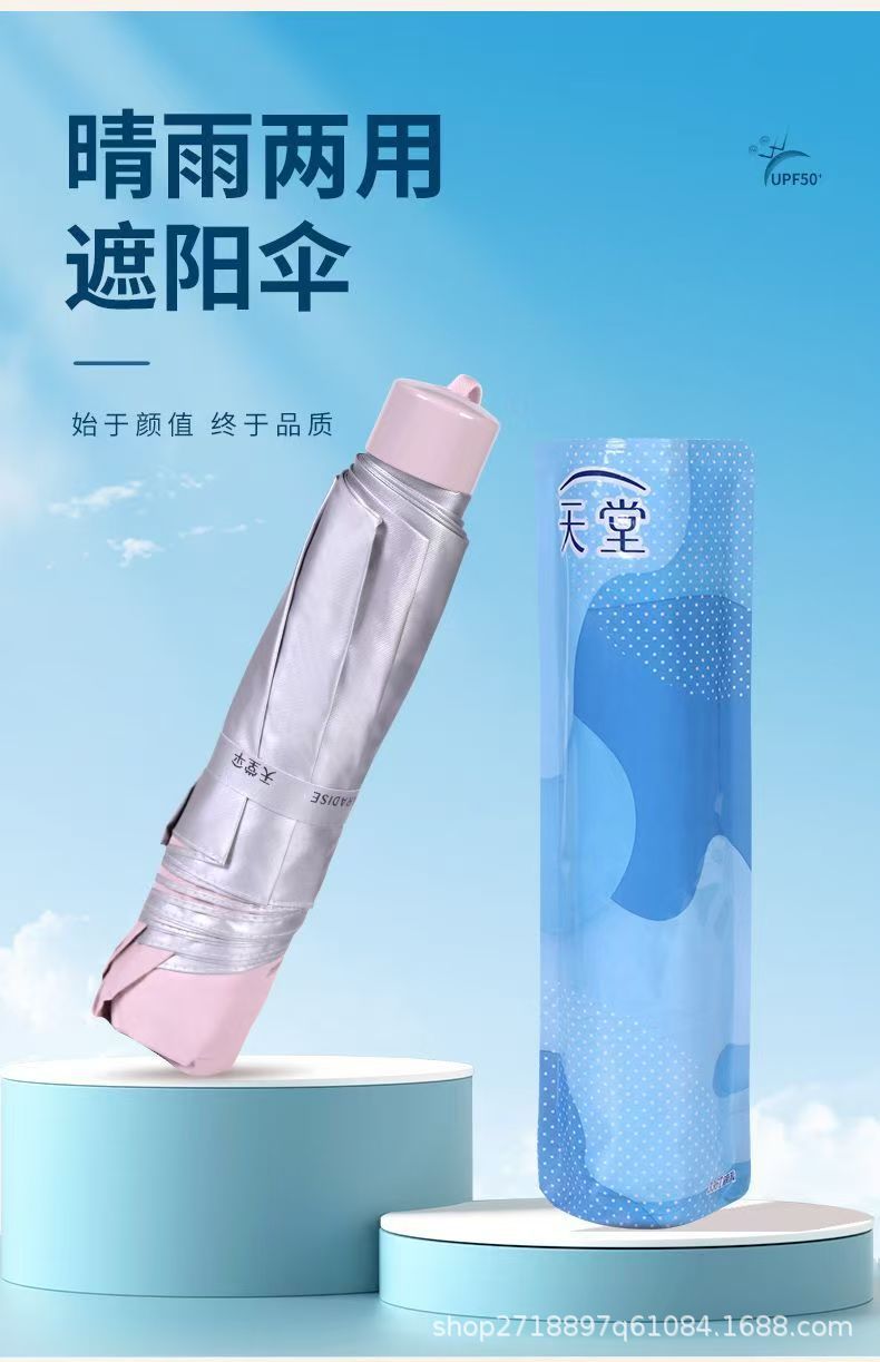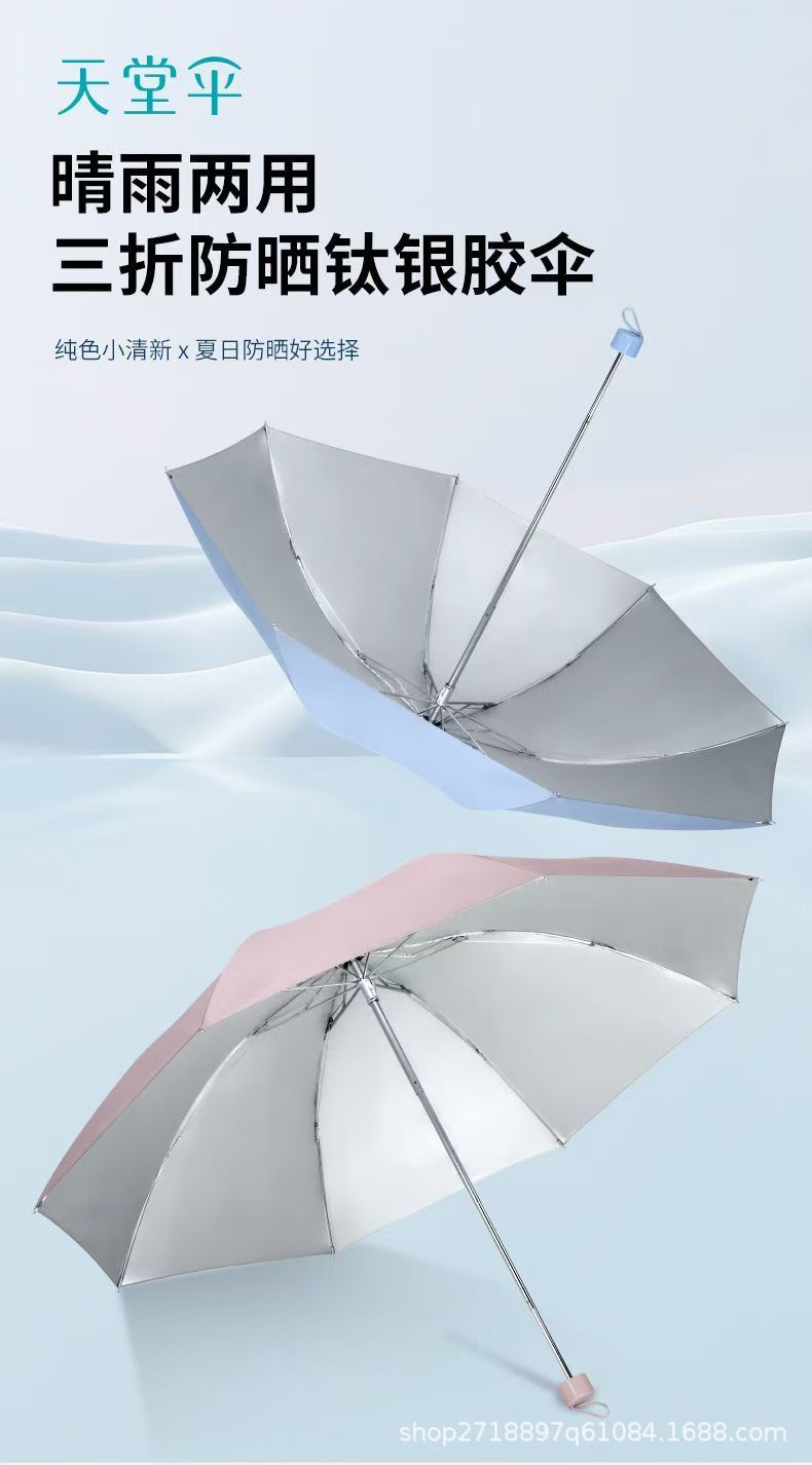 天堂伞336T银胶礼品伞8K折叠伞防晒防紫外线晴雨伞短柄纯色三