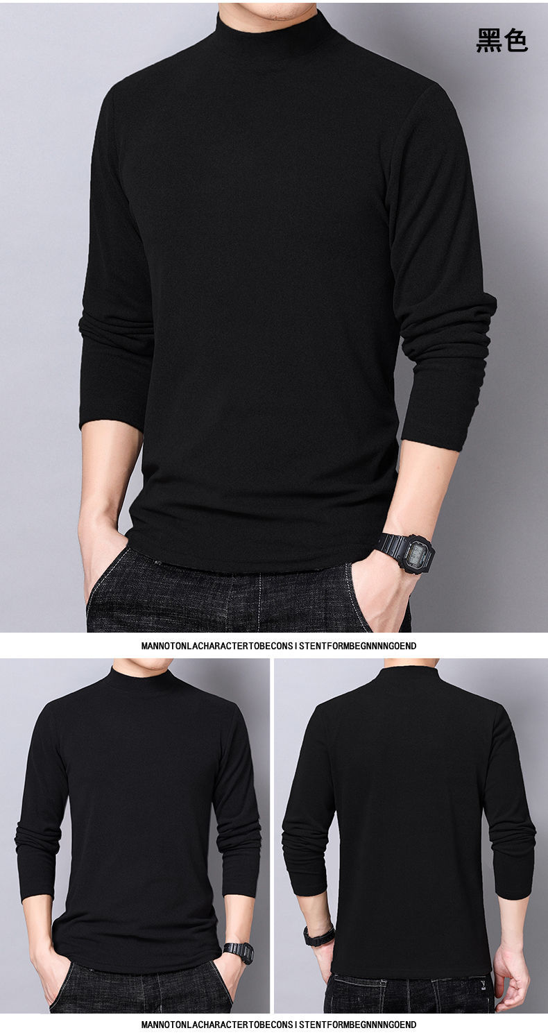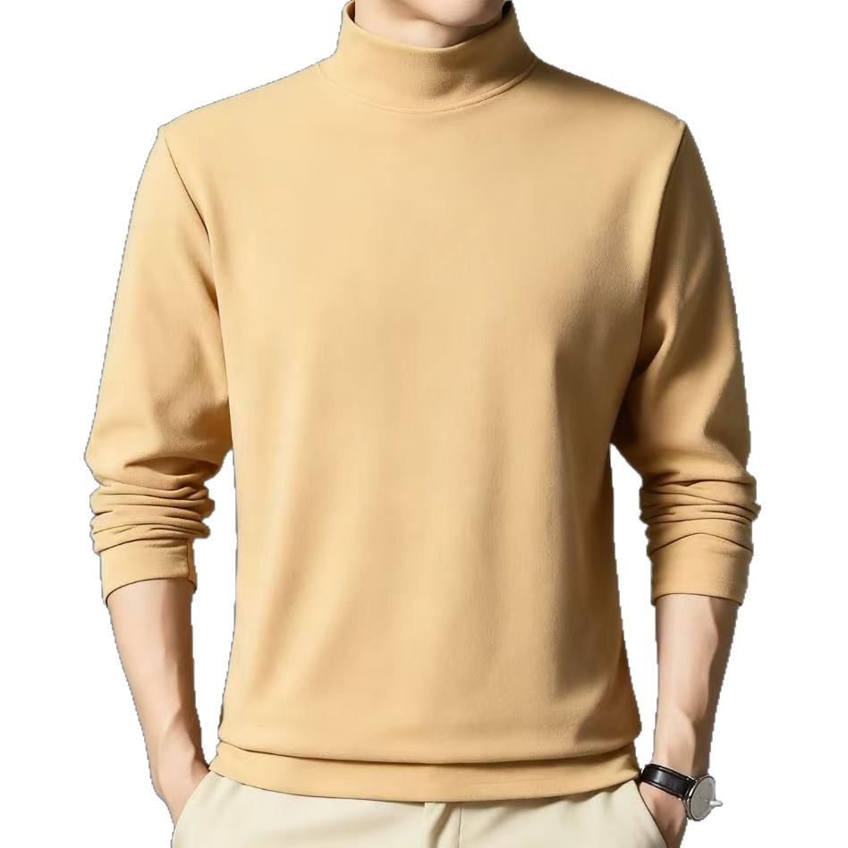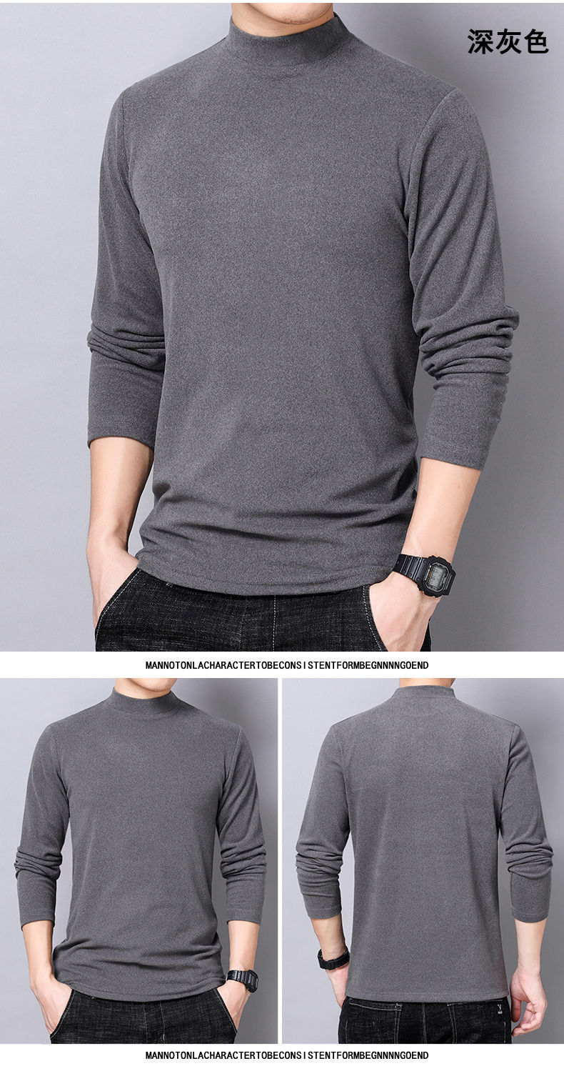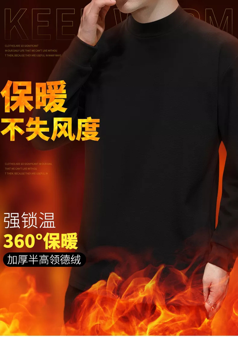 哇噢快返半高领德绒长袖t恤男士春秋季双面绒卫衣纯色上衣打底衫