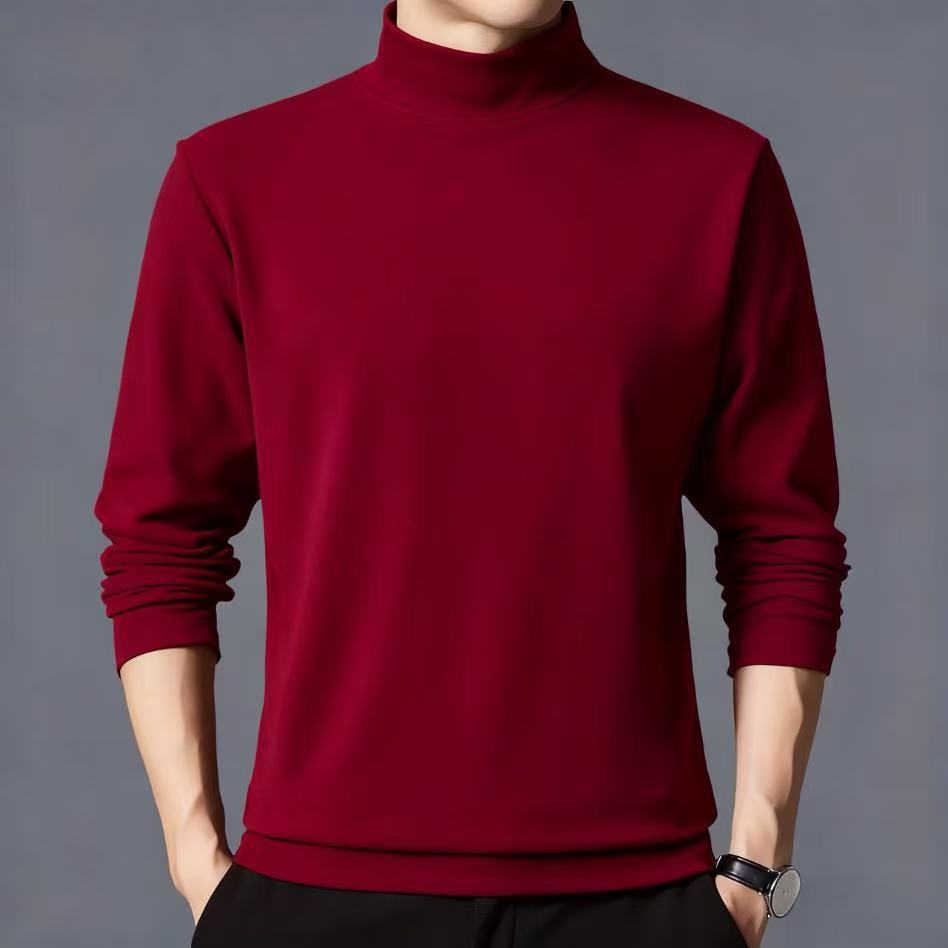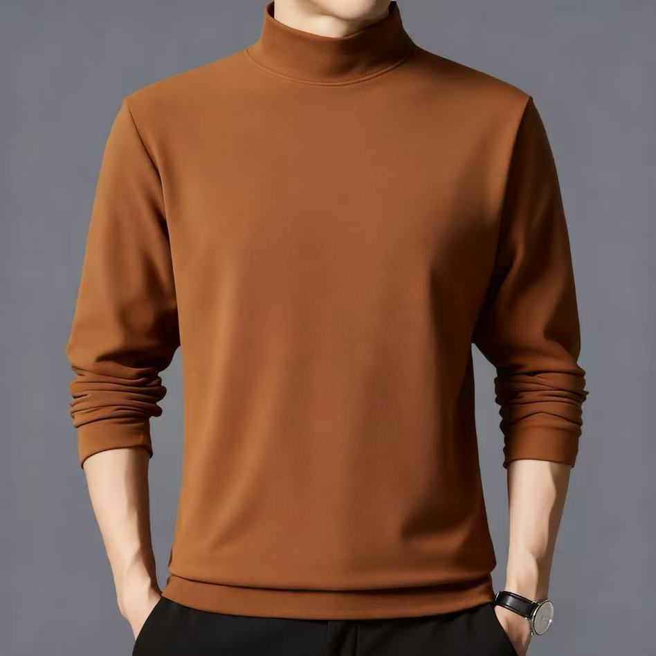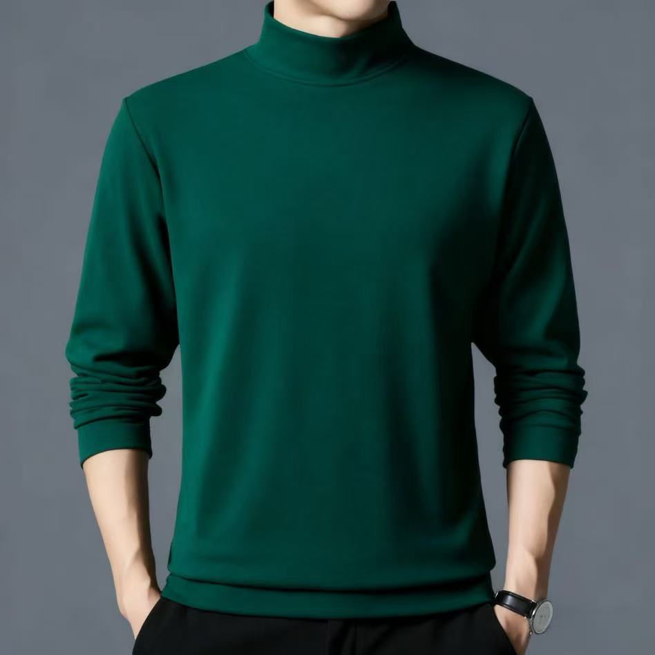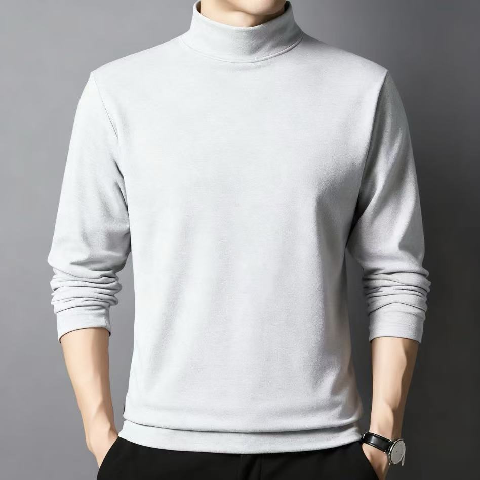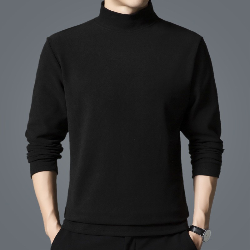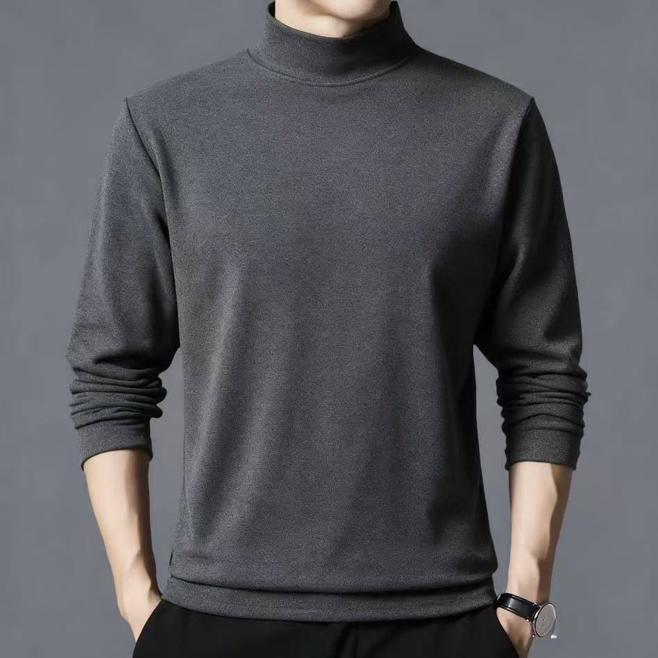 哇噢快返半高领德绒长袖t恤男士春秋季双面绒卫衣纯色上衣打底衫