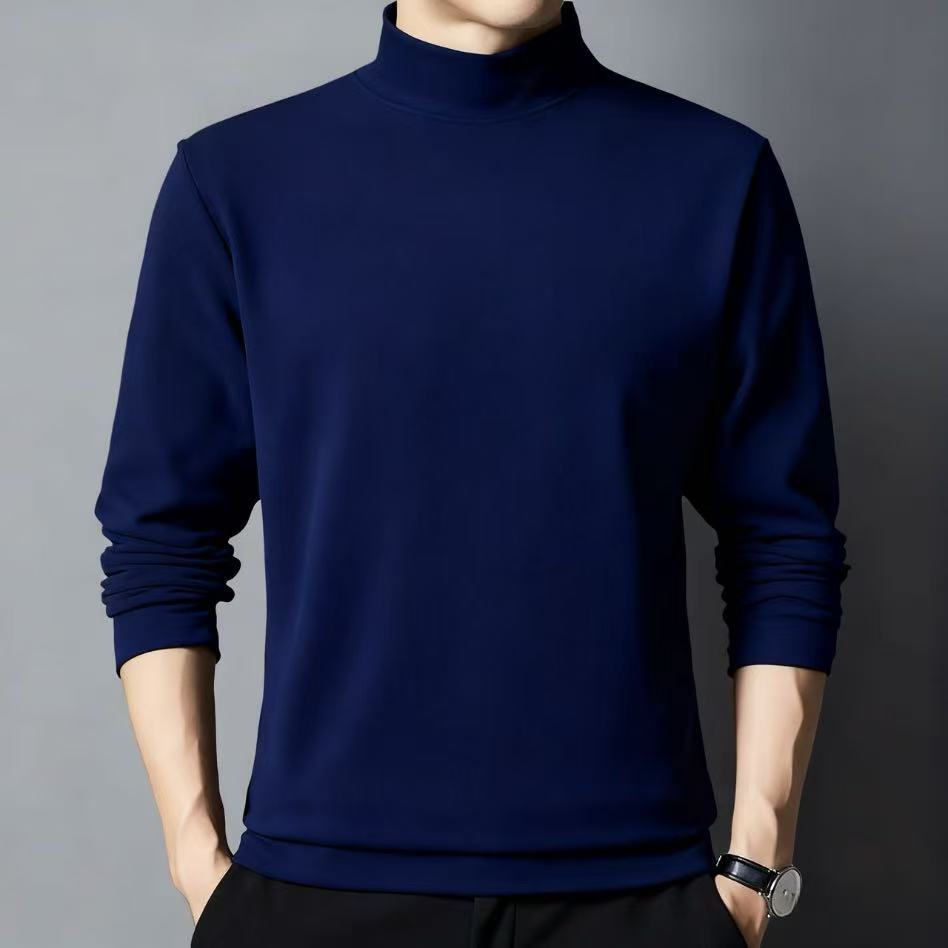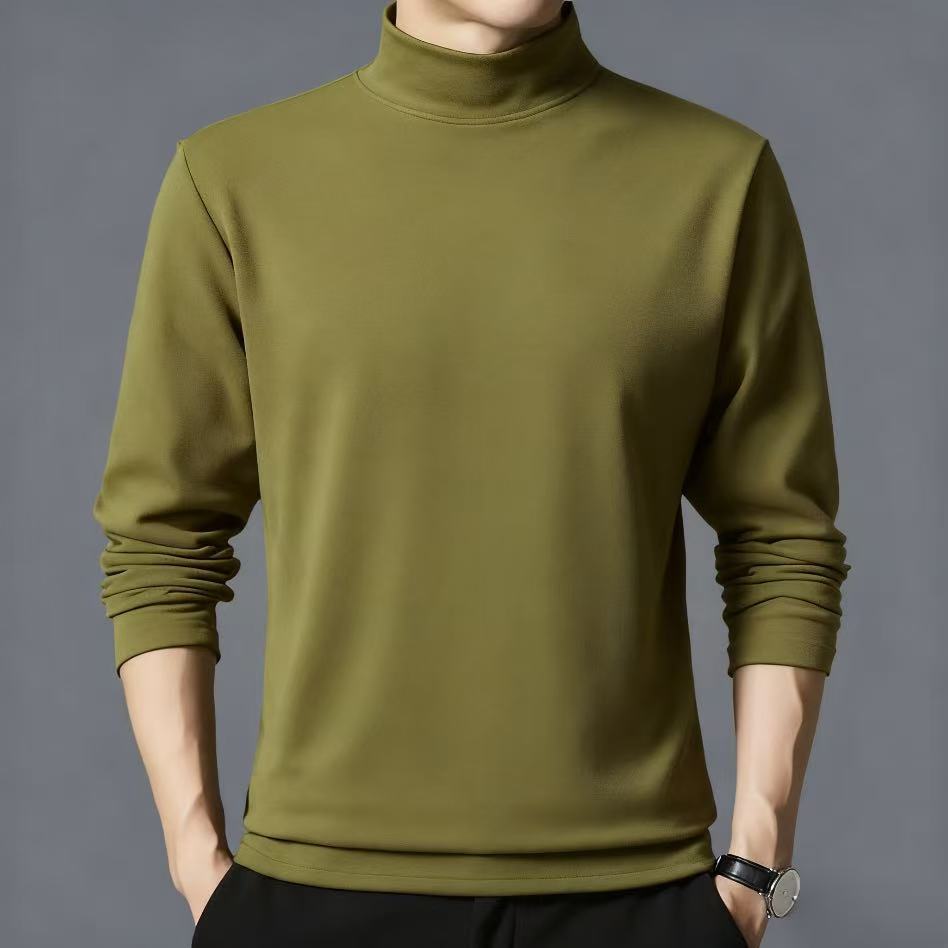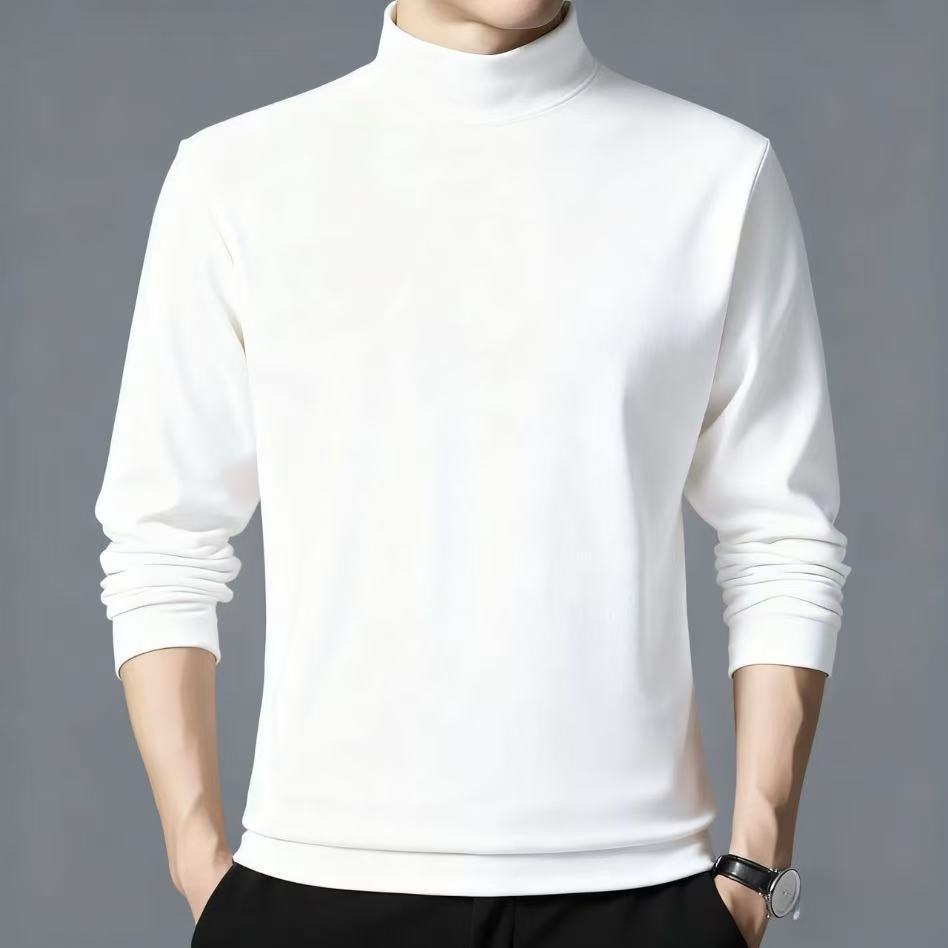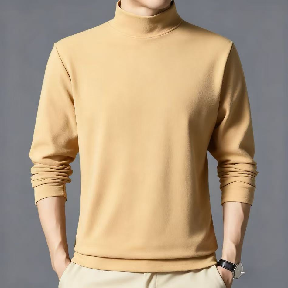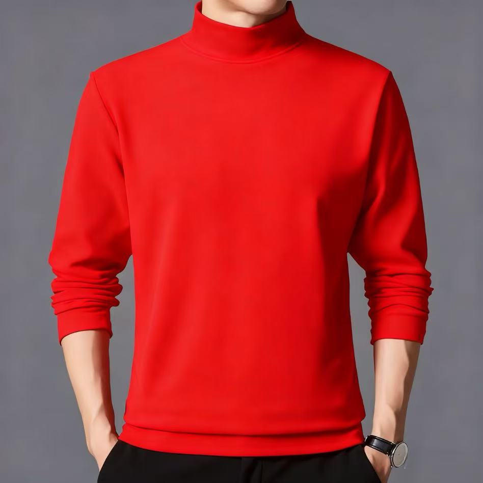 哇噢快返半高领德绒长袖t恤男士春秋季双面绒卫衣纯色上衣打底衫