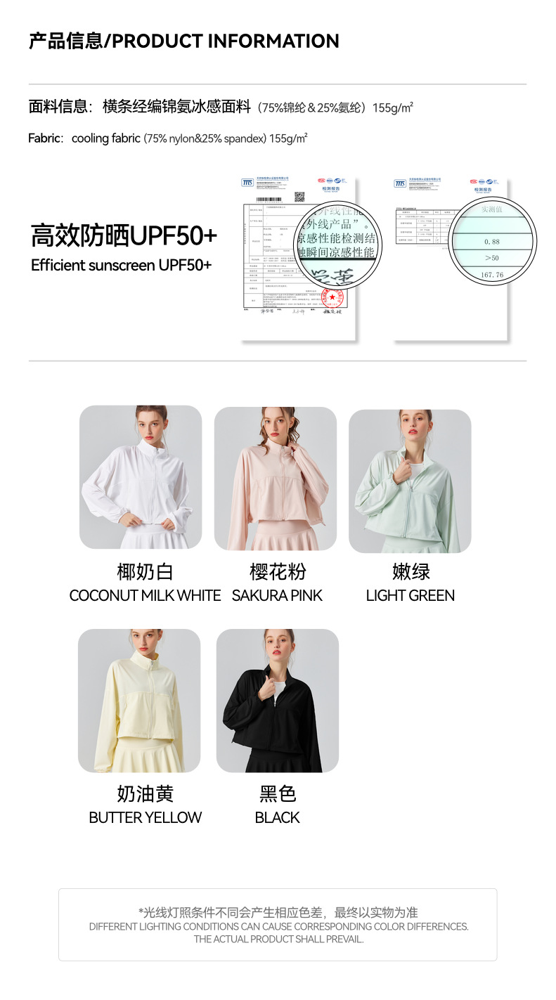 跨境春夏防晒衣外套冰感防紫外线速干运动服健身上衣立领拉链长袖
